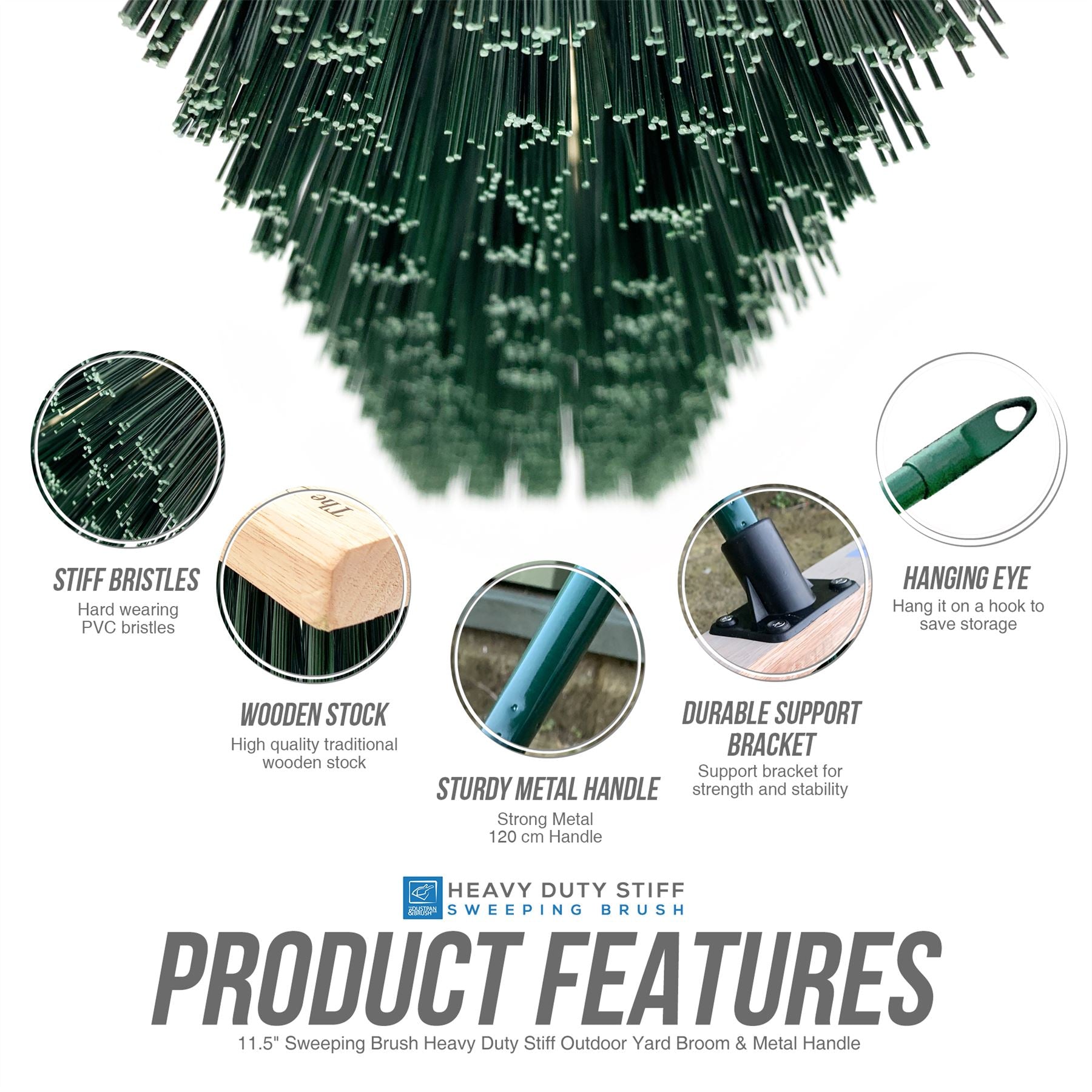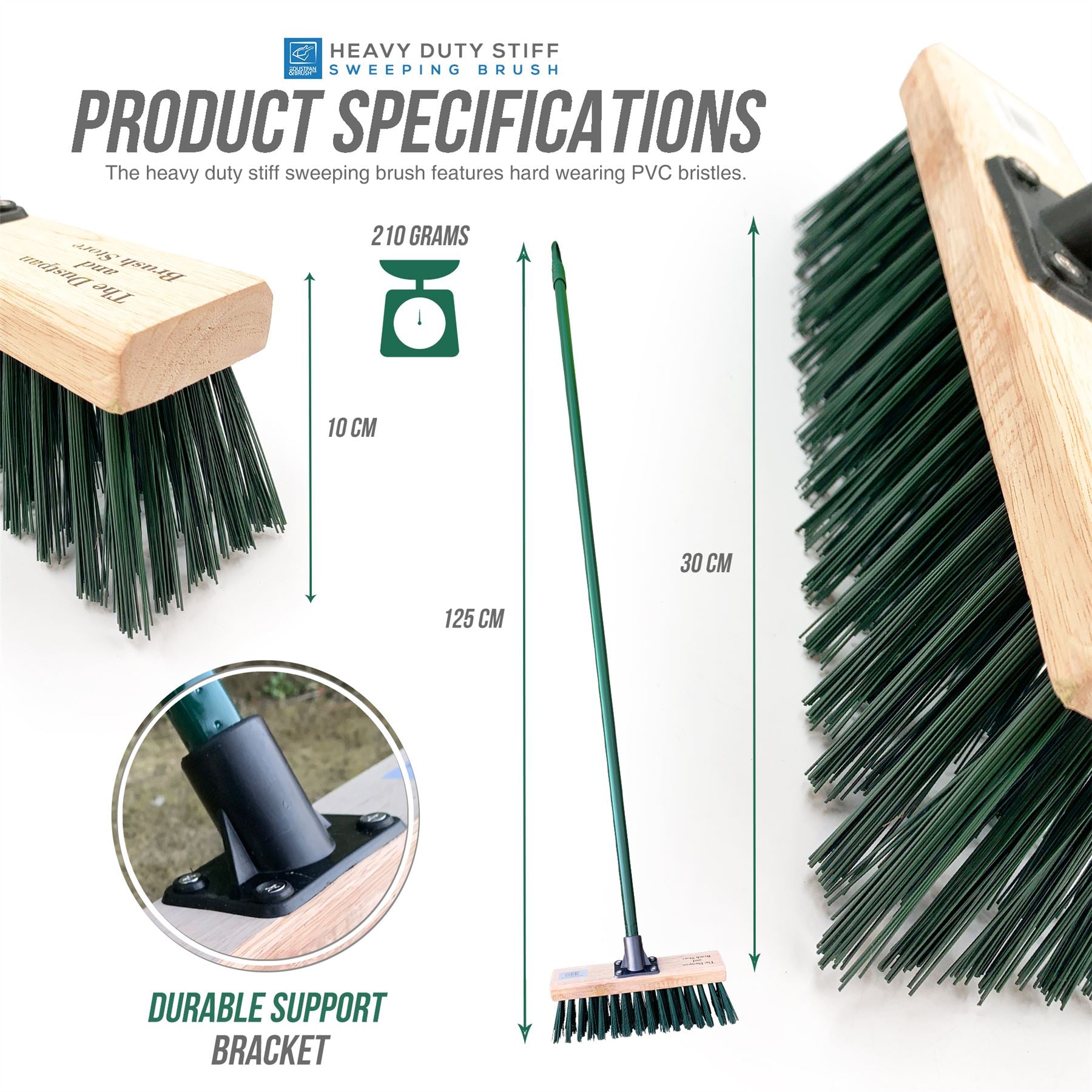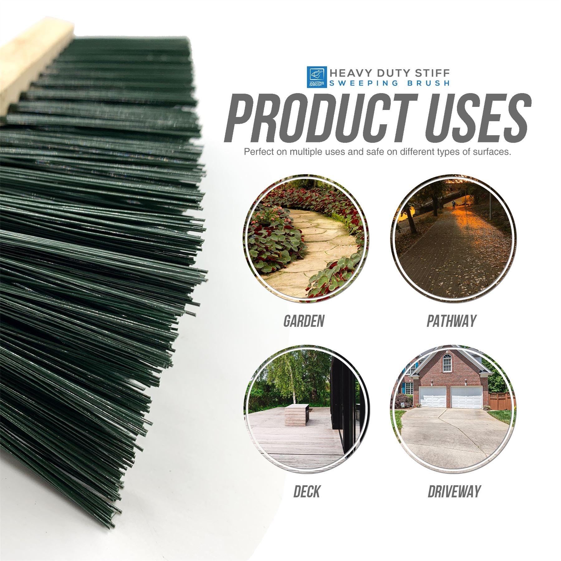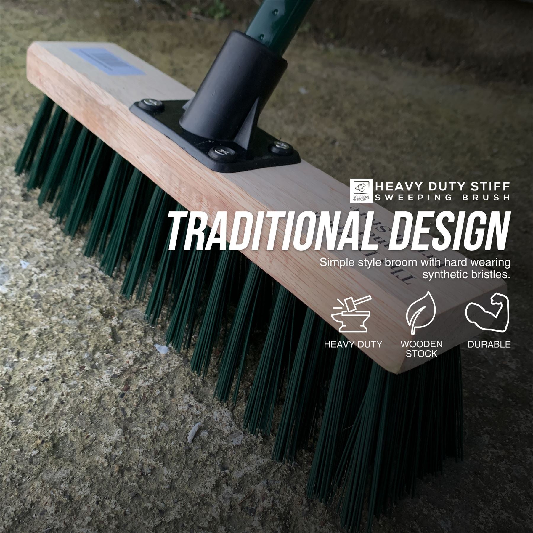 Stiff synthetic bristles make the broom suitable for use in wet or dry conditions.