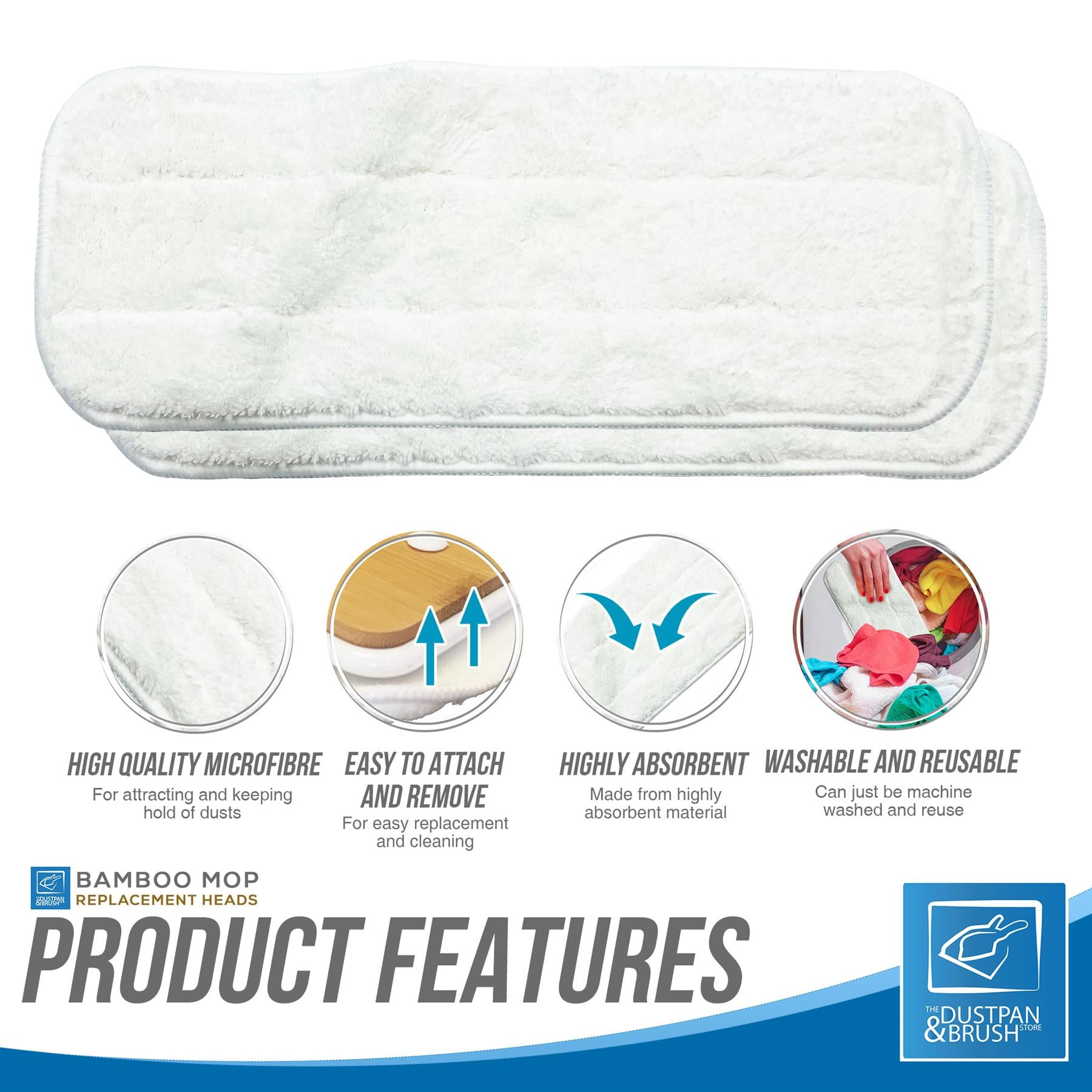 This product has a high quality microfibre material perfect for attracting and keeping hold of dust as you mop. It is also washable and reusable, because of this we have made it easy to attach and remove the refill for when you need to put it in the washing machine.