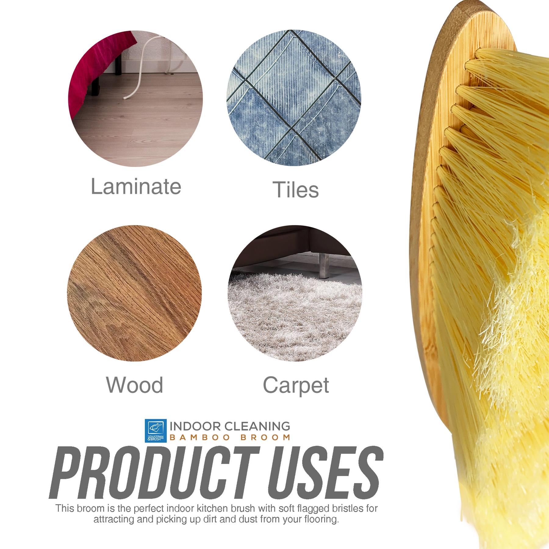 The height of this floor brush indoor provides ultimate comfort as you clean and allows you to easily access hard-to-reach areas with minimal effort.