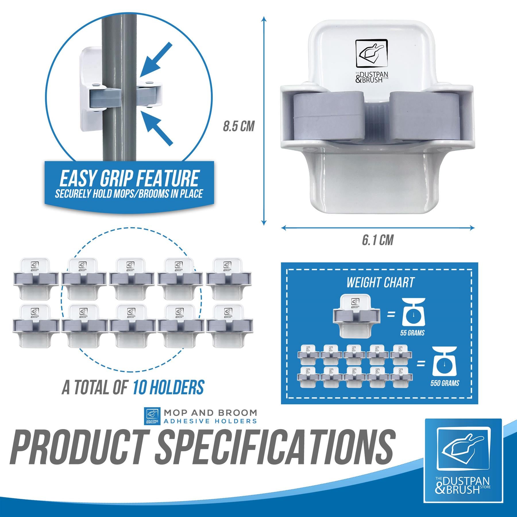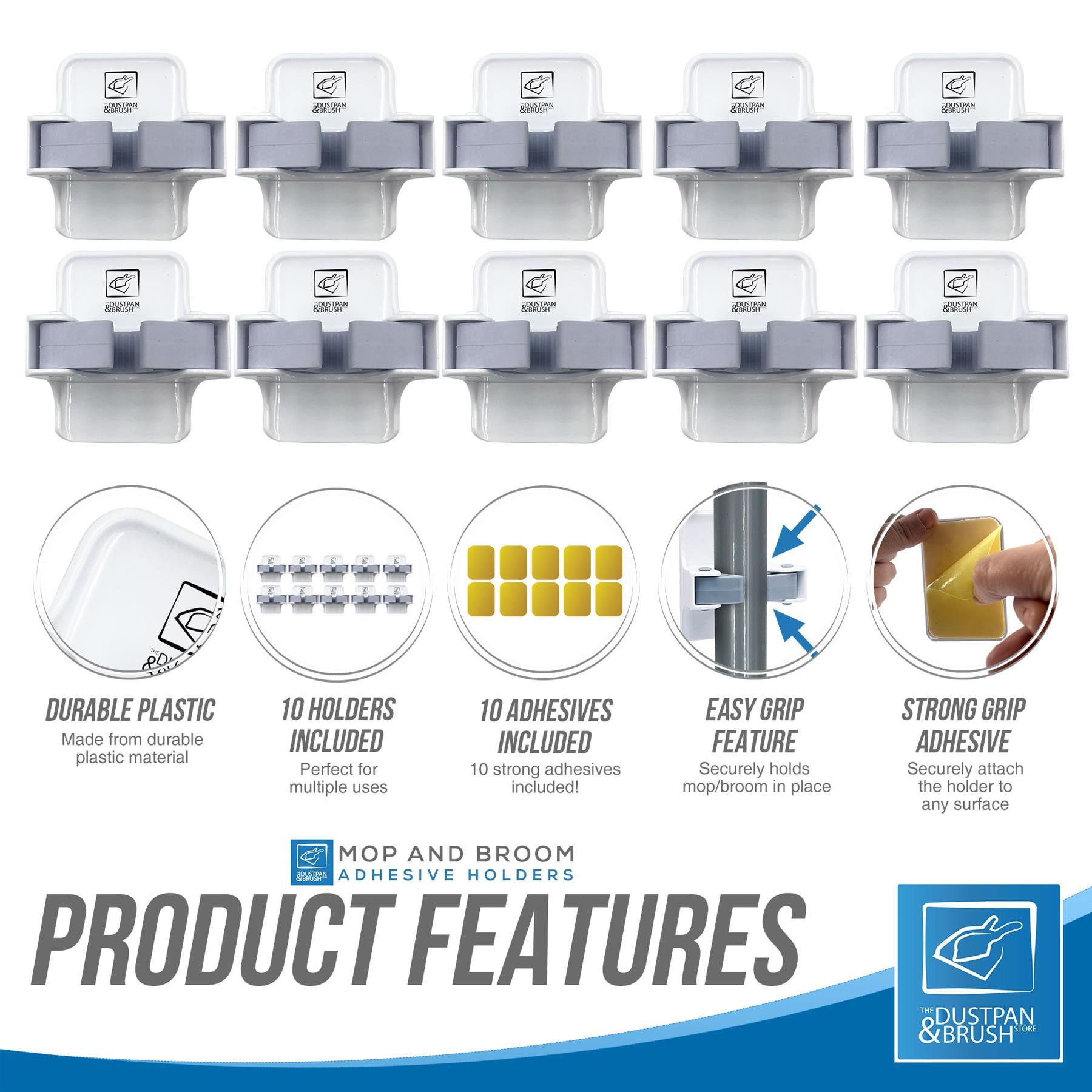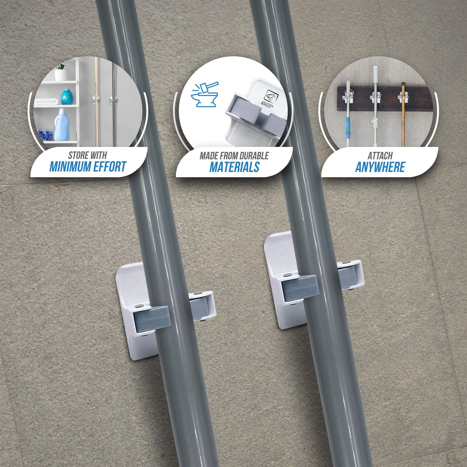 - Easy Grip Feature - Securely holds mop/broom in place