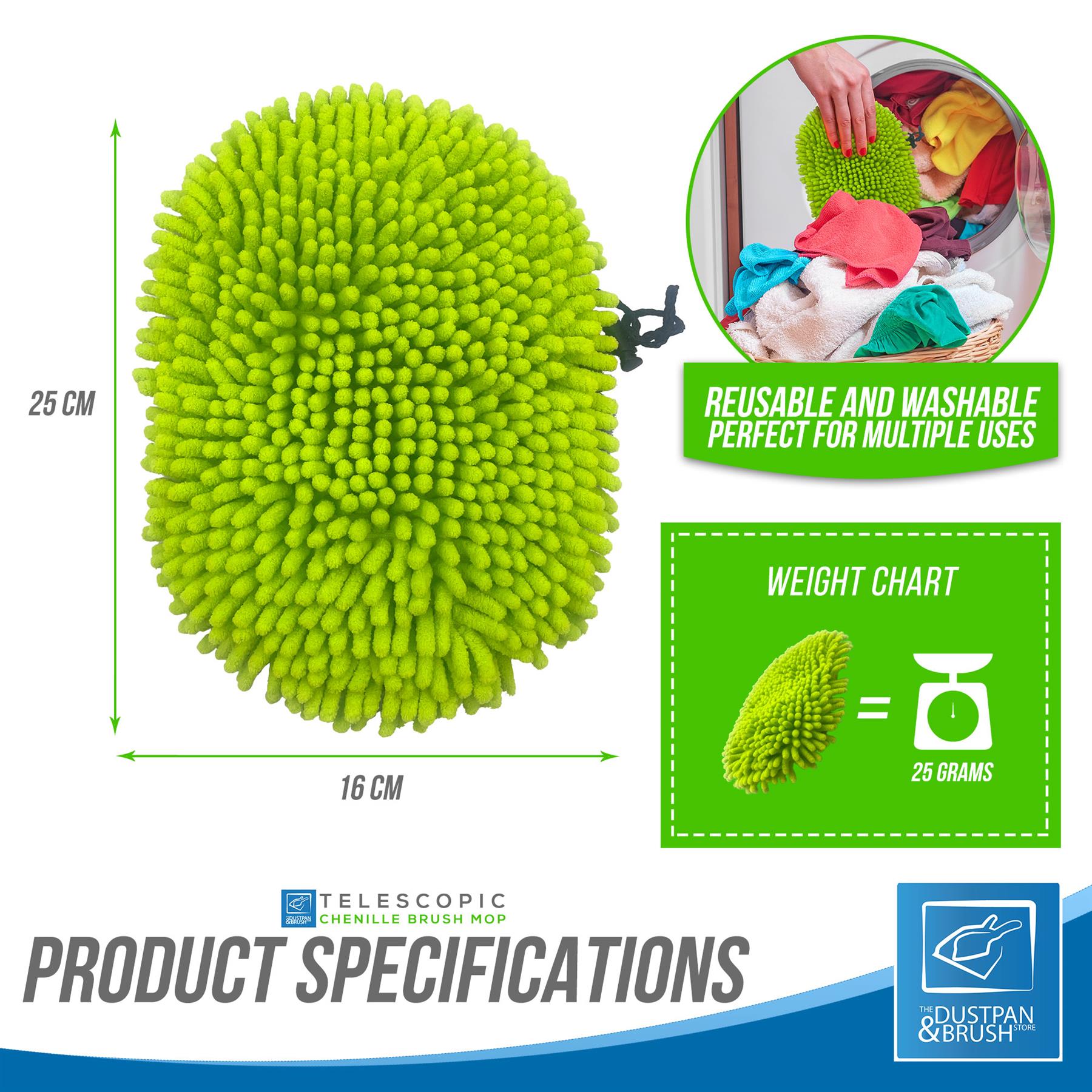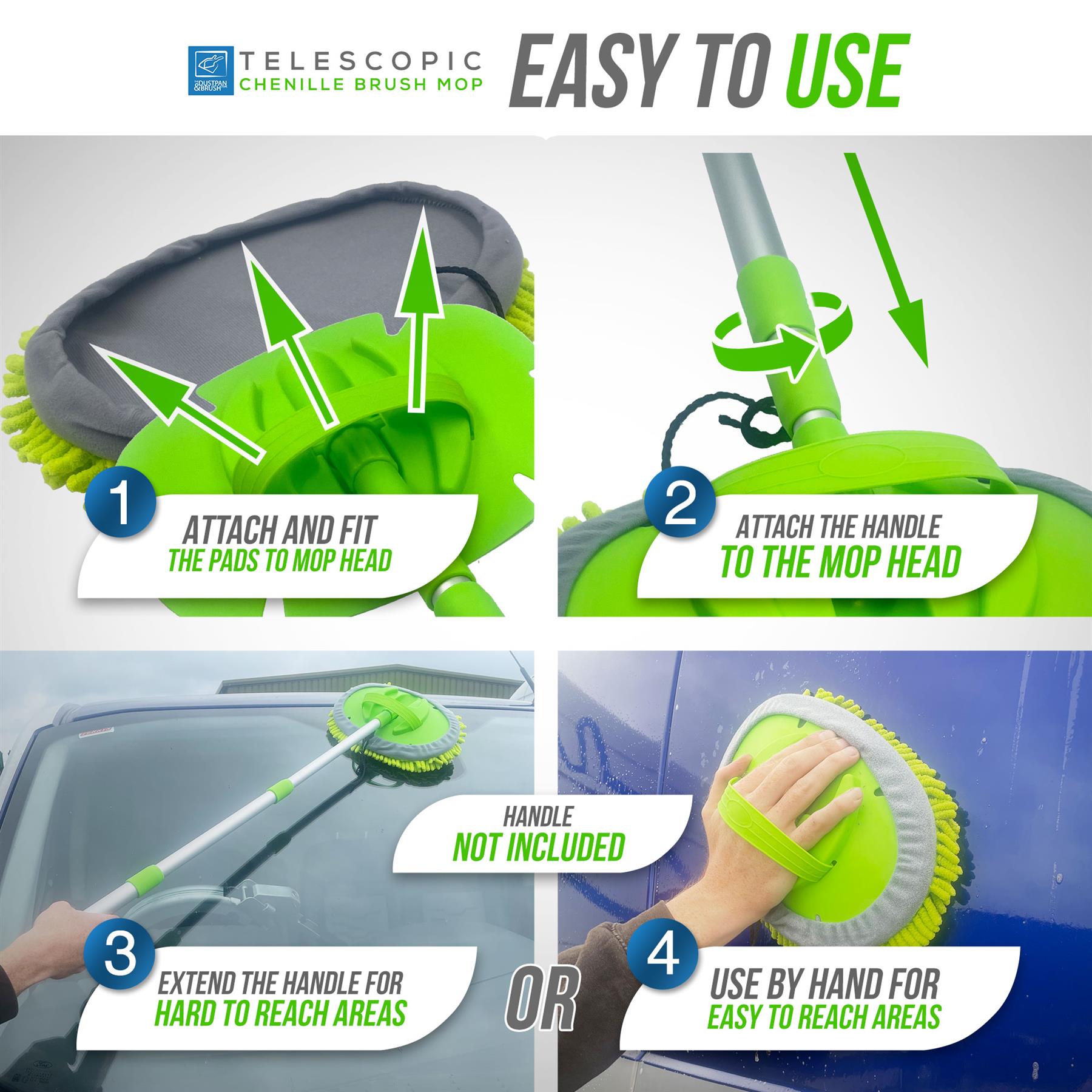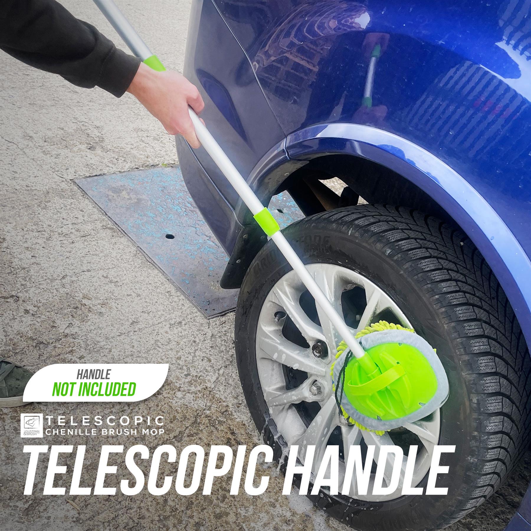 This is a replacement mop head ONLY for our telescopic car mop (SKU:104209) that lets you reach onto the roof without stepping up on ladders, and wash wheels and trim without bending down. The high quality thick, microfibre mop head can then detach to make easy work of cleaning windows, doors, bonnet and boot.