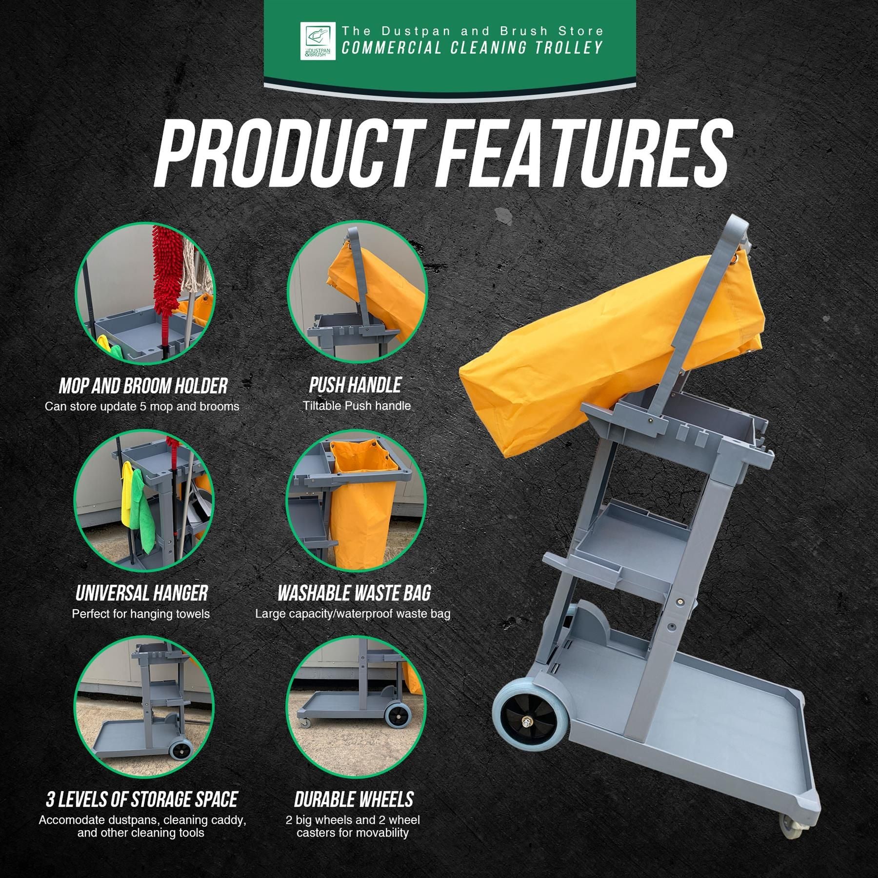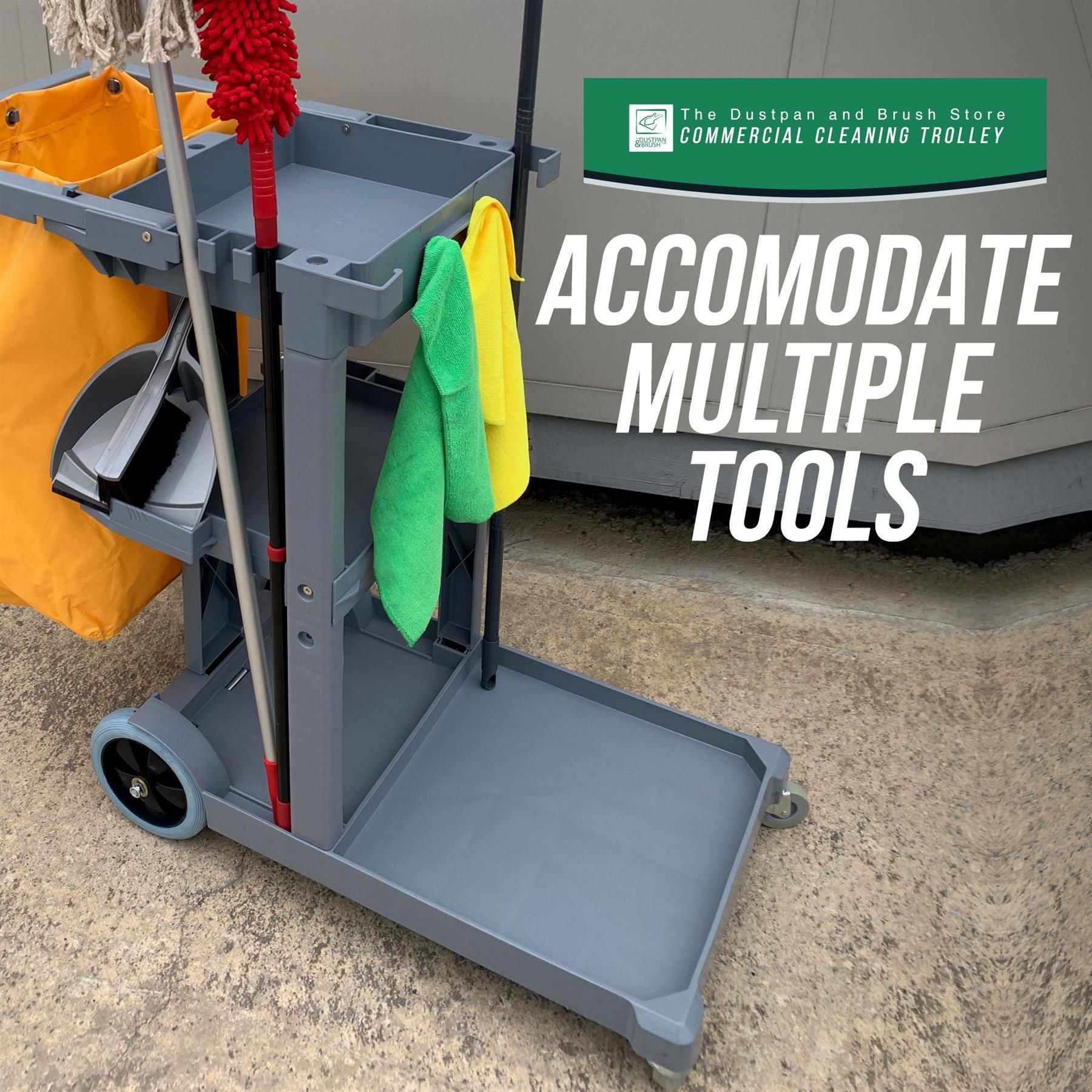 - Easy Maneuverability Cleaning Trolley on Wheels – The two 20cm rear wheels are big enough to secure the tool cart against sliding while the 2 swivel wheels on the front are smaller for easy movement on any surface.