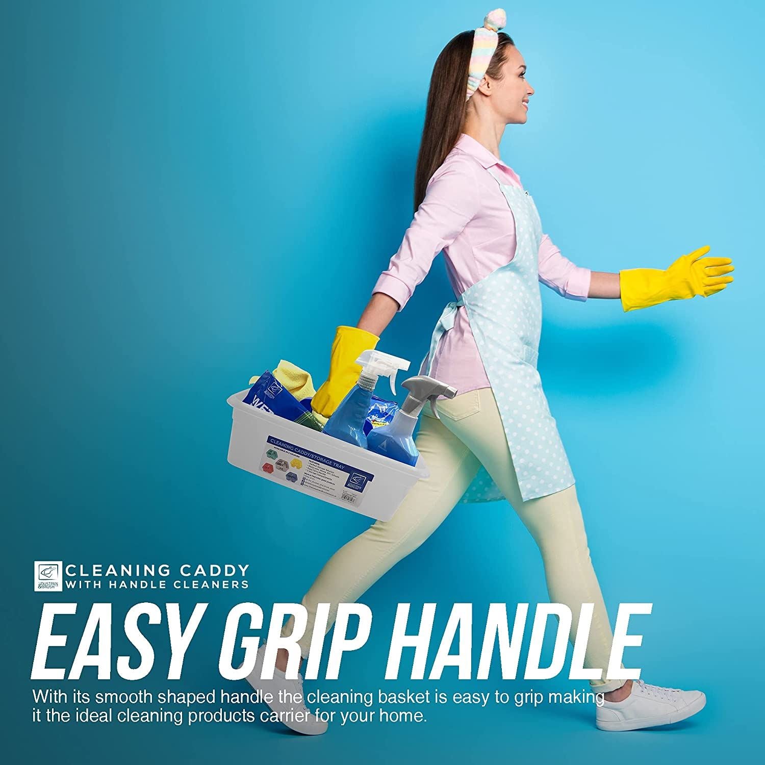 Cleaners plastic caddy. Bottle and Cloth storage tray. Blue carry all tote tray with handle