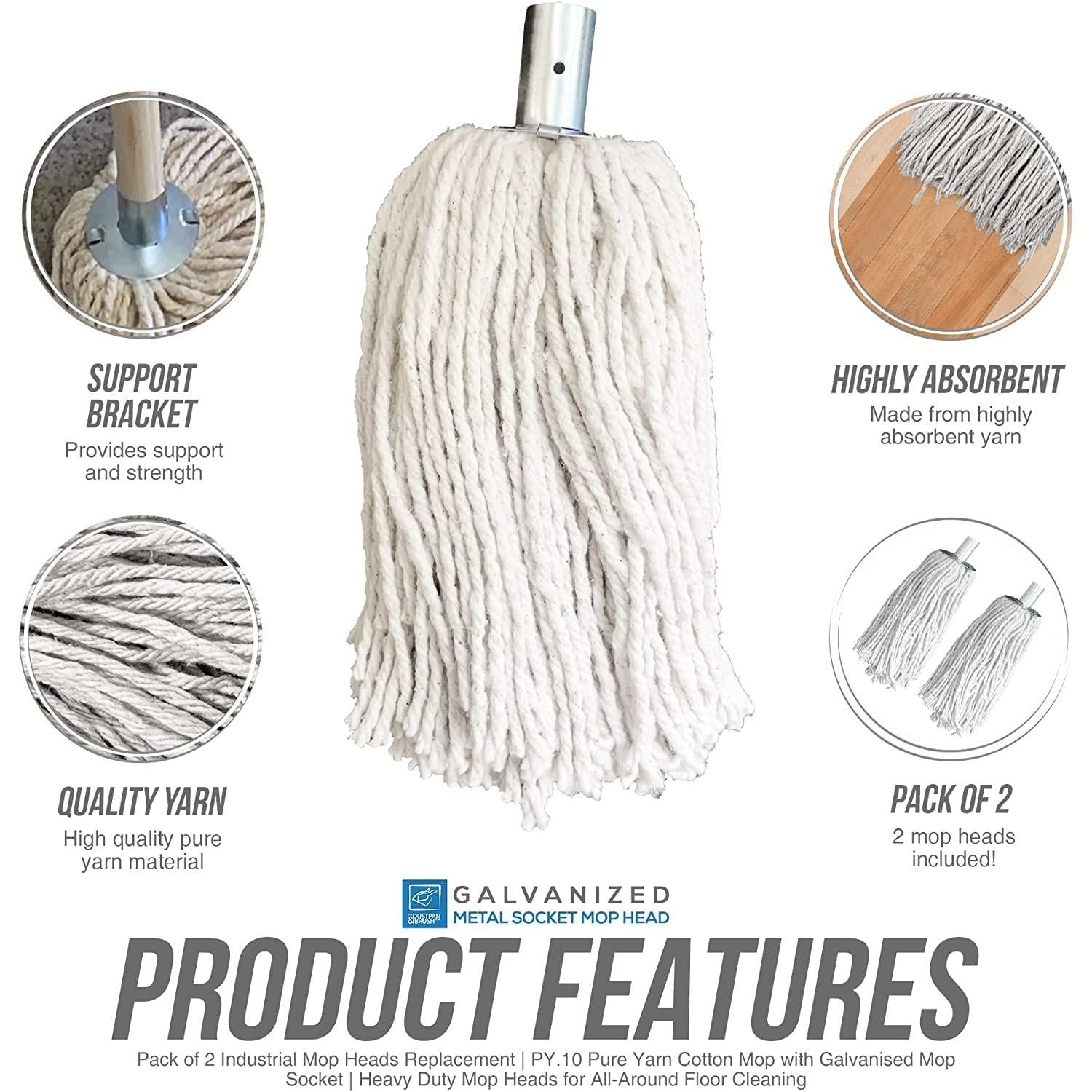 - Pack of 5, PY.10 Industrial Replacement Mop Heads – Available in 2 packs or 5 packs, with 4 floor mop sizes! Comes with PY.10, PY.12, PY.14, and PY.16, choose the offer that best fits your needs. These string mop heads are ideal to be used in households, offices, and can be kept in stock for janitorial supplies. No need to replace your mop sticks more often with this traditional mop head replacement.