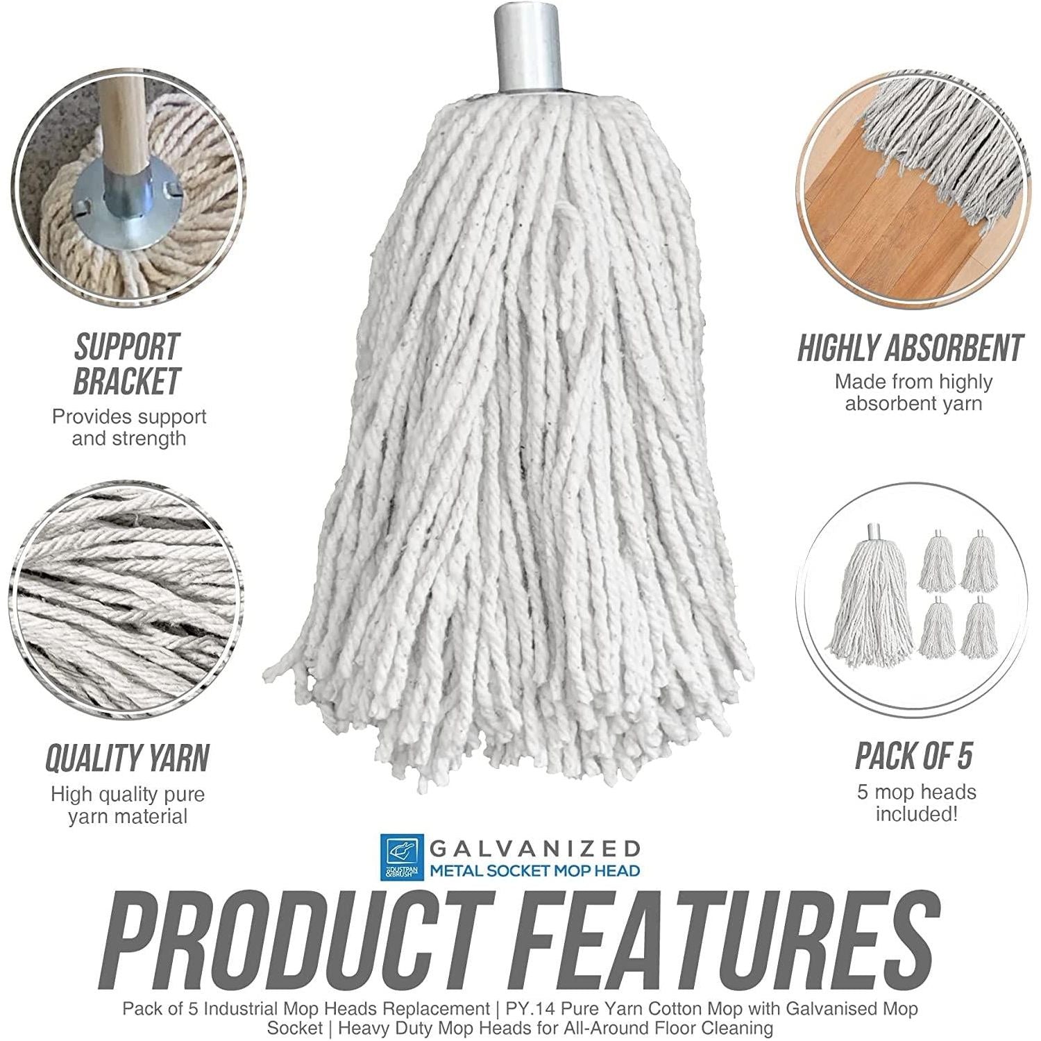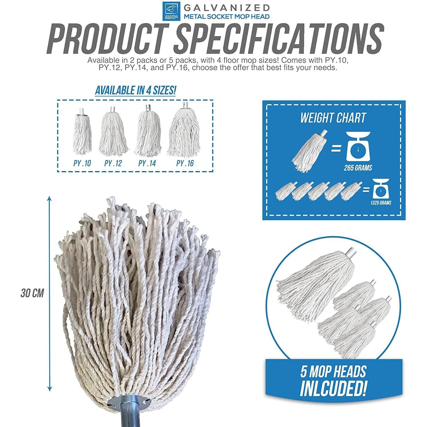 - Pack of 5, PY.14 Industrial Replacement Mop Heads – Available in 2 packs or 5 packs, with 4 floor mop sizes! Comes with PY.10, PY.12, PY.14, and PY.16, choose the offer that best fits your needs. These string mop heads are ideal to be used in households, offices, and can be kept in stock for janitorial supplies. No need to replace your mop sticks more often with this traditional mop head replacement.