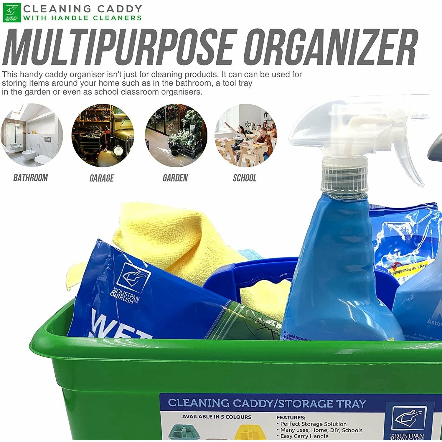 Cleaners plastic caddy. Bottle and Cloth storage tray. Blue carry all tote tray with handle