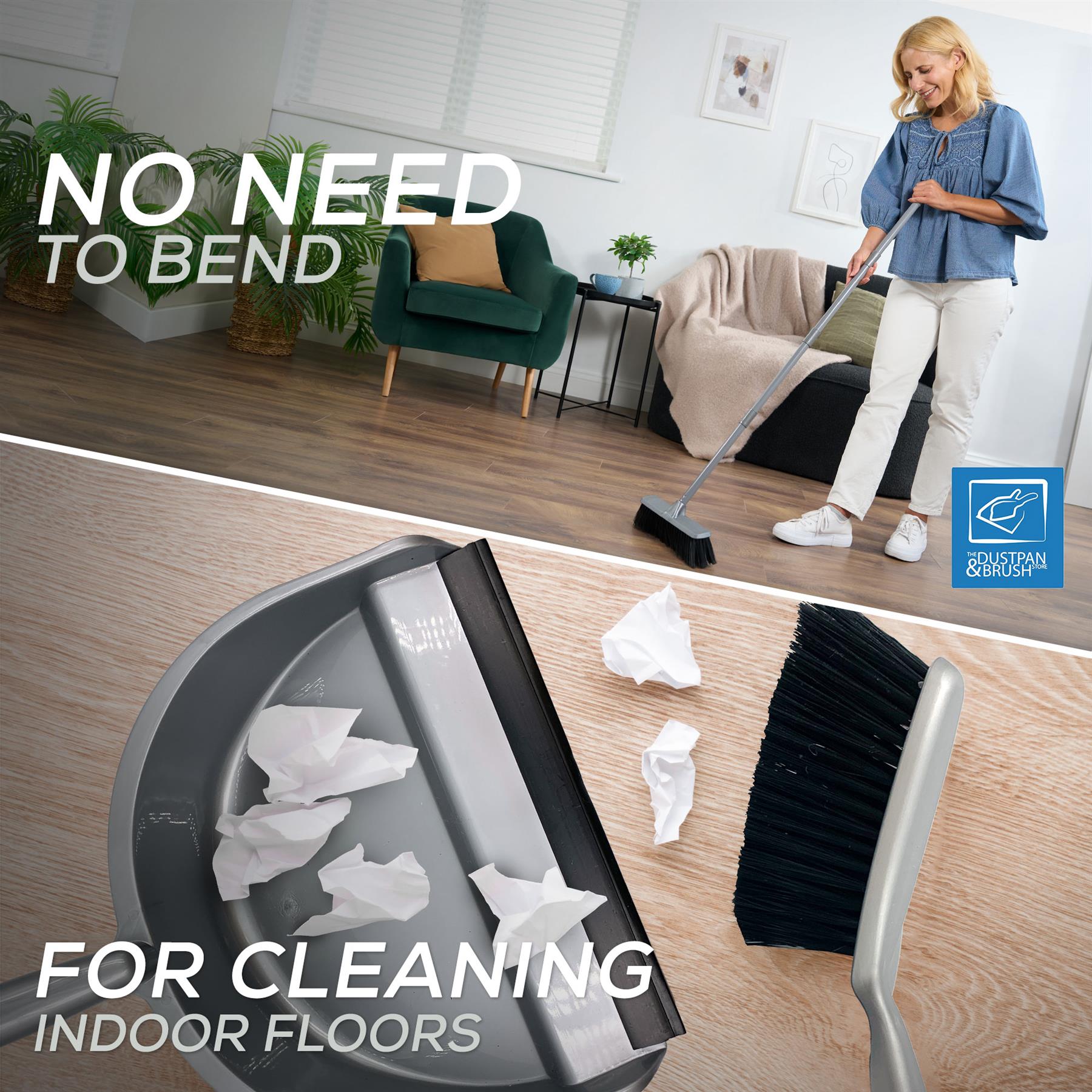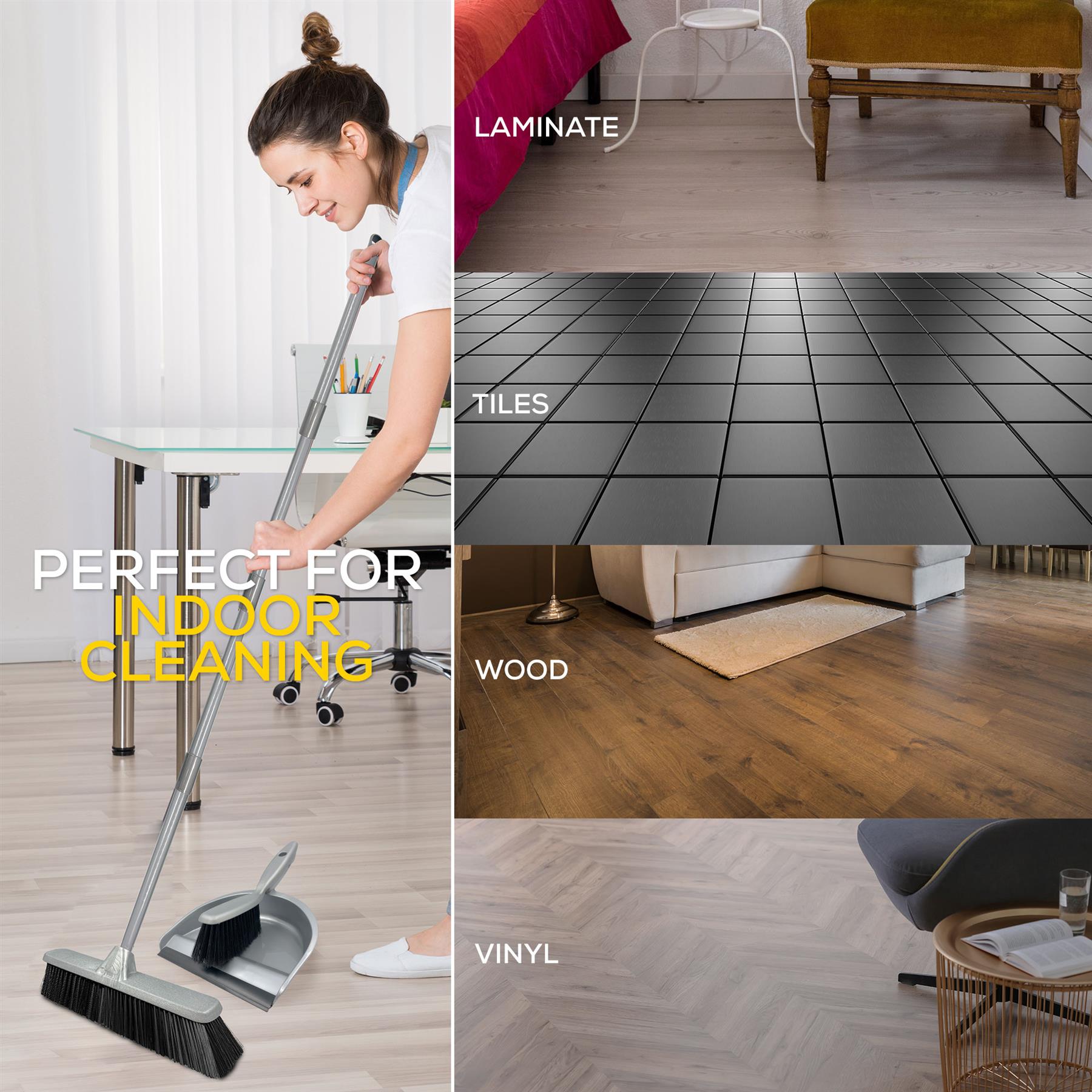 - Indoor broom with dustpan and brush set