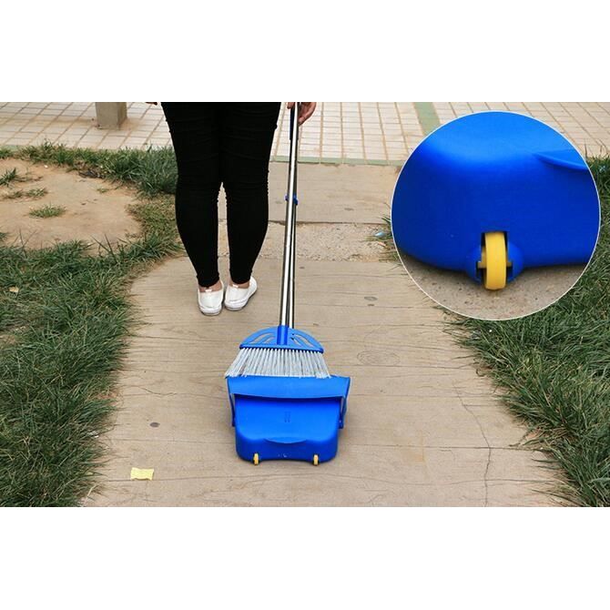 Dustpan is packed with handy features - Rubber lip for maximum dirt collection, Wheels for easy movement, Clip for storing the brush, Lid to keep dirt in the pan...