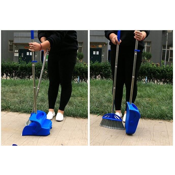 Full length long handled dustpan and brush set - 100cm tall with sturdy metal handles - No need to bend.