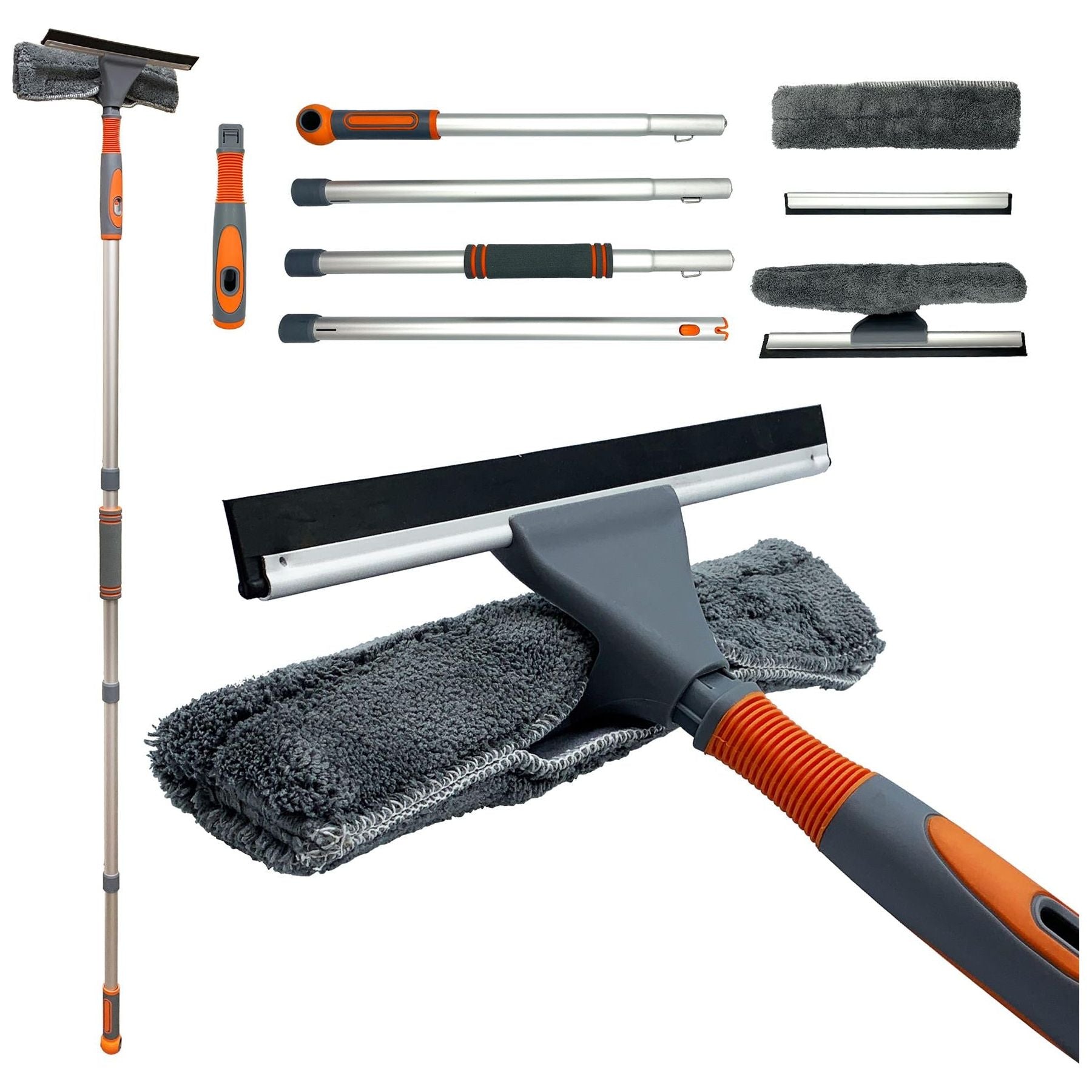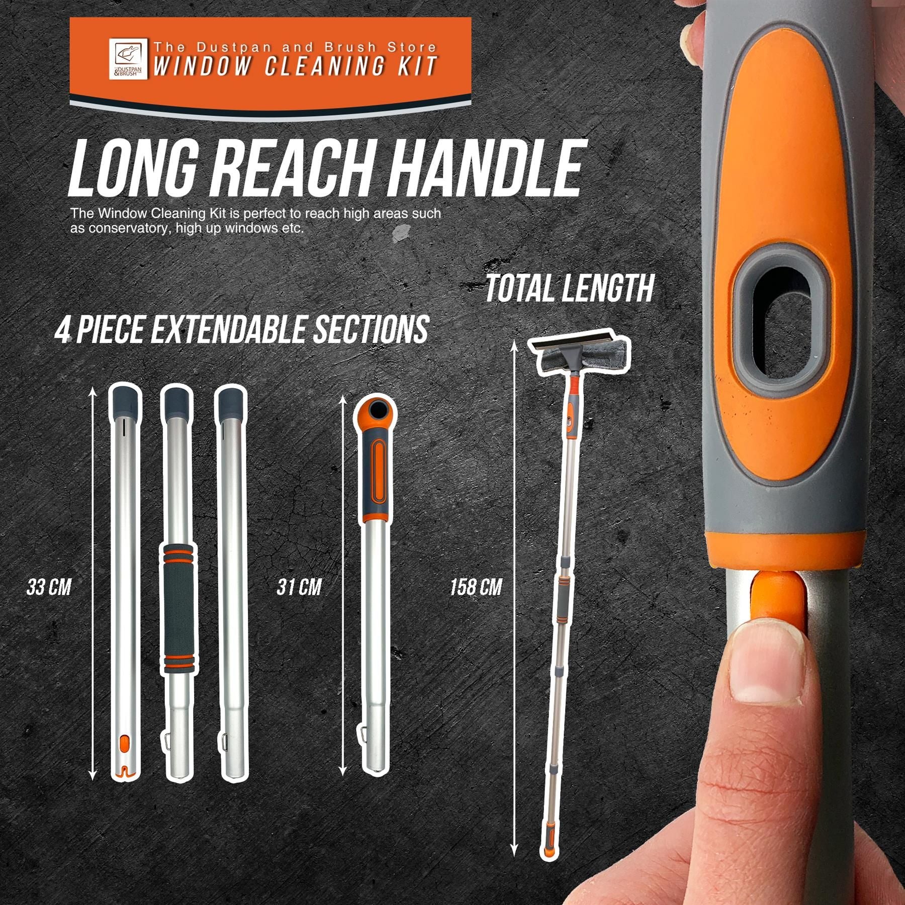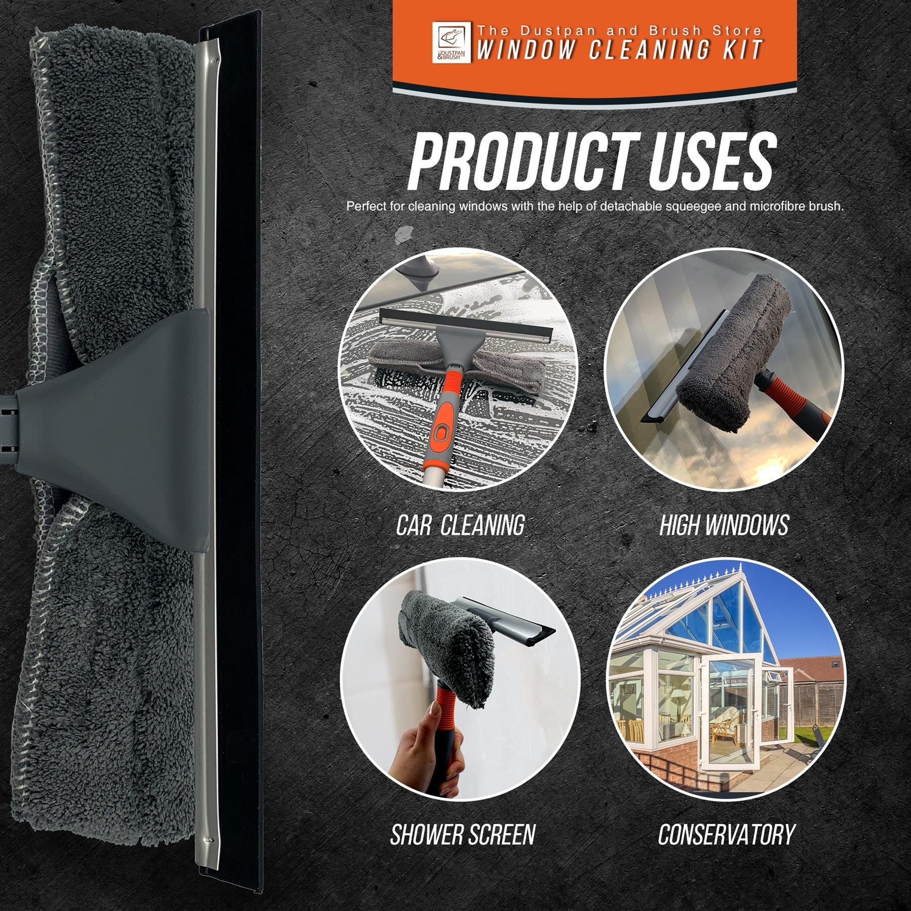 This Long Reach Window Cleaning Kit includes a silicone window squeegee and microfibre head that easily removes dirt and wipes off excess water.