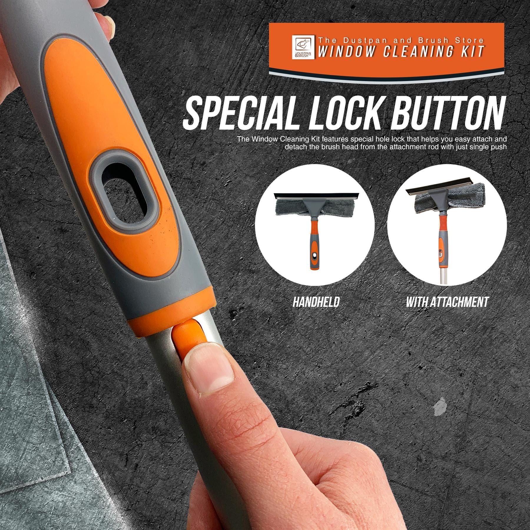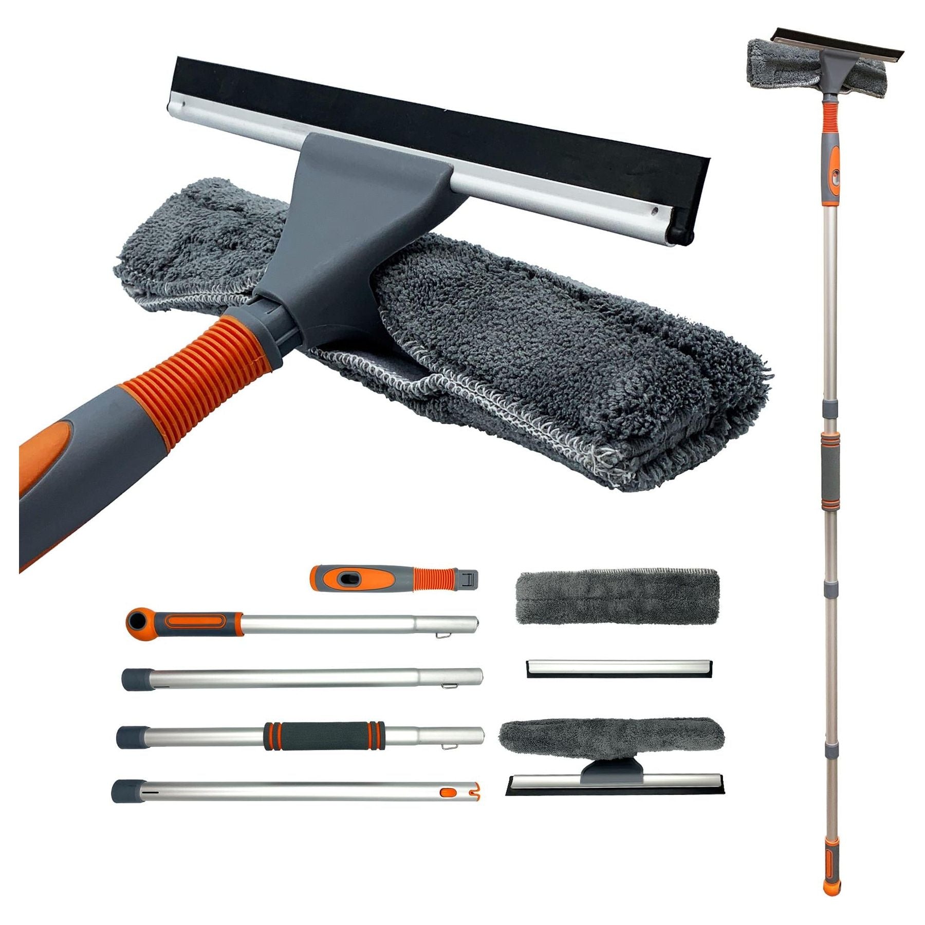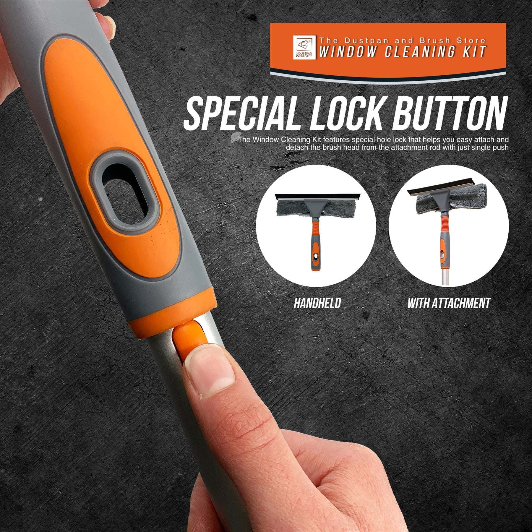 This Long Reach Window Cleaning Kit includes a silicone window squeegee and microfibre head that easily removes dirt and wipes off excess water.
