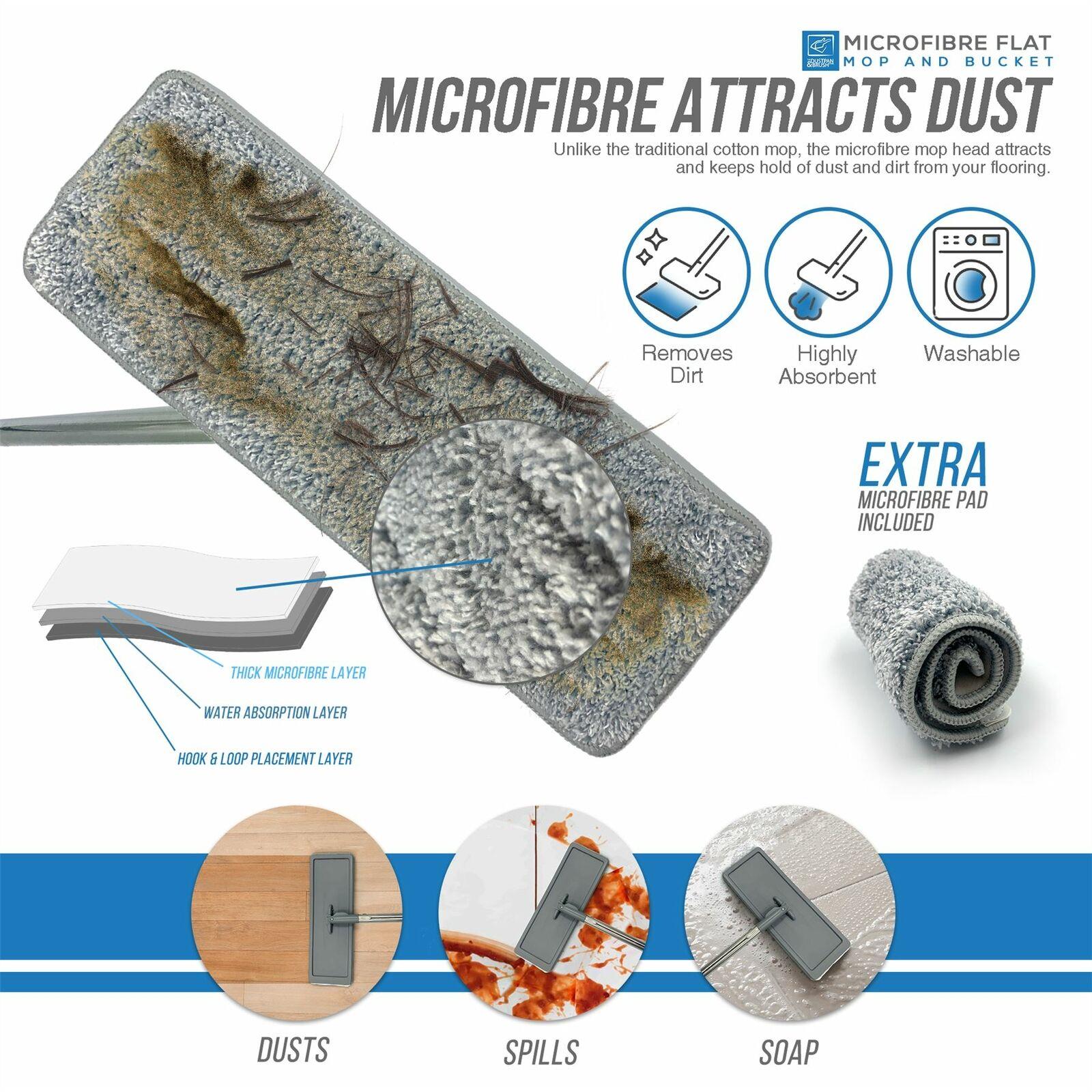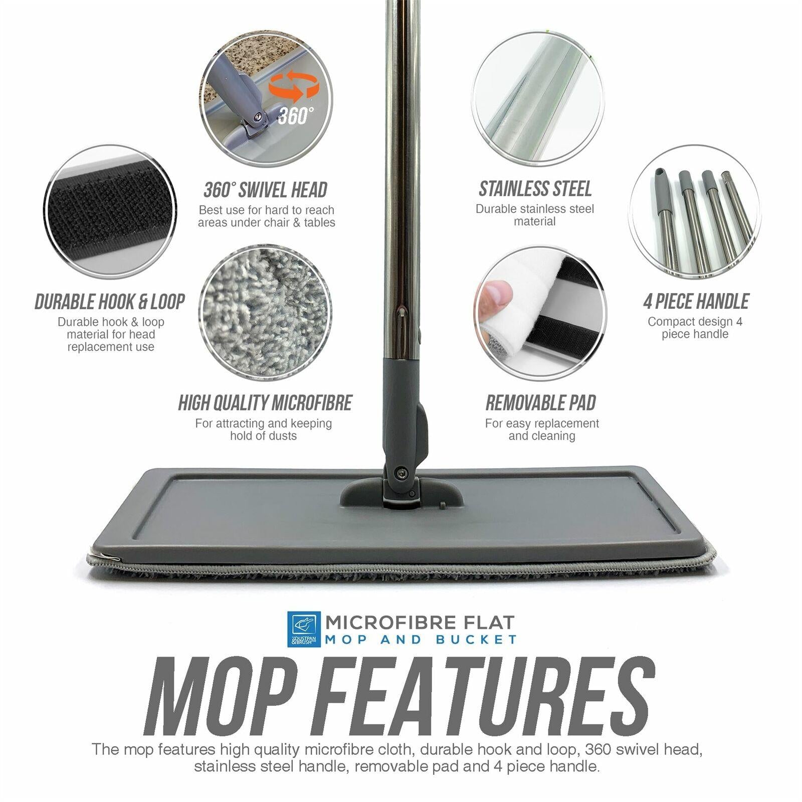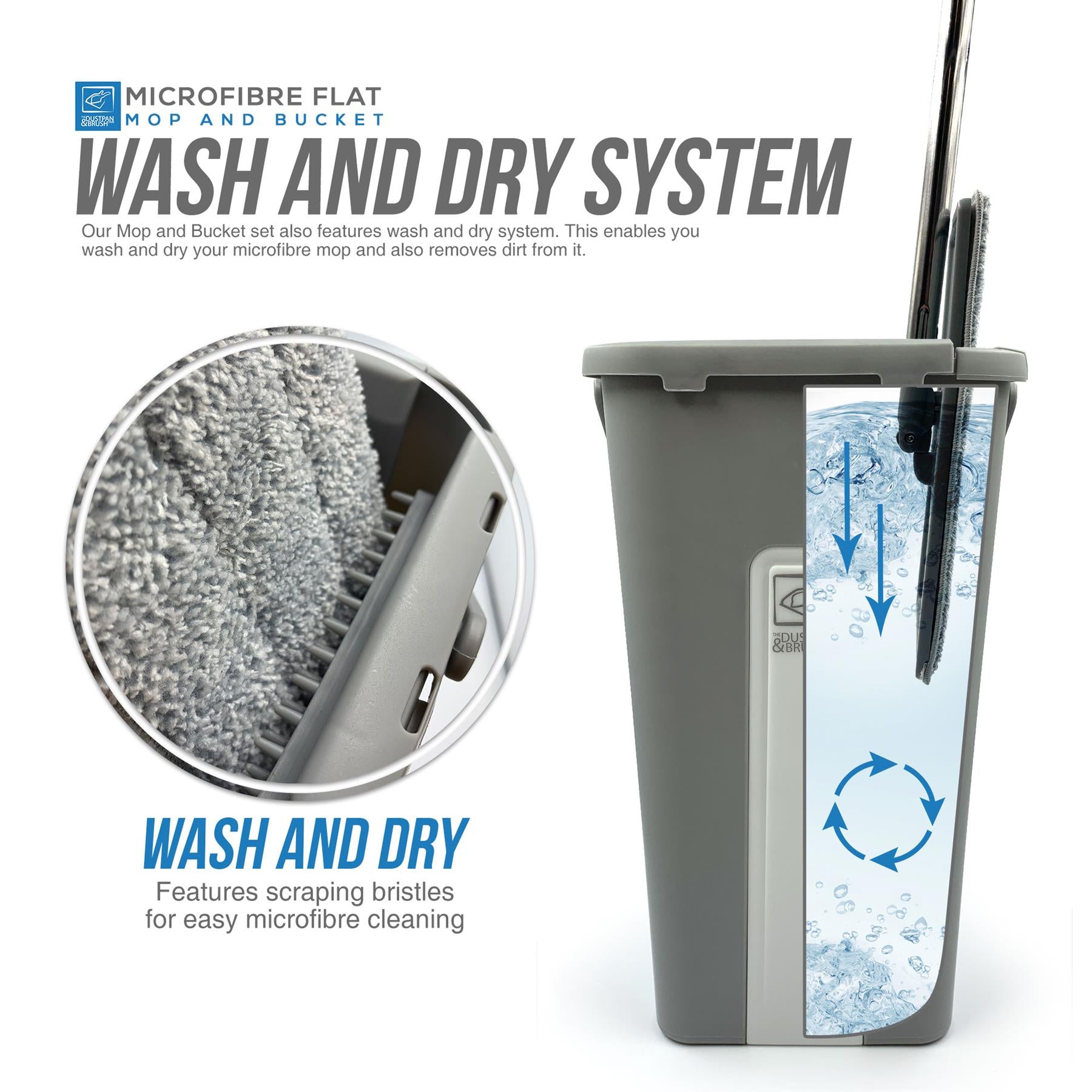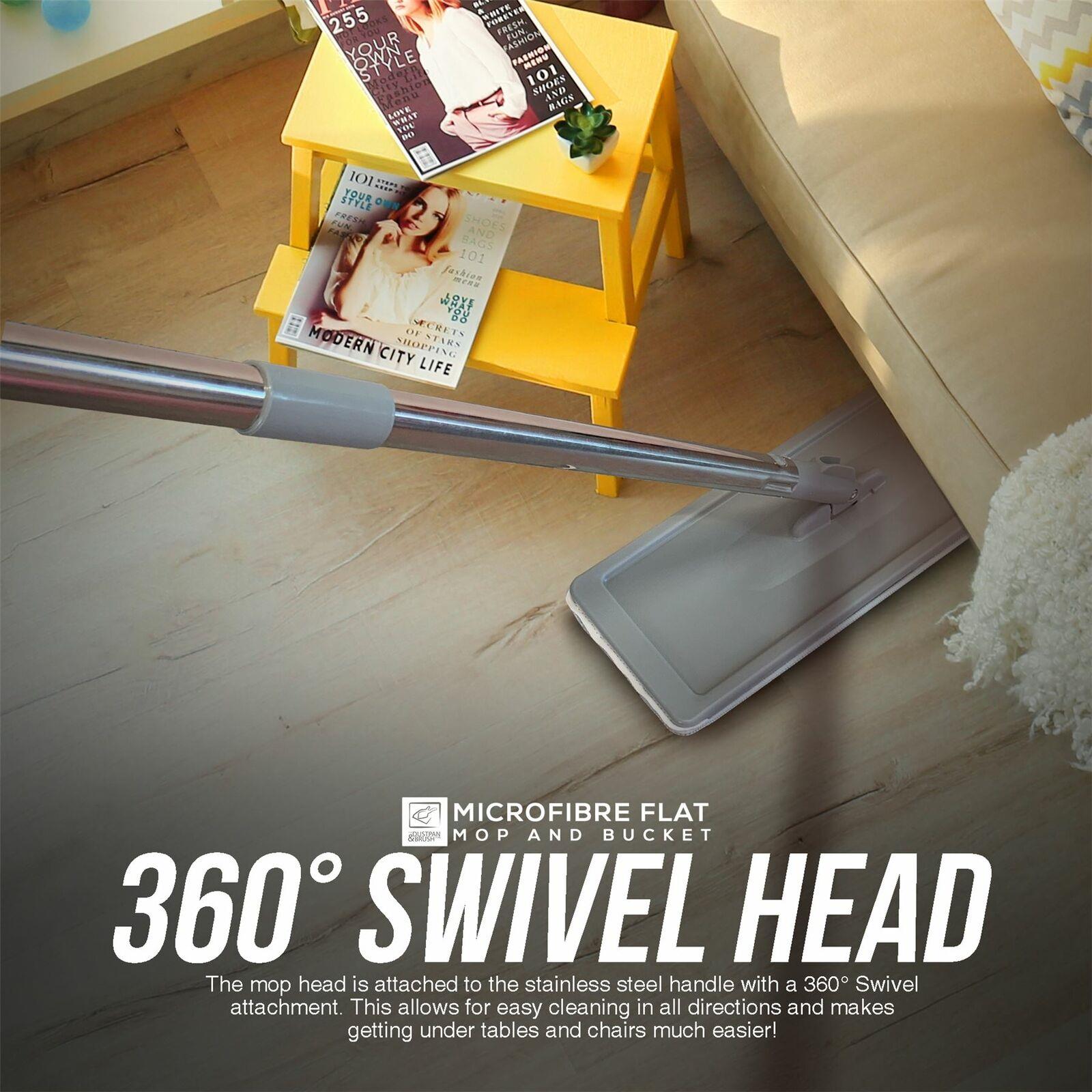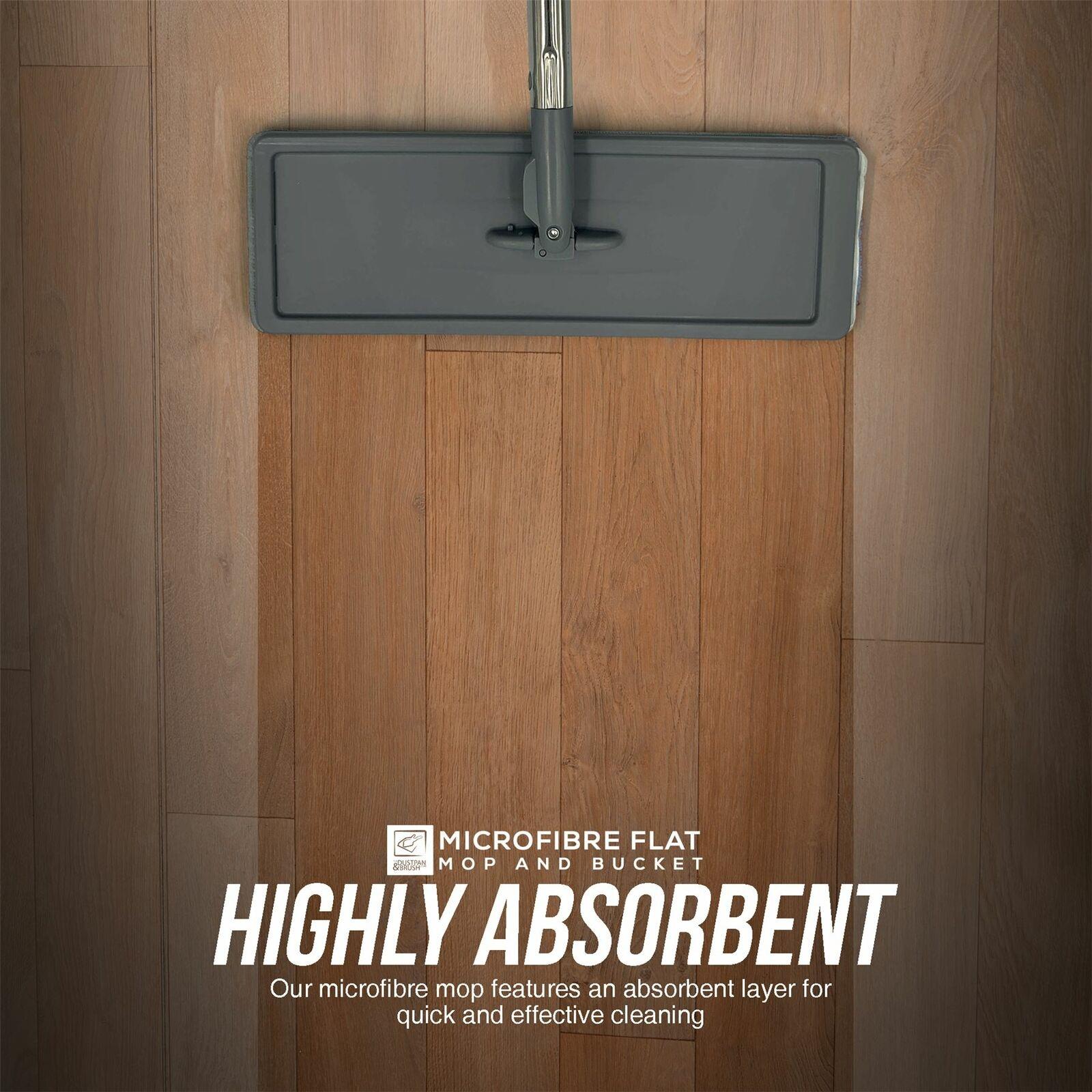 Quickly and easily clean your flooring with this flat mop and bucket set.