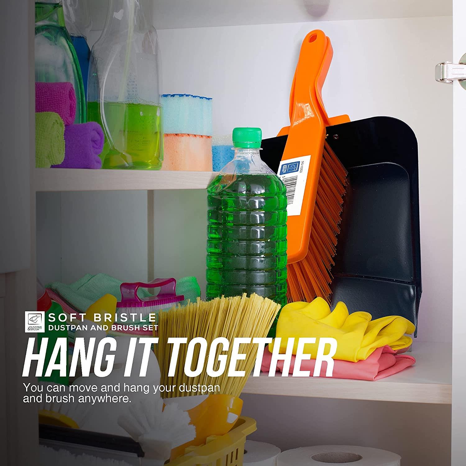 Brush sits inside the dustpan handle for easy storage. Has a handy hanging hole as well.
