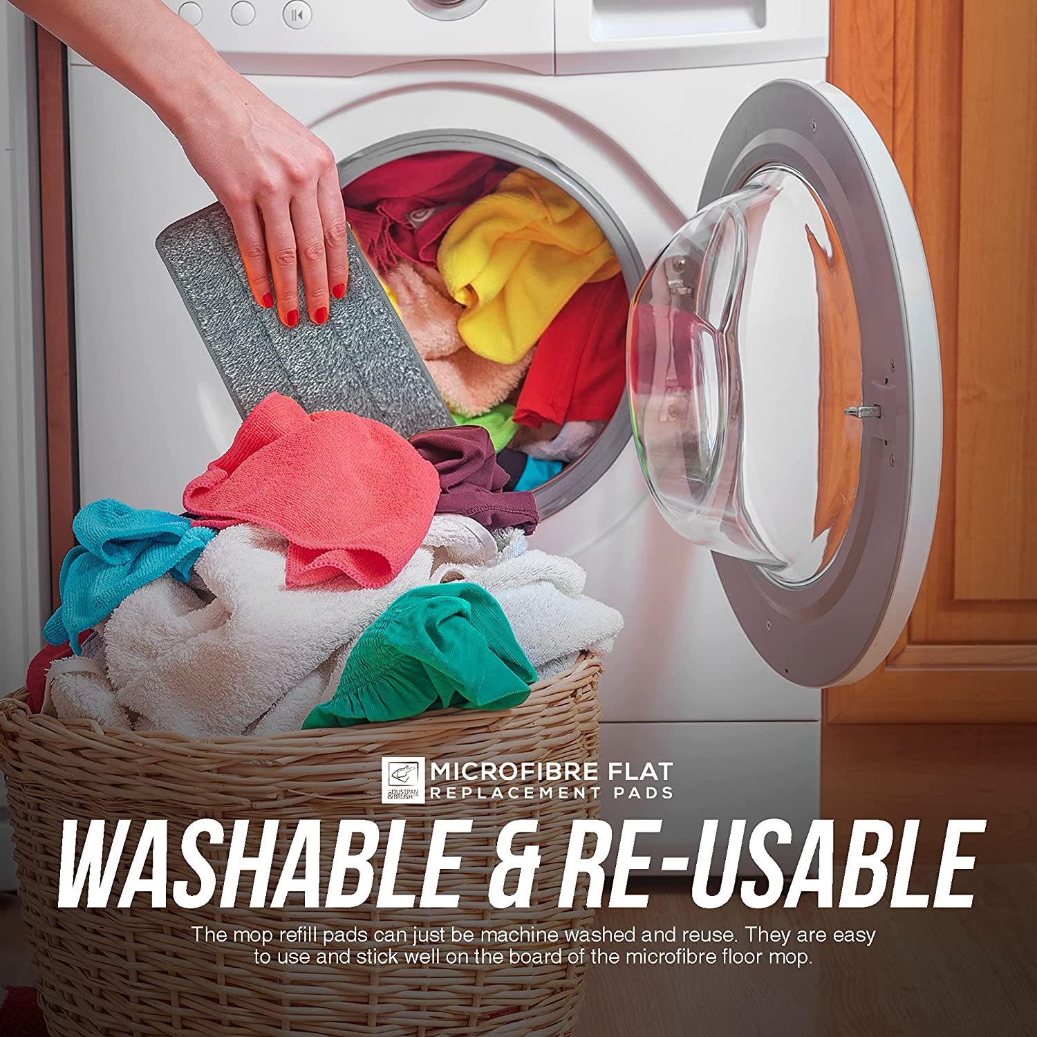 - Washable and Re-Usable – These microfibre replacement mop heads are environmentally friendly. The mop refill pads can just be machine washed and reuse. They are easy to use and stick well on the board of the microfibre floor mop.
