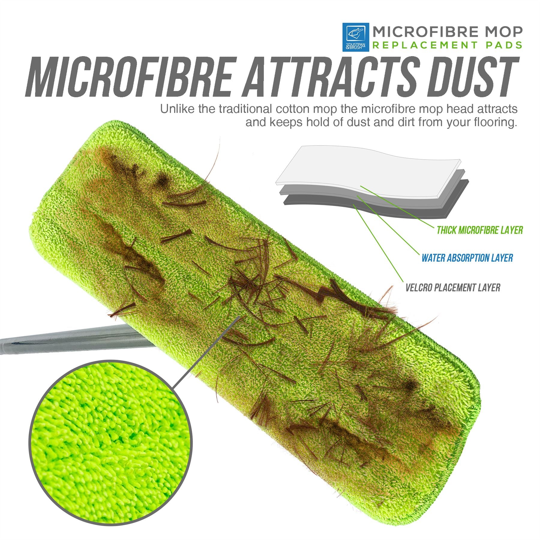 ✓ MICROFIBRE - Thick absorbent and dust attracting microfibre pads, much more efficient than traditional sponge mops.