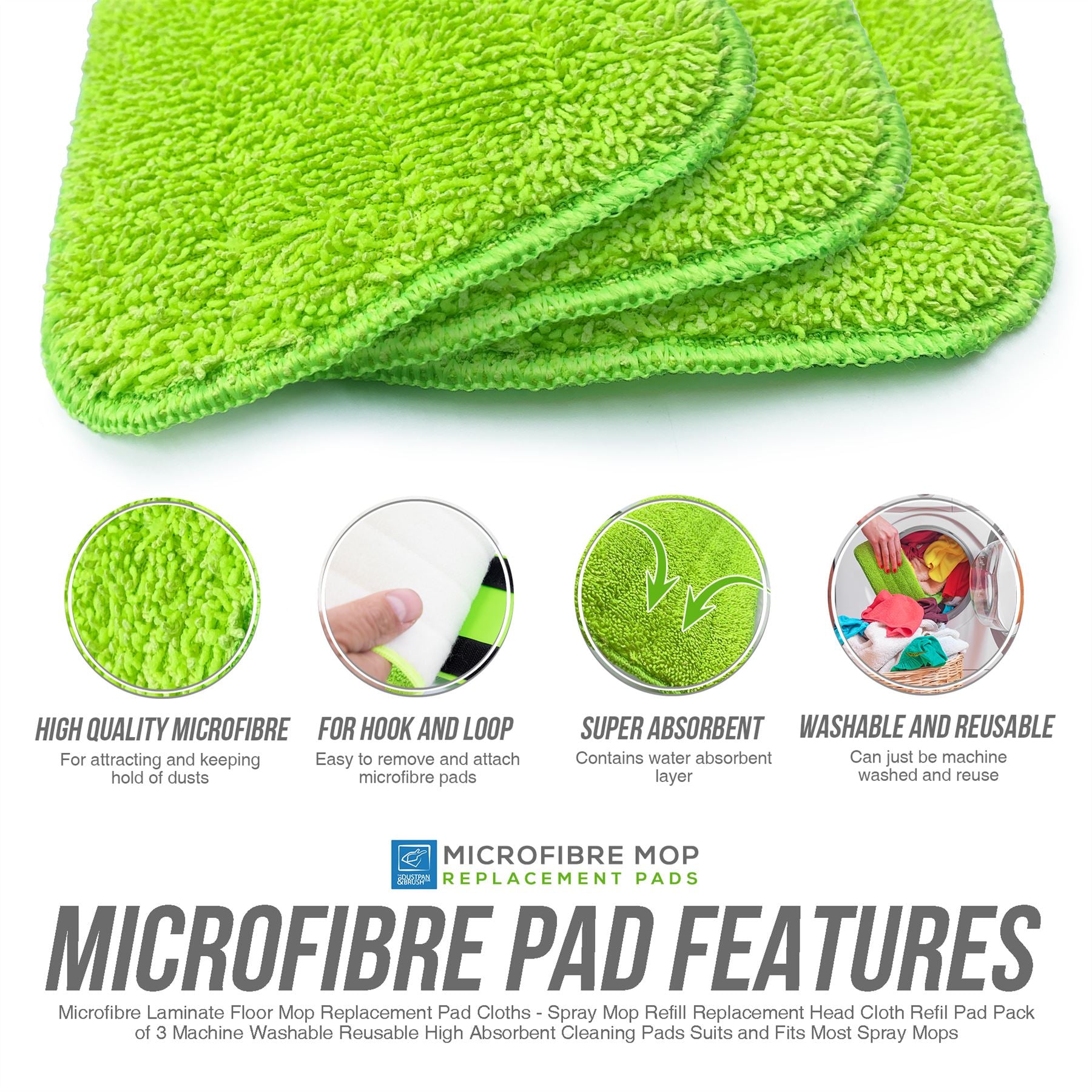 ✓ DURABLE AND MACHINE WASHABLE - No need to throw away once dirty from use. The microfibre pads can be machine washed and reused over and over again. Saves buying a lot of replacement cloths and pads. The pack of 3 will mean you always have a spare one while one is in the wash.