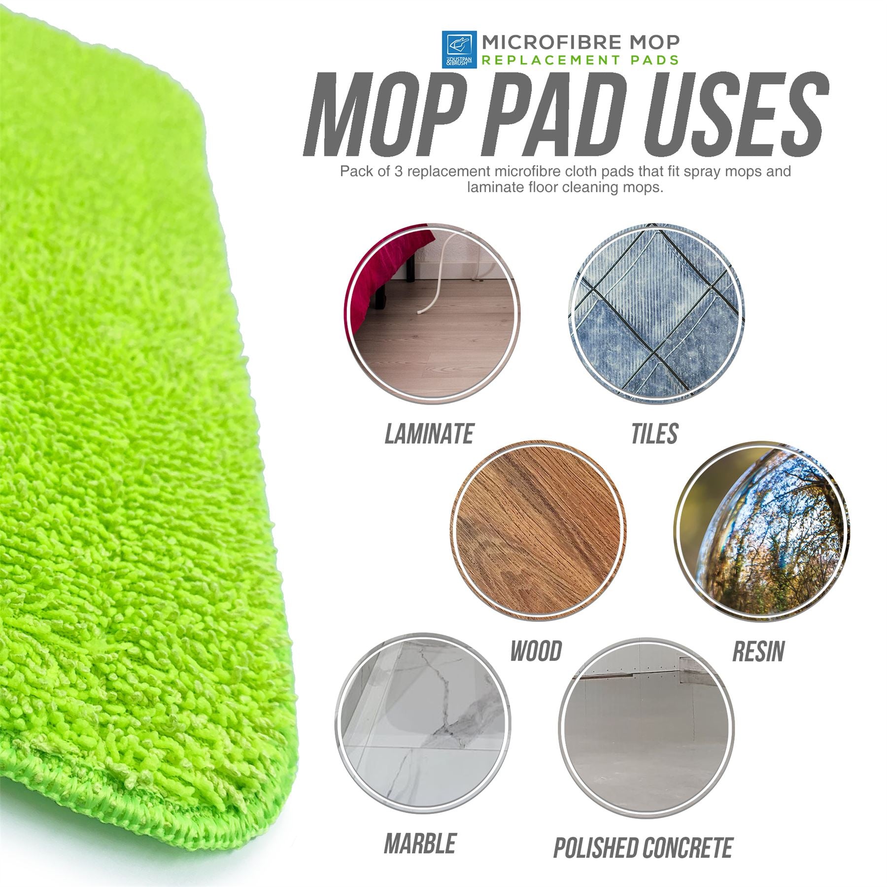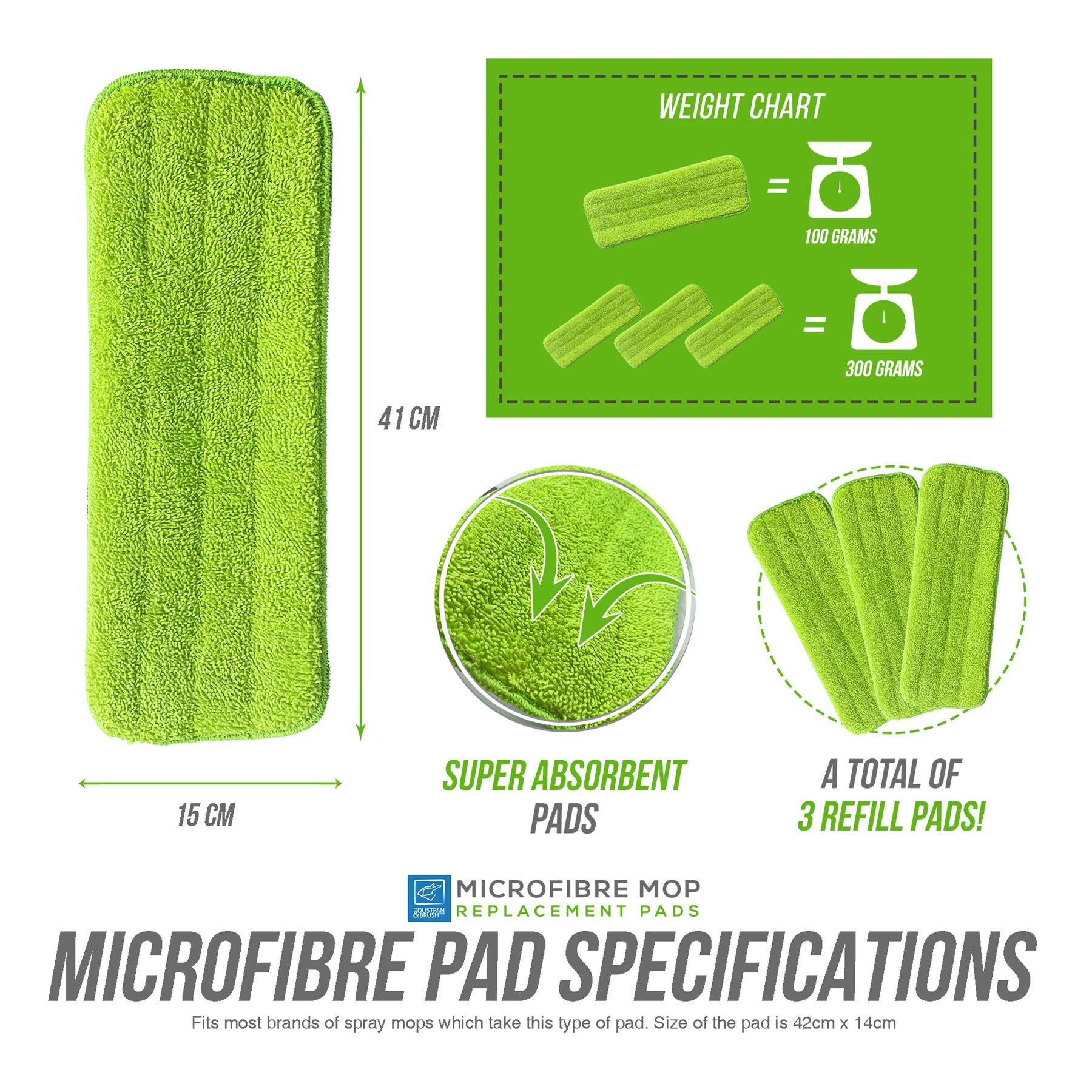 ✓ SPRAY MOP REPLACEMENT PADS CLOTH - Pack of 3 replacement microfibre cloth pads that fit spray mops and laminate floor cleaning mops. Fits most brands of spray mops which take this type of pad. Size of the pad is 42cm x 14cm