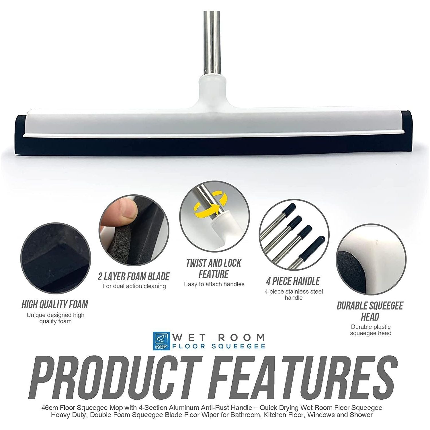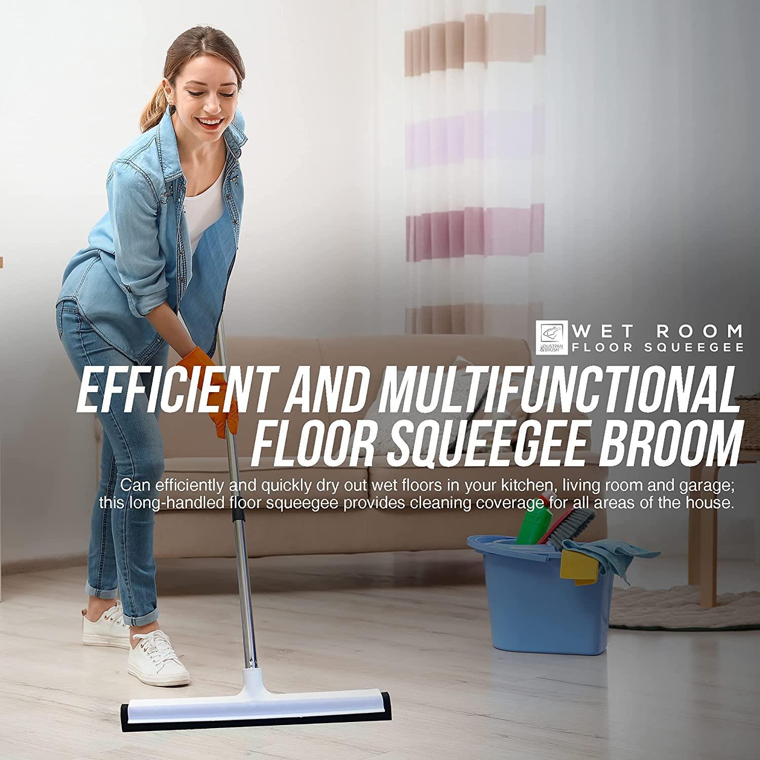 ✔ LONG HANDLED BROOM - 4 Sections screw together and go into the Squeegee head giving a complete our floor squeegee for cleaning and wiping your floor.