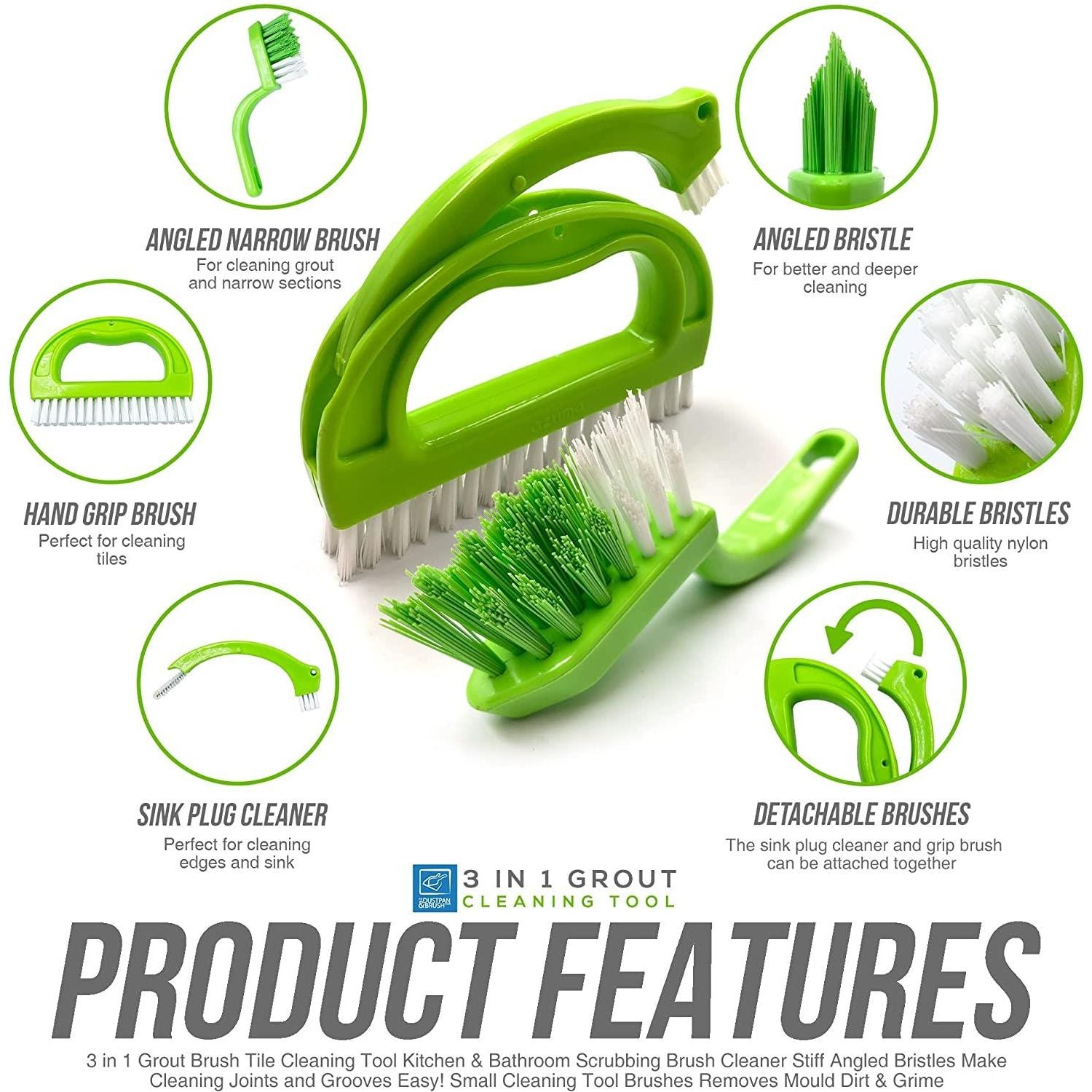 ✔ EFFECTIVE & EASY TO USE - 3 different size brushes make cleaning tasks much easier. Perfect for bathroom or kitchen tile grout cleaning. Angled bristles make getting into the cracks and grooves of grout easy! The handy small narrow sink brush is perfect for cleaning plugs too!