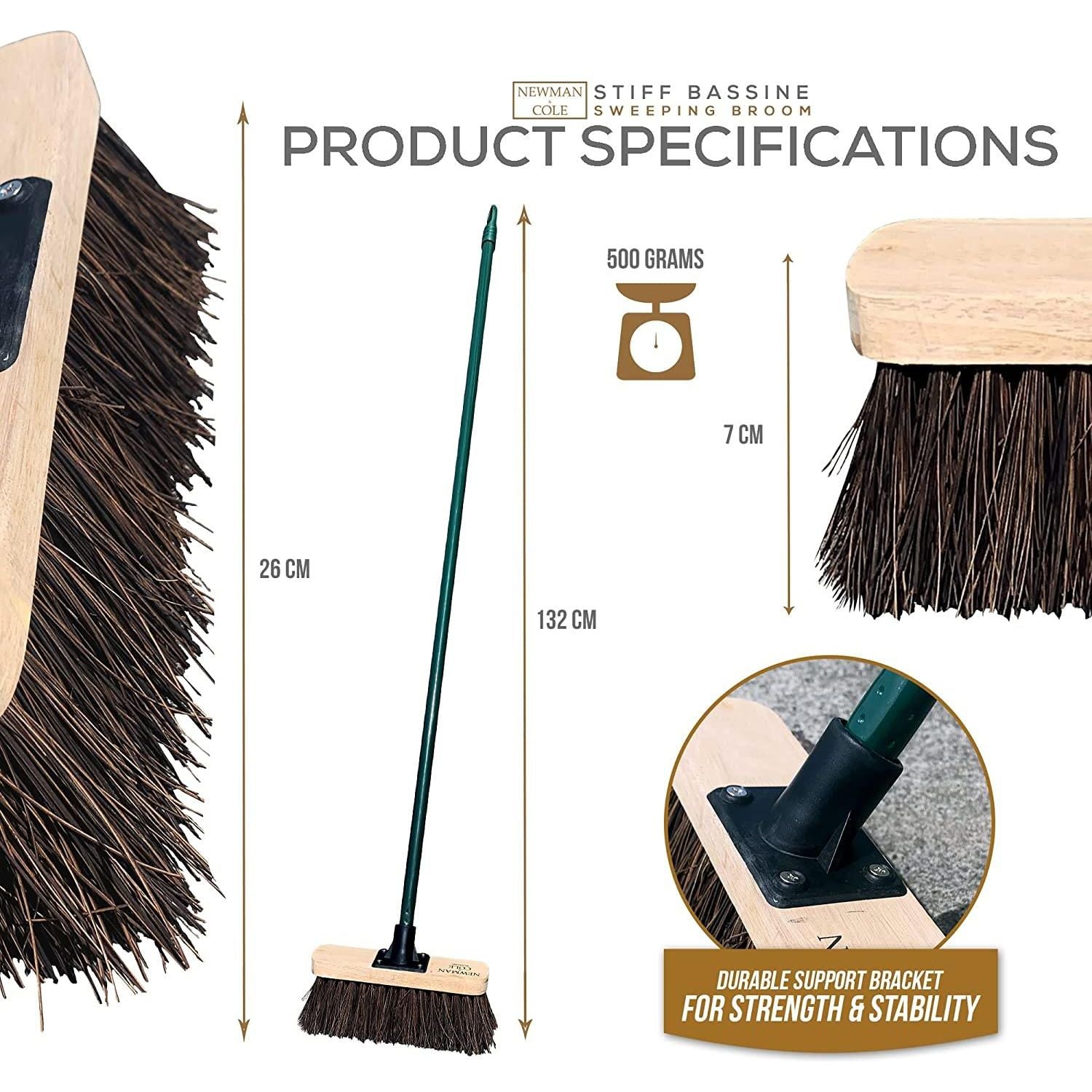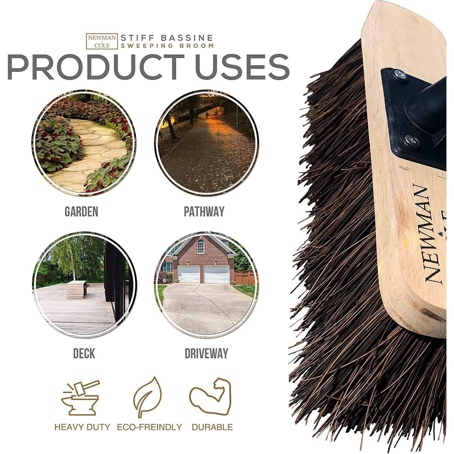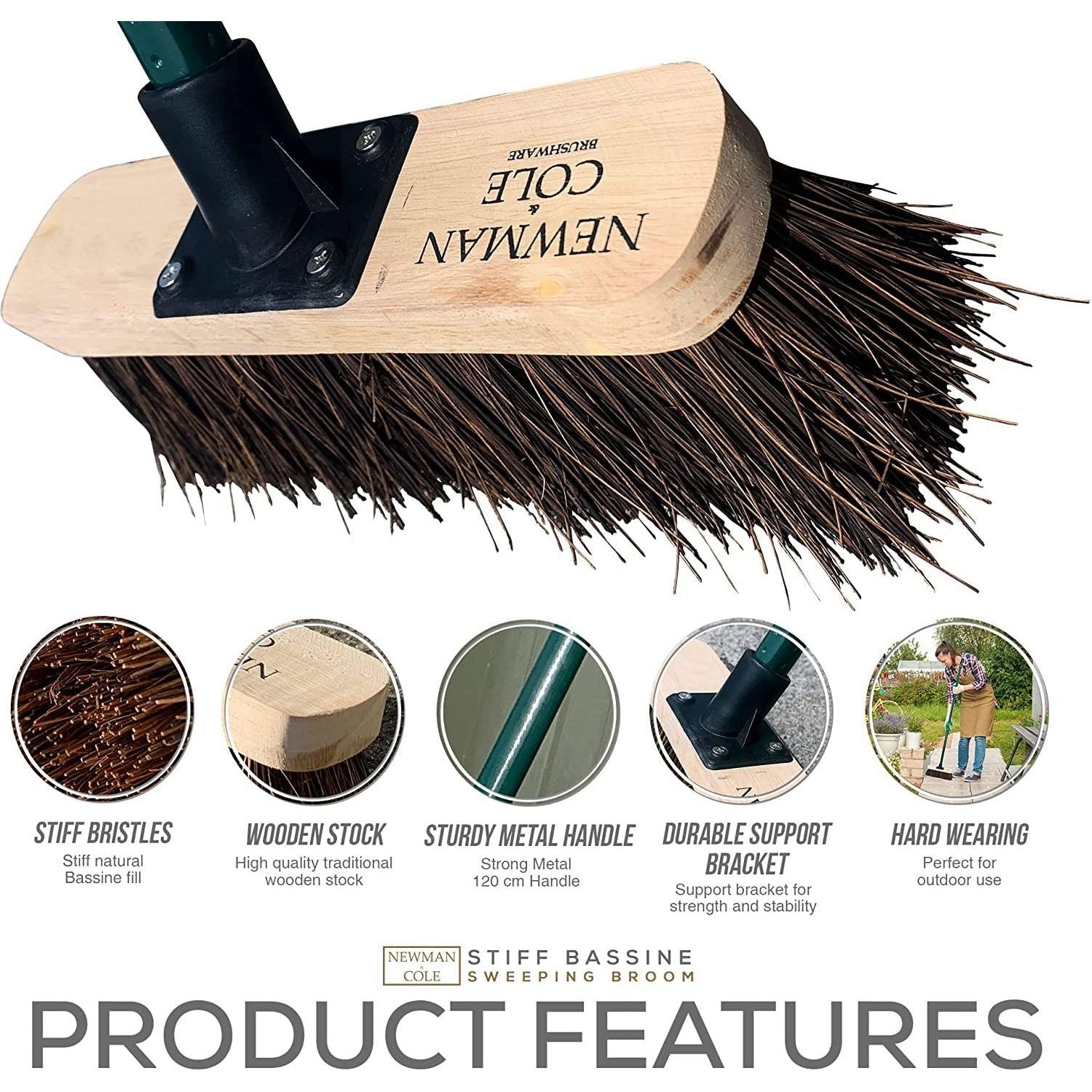 - Trusted Brand - Newman and Cole know what you want from an outdoor broom and aim to deliver exactly that! This stiff bristle natural bassine yard broom is perfect for sweeping up muck, moss and other garden waste.