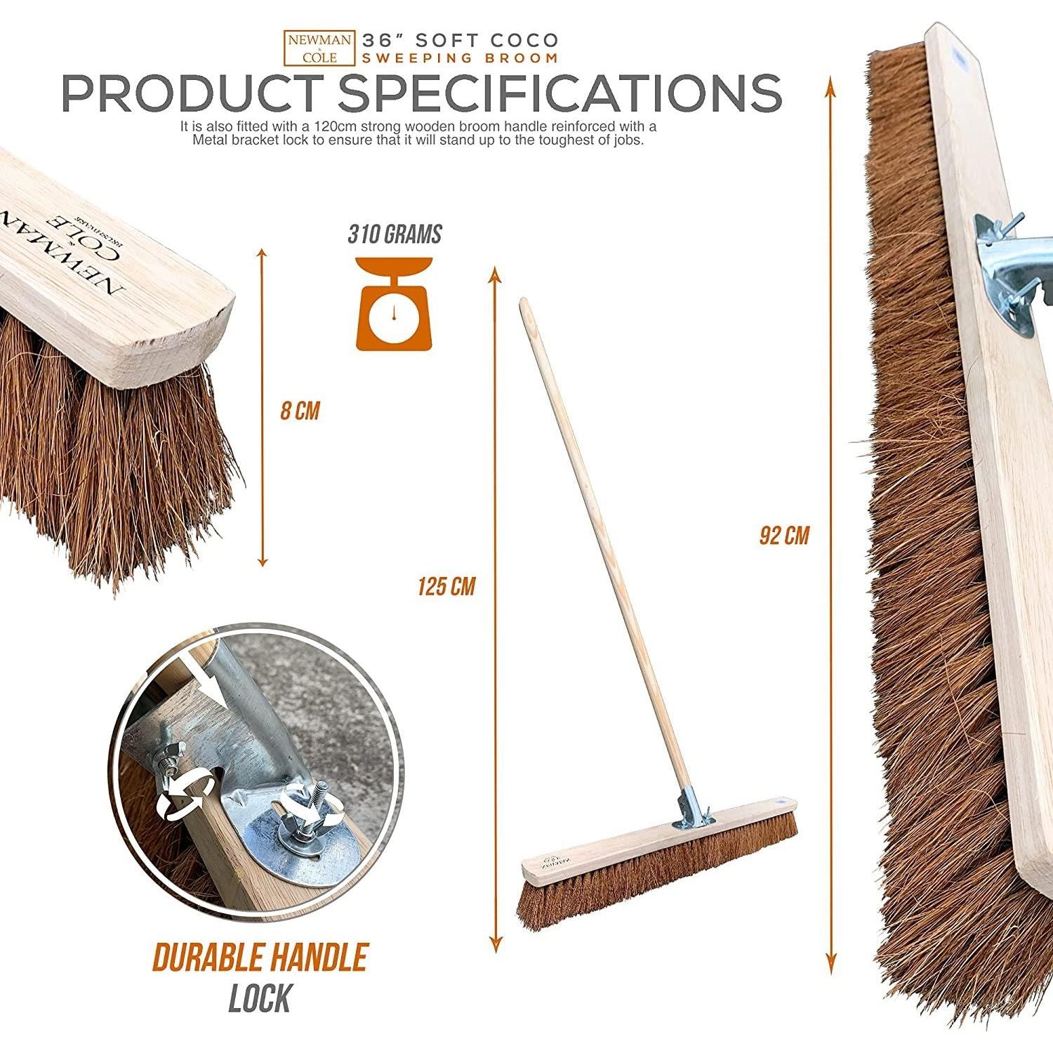 36” Soft Coco Broom comes with a Metal Bracket and 1 1/8" (28-29mm) Wooden Handle