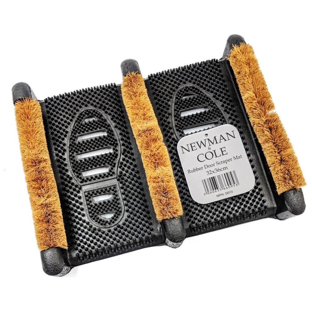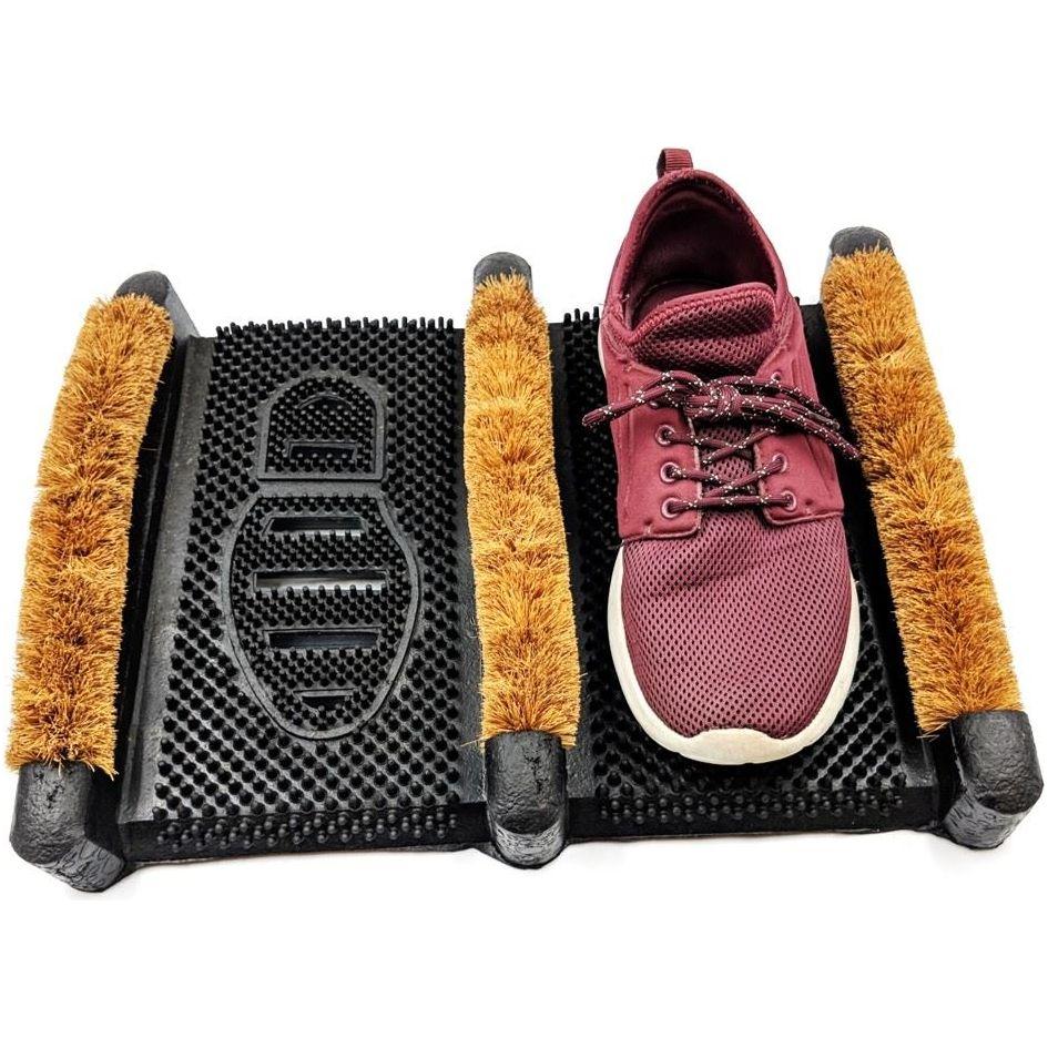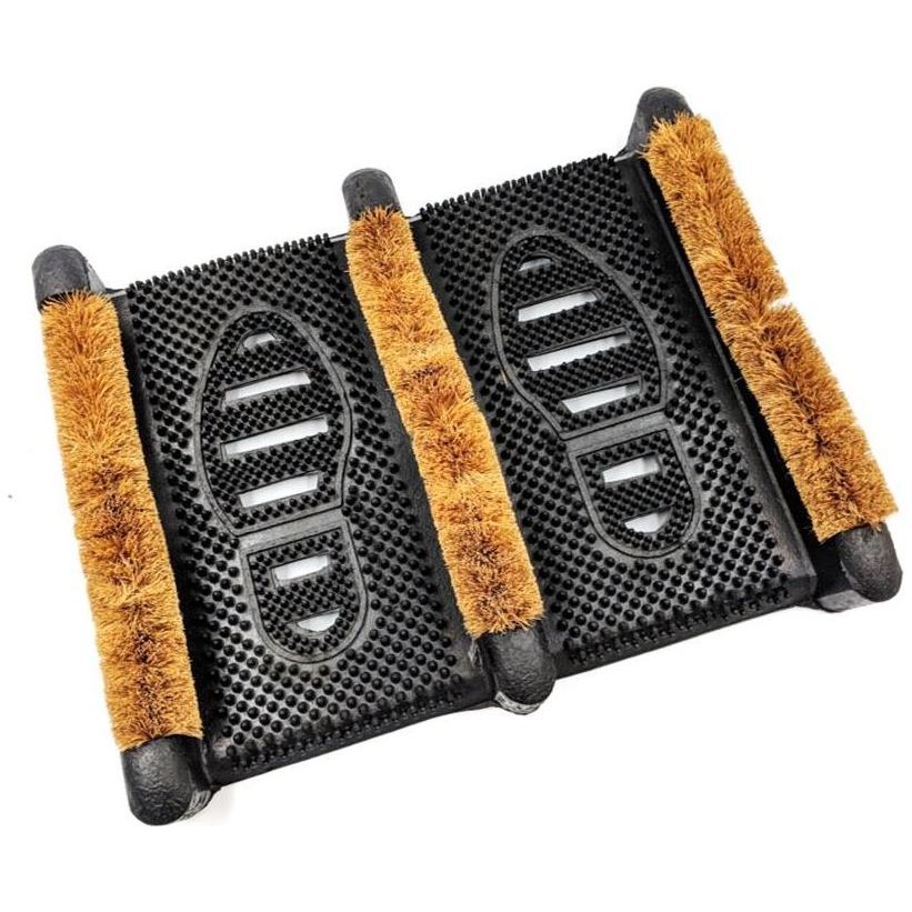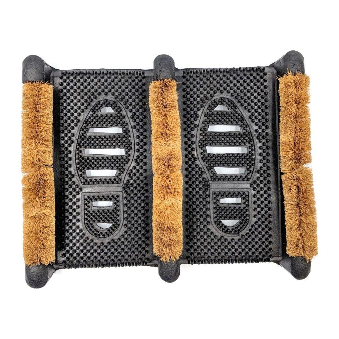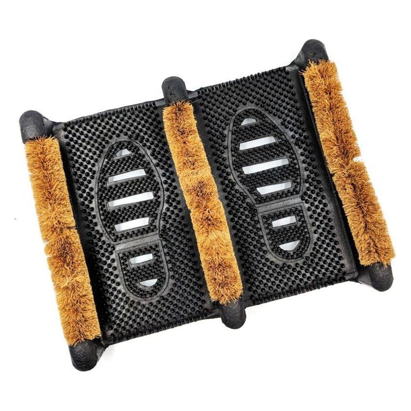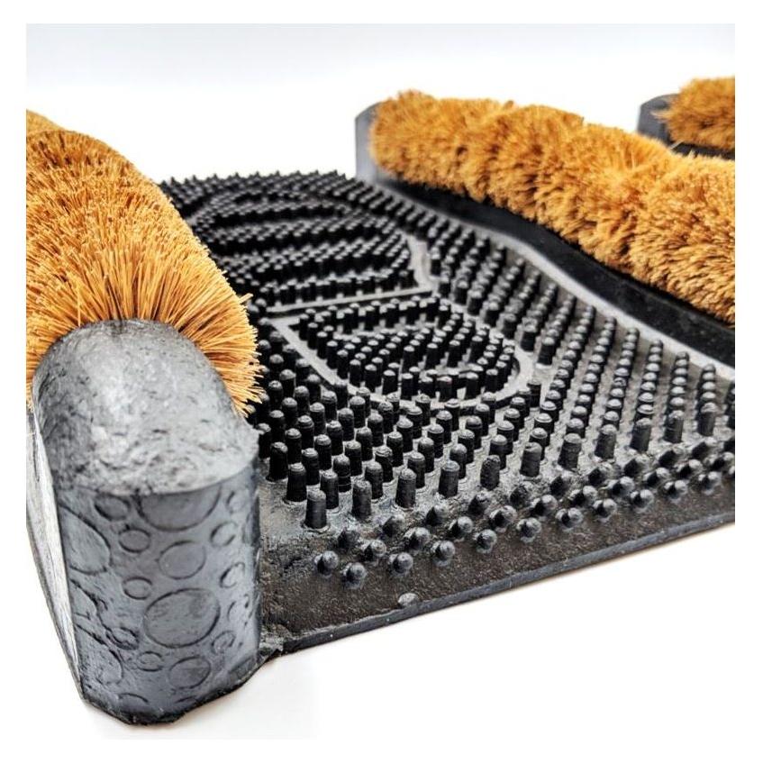 GREAT DIRT SCRAPING PERFORMANCE: the outdoor floor mat is made from natural rubber dotted with numerous little fingers combined with three rows of raised and tough coir tufts that scrape dust, dirt and mud. This foot scraper will clean well the sides and soles of your shoes and boots, and stops debris and moisture being walked in the house.