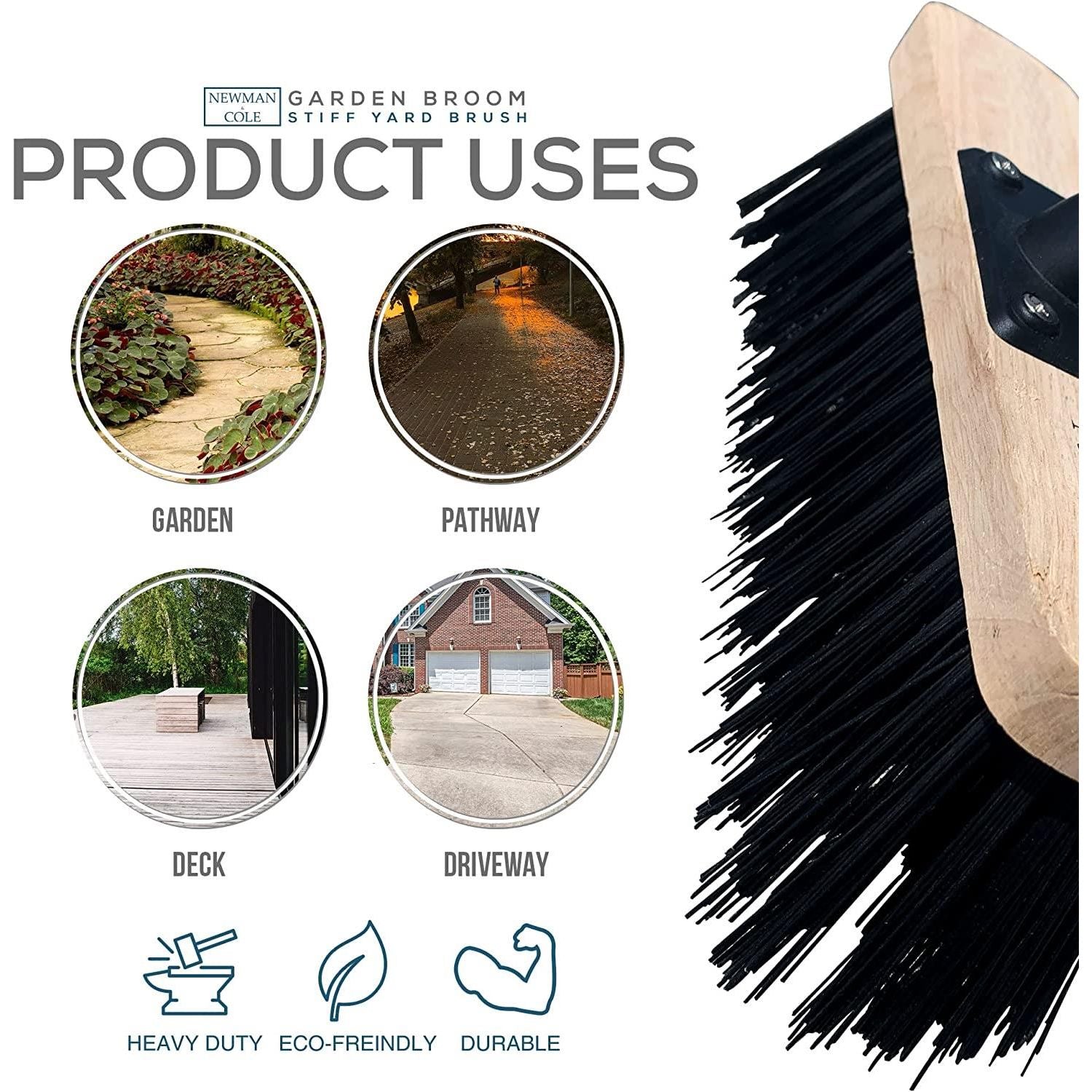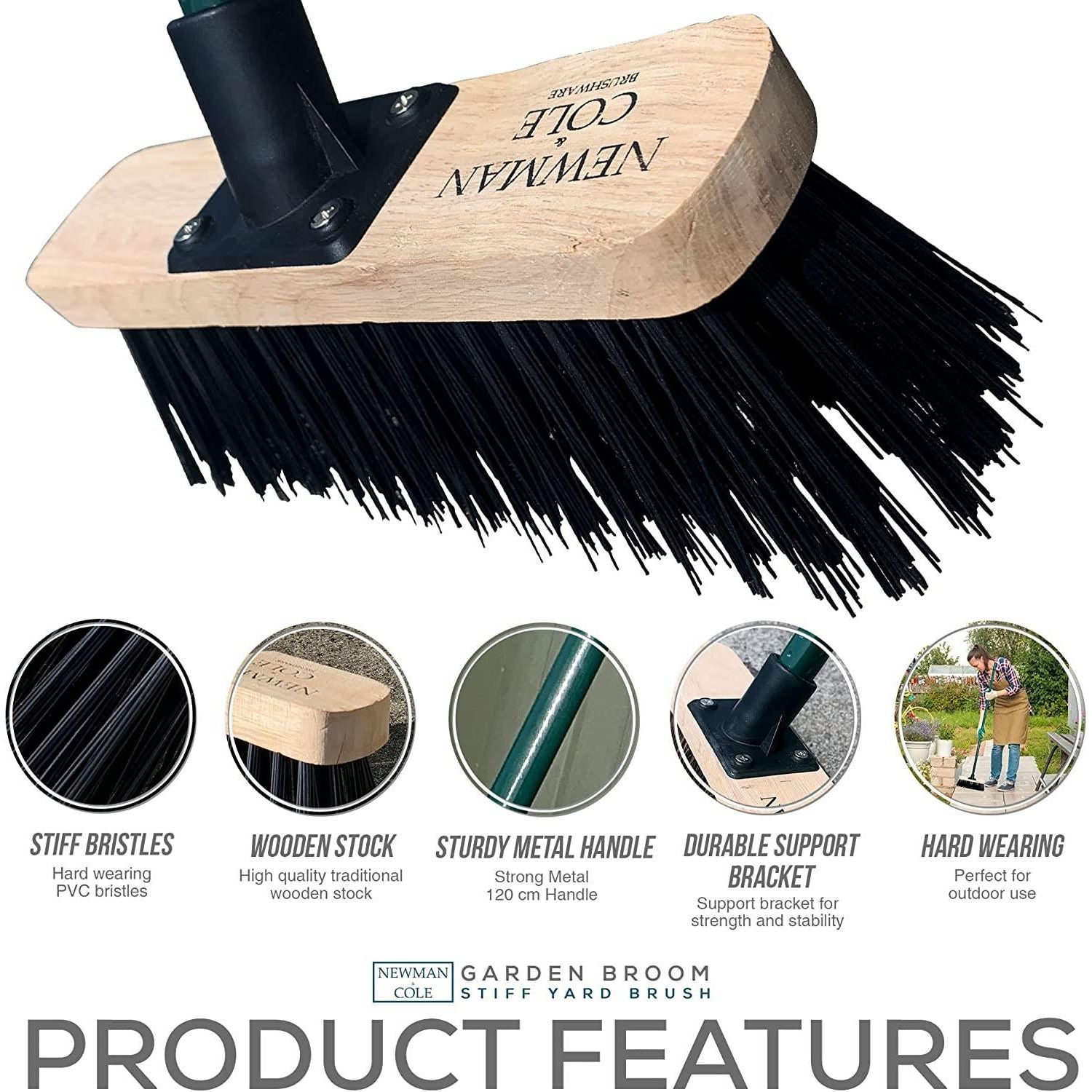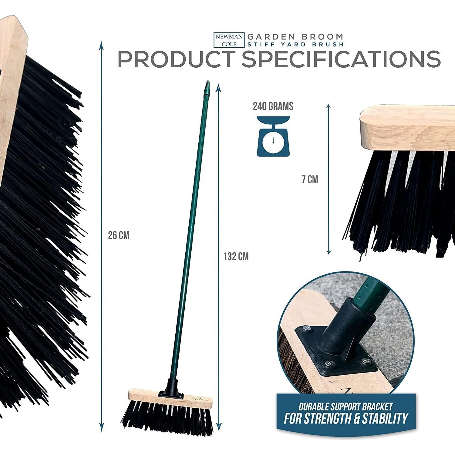 - Trusted Brand - Newman and Cole know what you want from an outdoor broom and aim to deliver exactly that! This outdoor brush with synthetic PVC bristles is a perfect stiff broom for outside use.