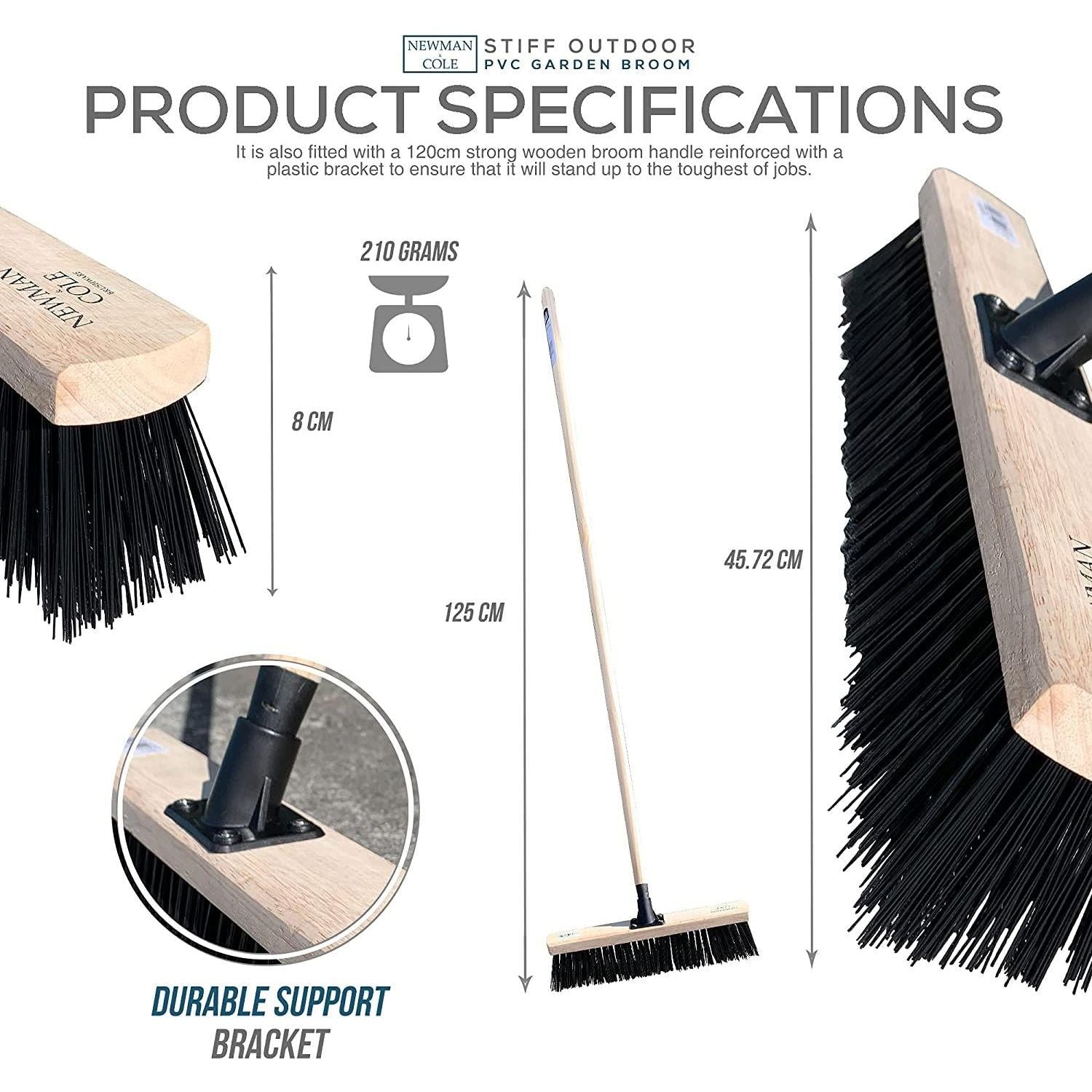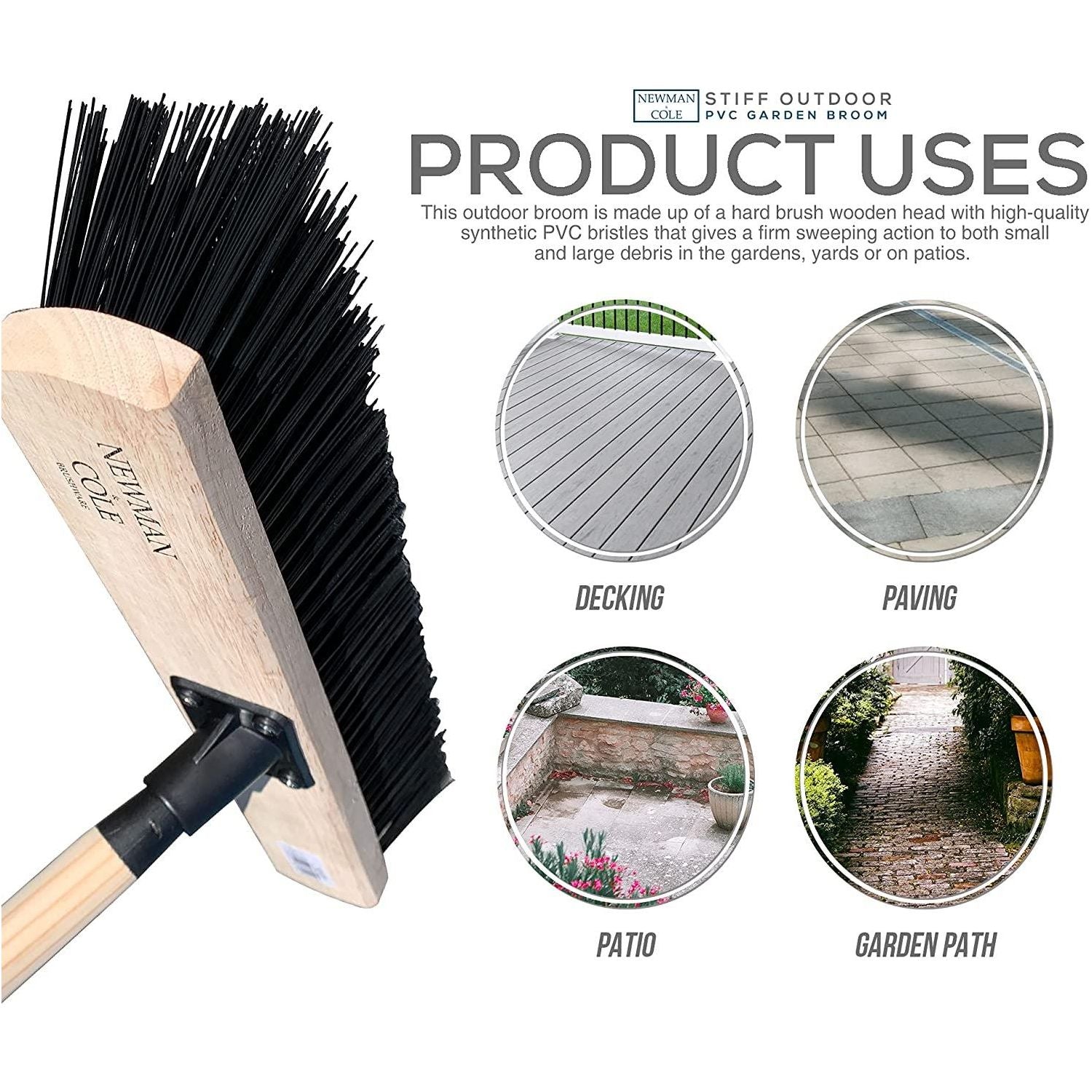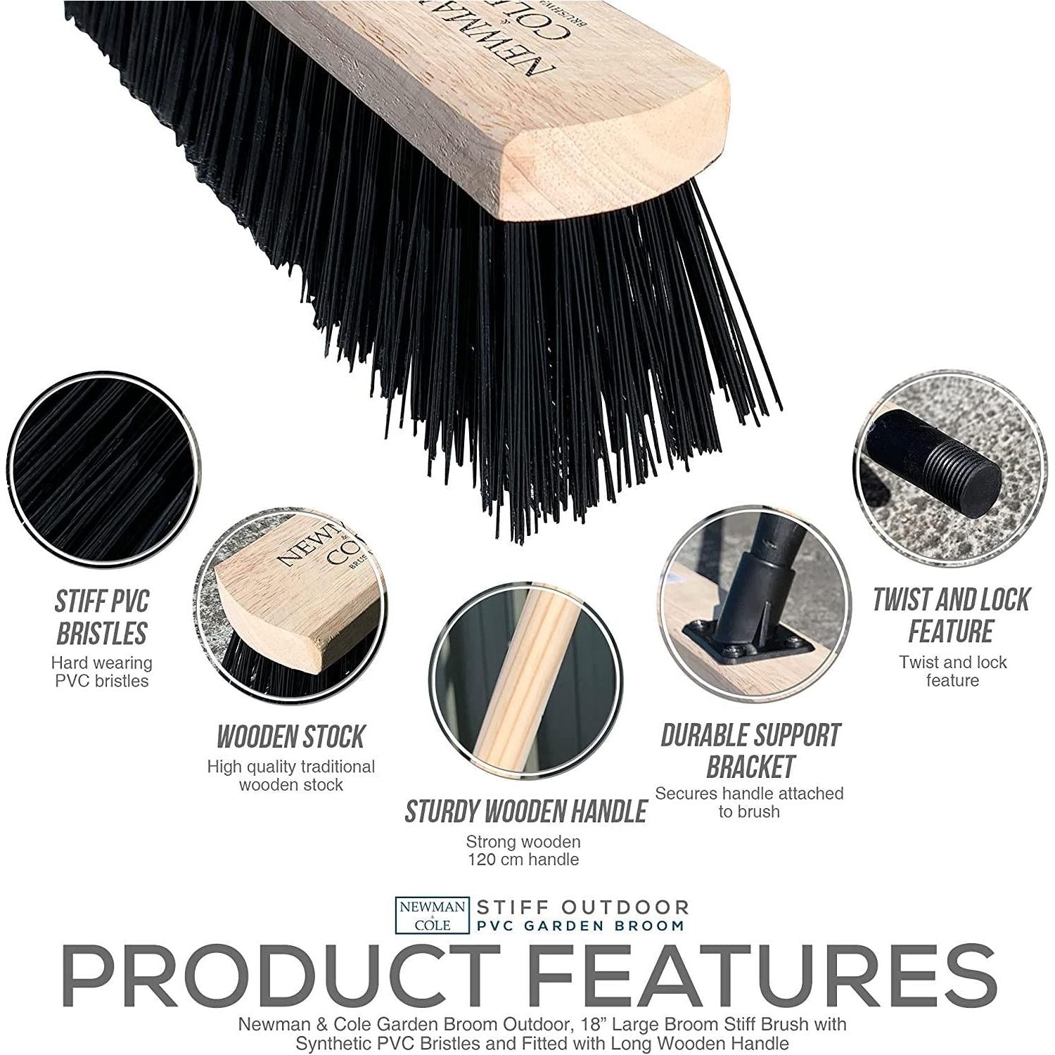 - Trusted Brand - Newman and Cole know what you want from a hard bristle broom and aim to deliver exactly that! This 18” outdoor broom heavy duty with PVC bristles is a perfect hard brush for cleaning outside.