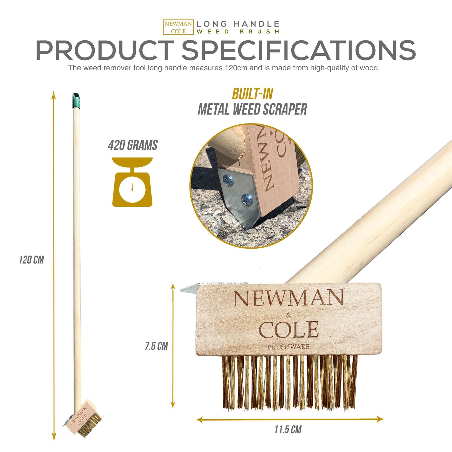 - Long and Strong Wooden Handle − No more backache when cleaning your patios, gardens and driveways with this pavement weeding tool. The weed remover tool long handle measures 120cm and is made from high-quality of wood. The handle is sturdy enough so you can apply pressure when cleaning. This long handled wire brush can also be used access hard to reach places like roofing or walls.