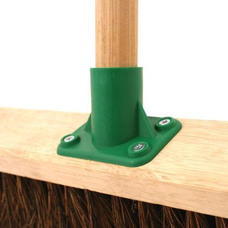 Plastic bracket that fixes and supports 1 1/8" (28/29mm) brooms handle / shafts too a broom or brush head.