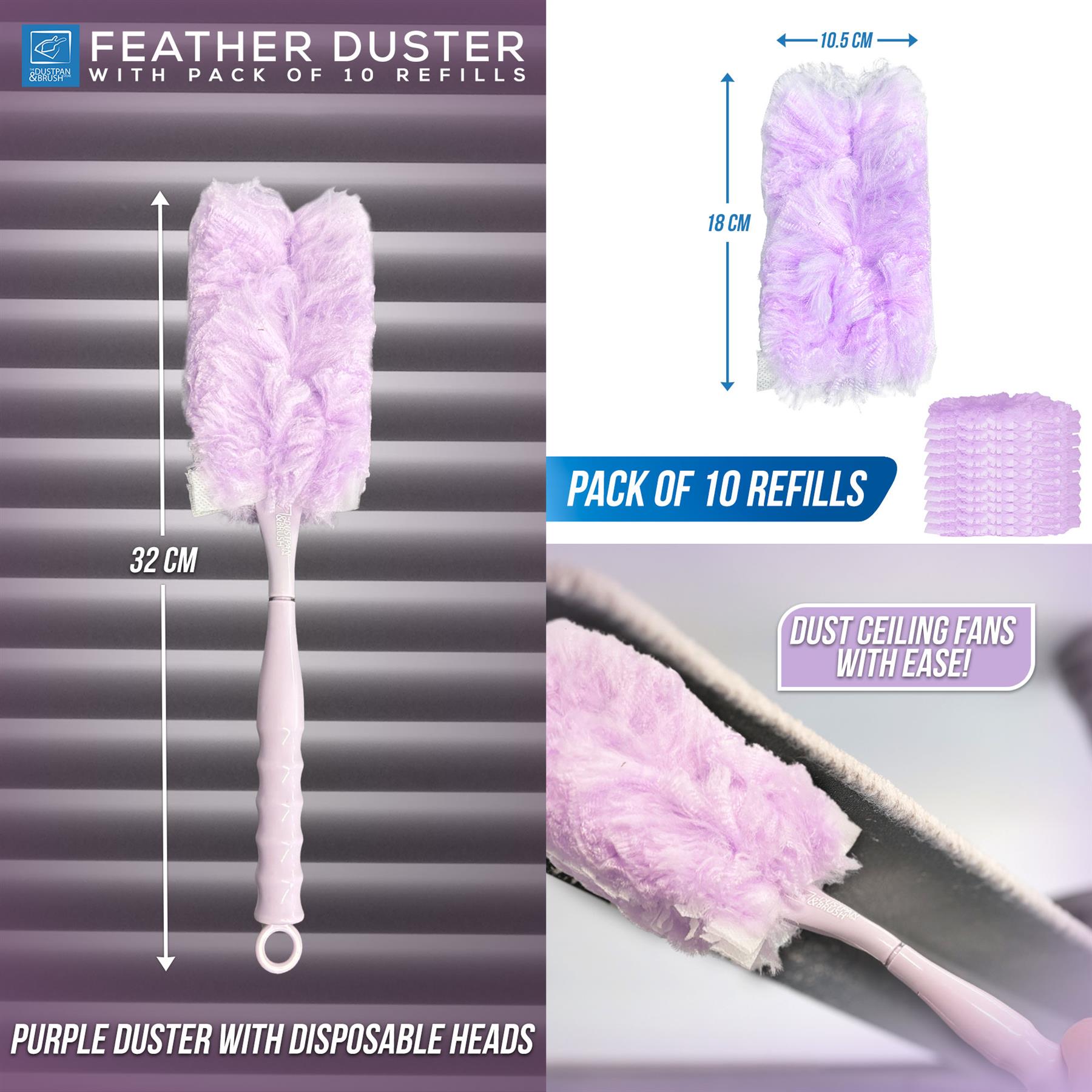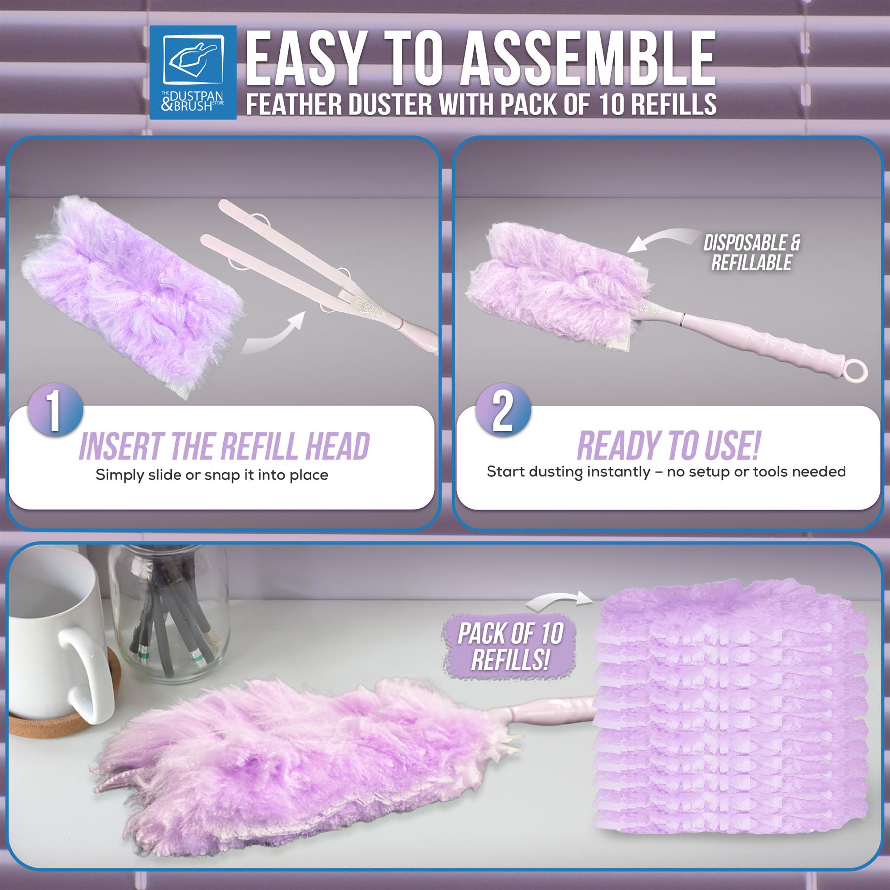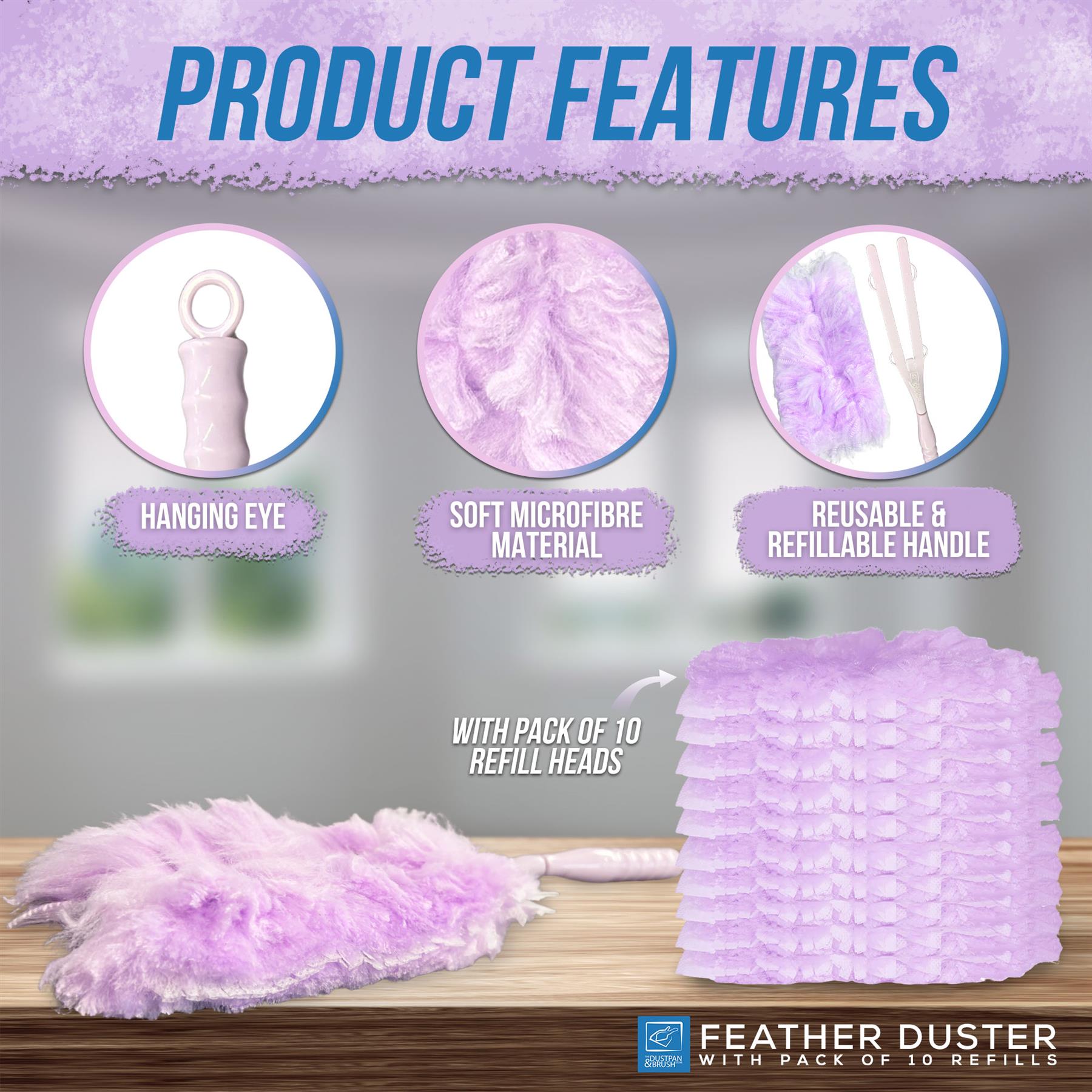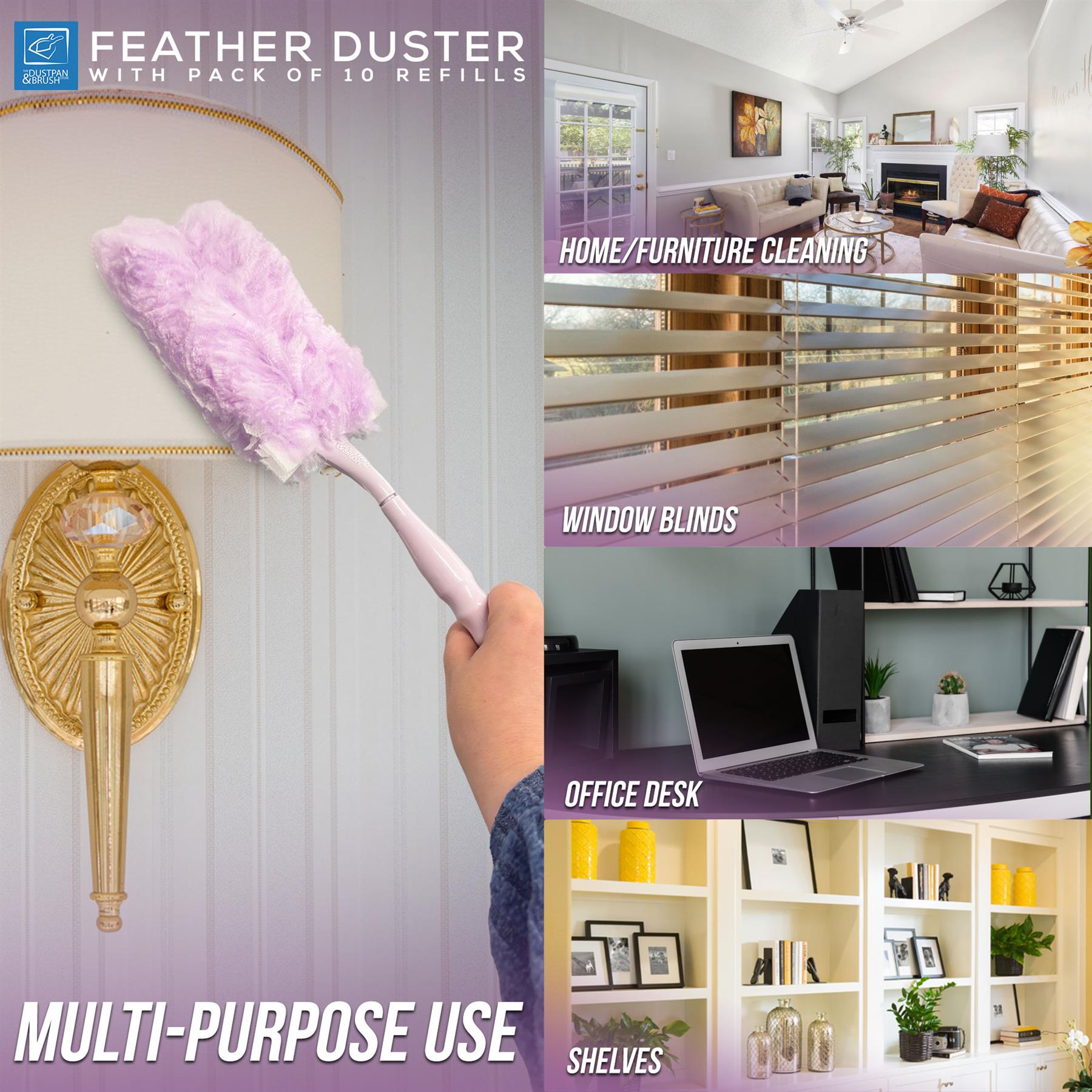 Keep your home dust-free with our Feather Duster and Refills. The soft fibres trap dust and dirt with ease. Perfect for shelves, blinds, furniture, and hard-to-reach spots. Comes with a comfy handle and 10 disposable refills for long-lasting use.