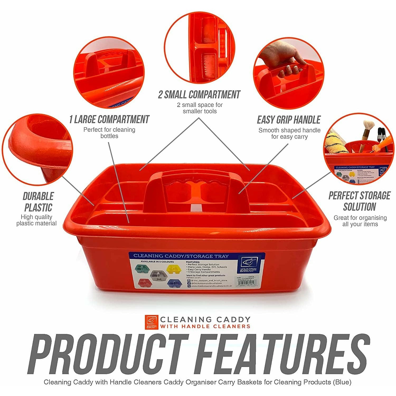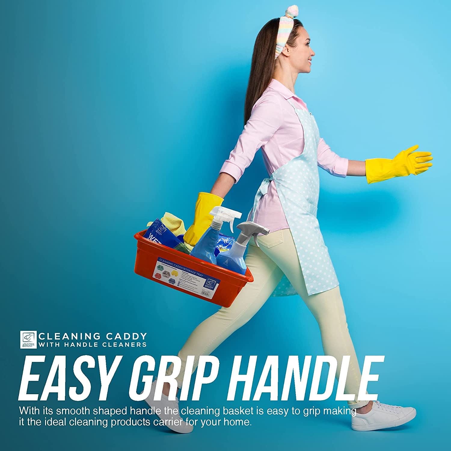Cleaners plastic caddy. Bottle and Cloth storage tray. Blue carry all tote tray with handle