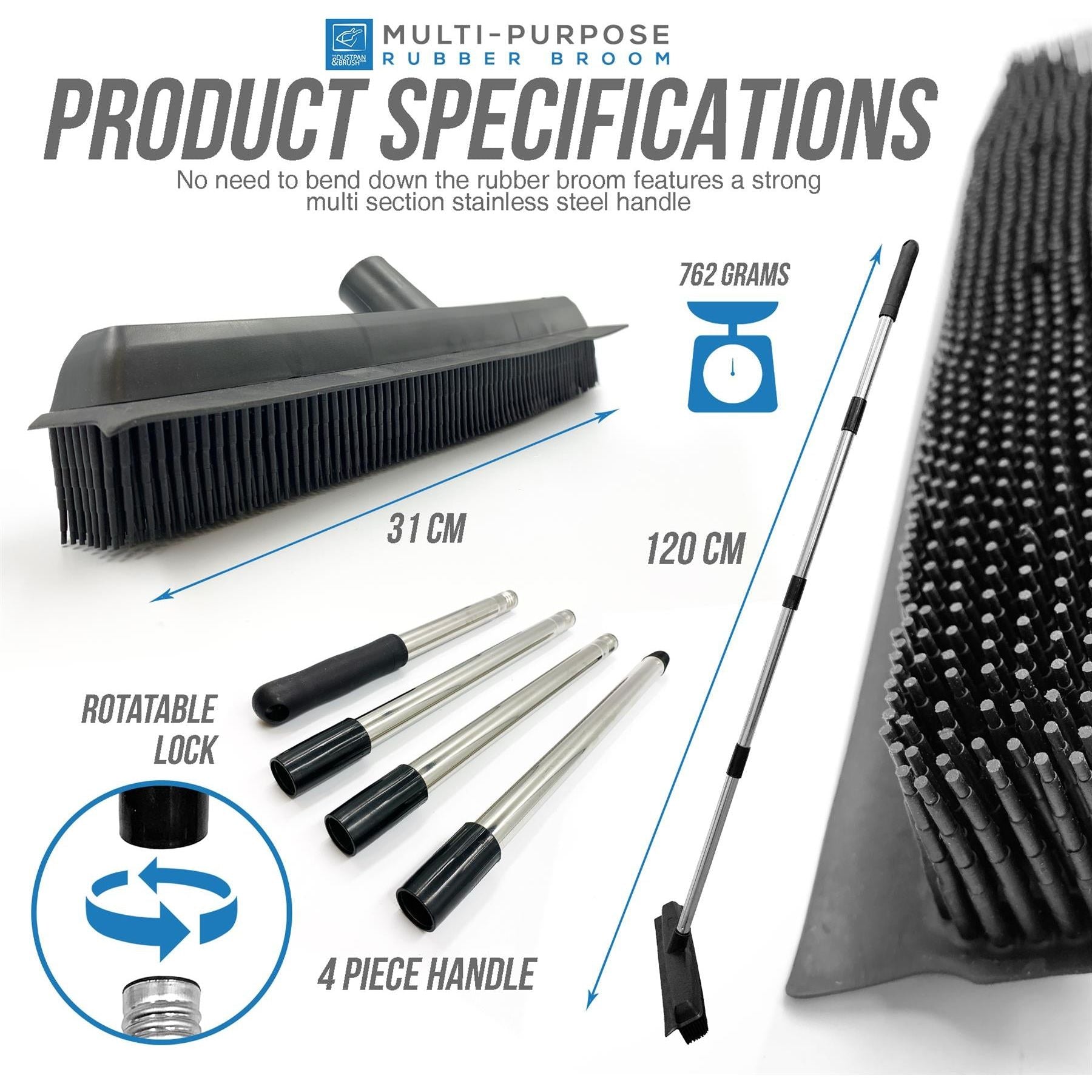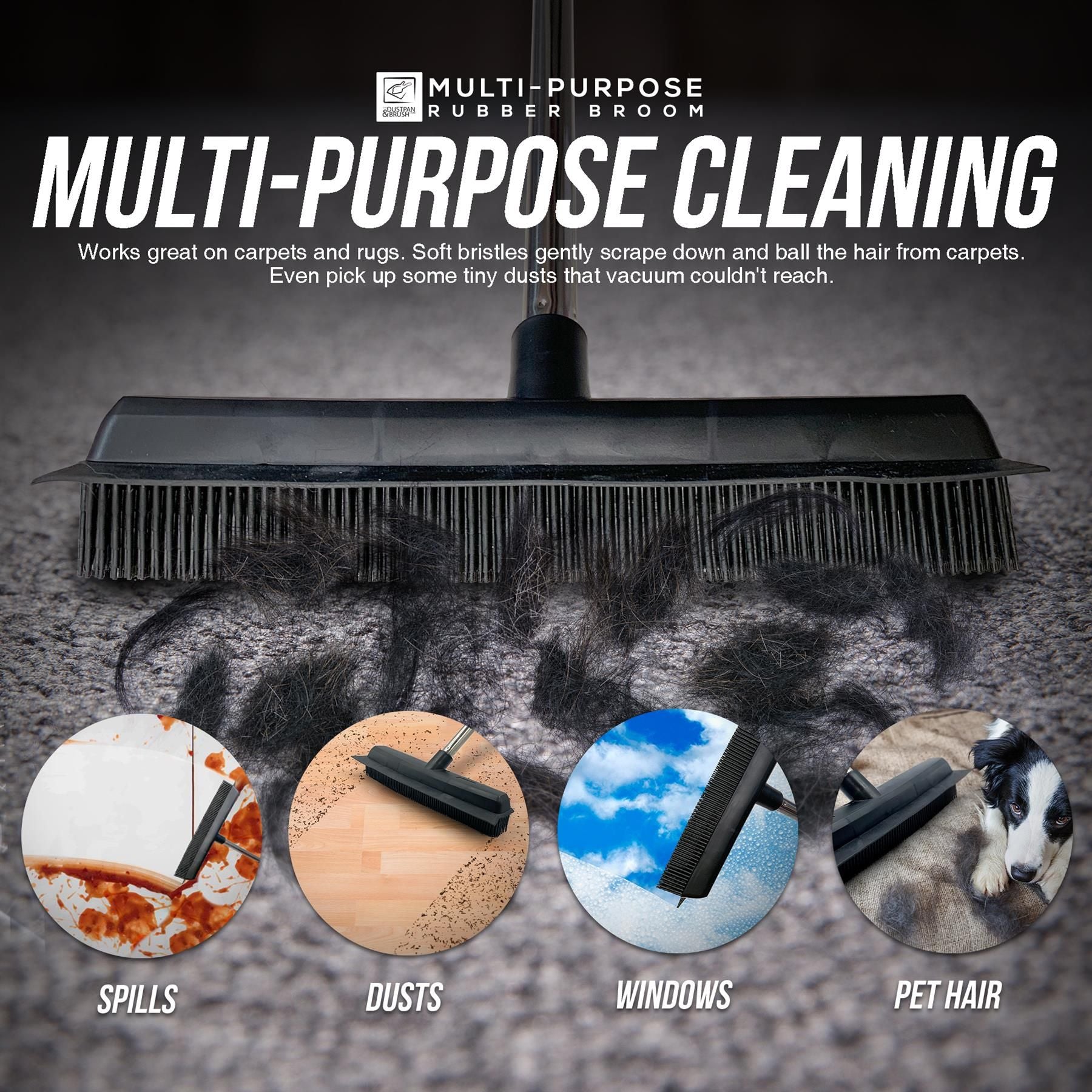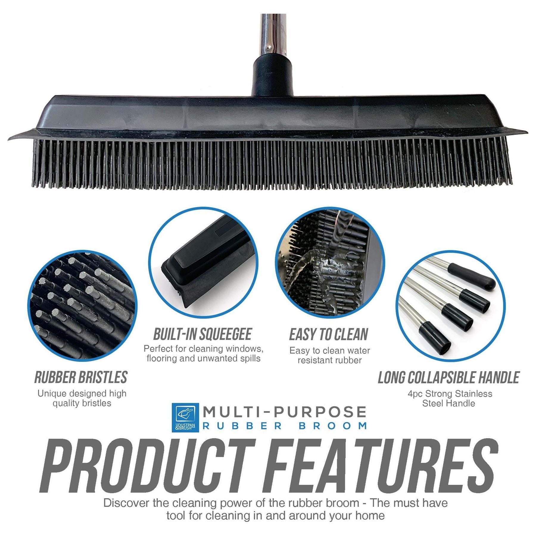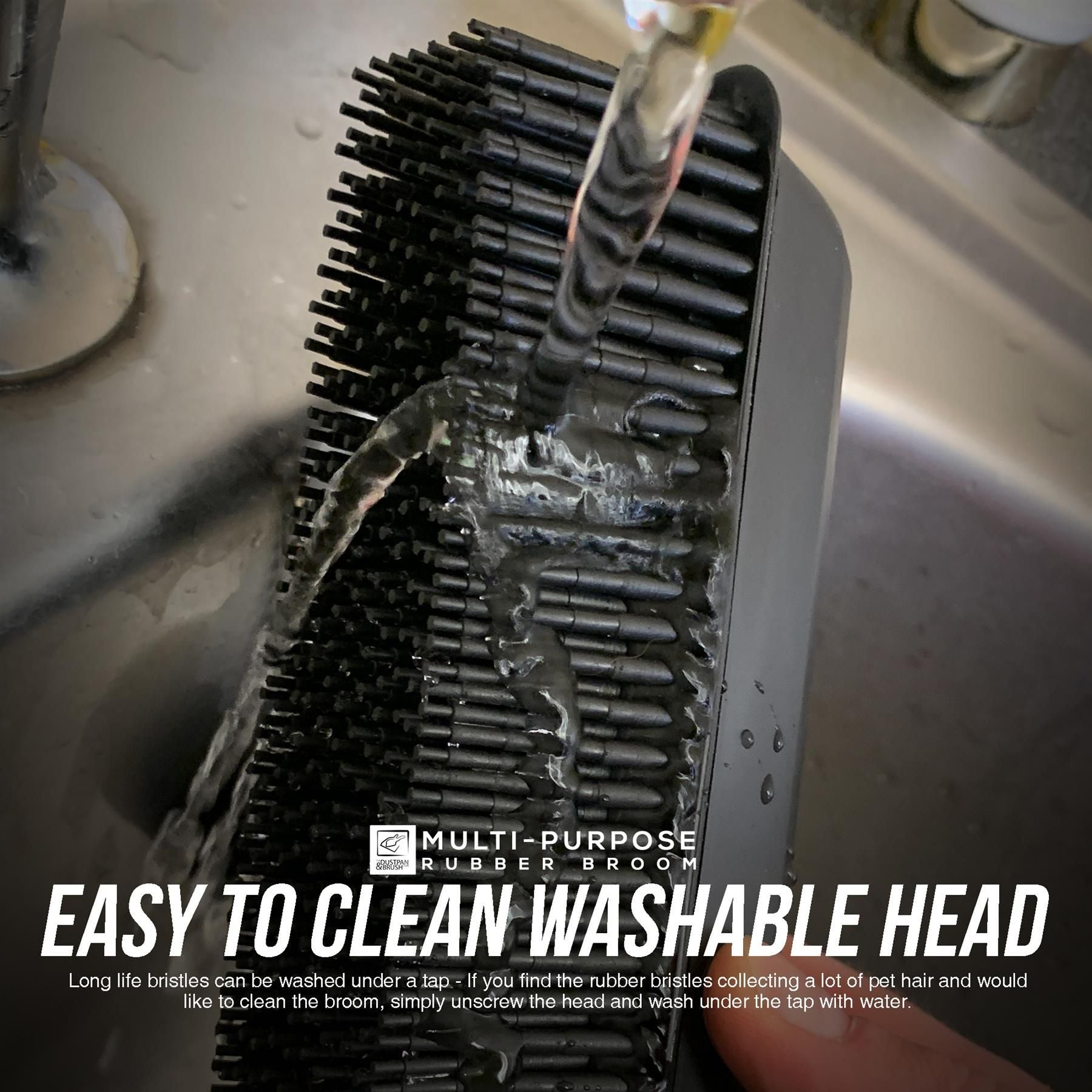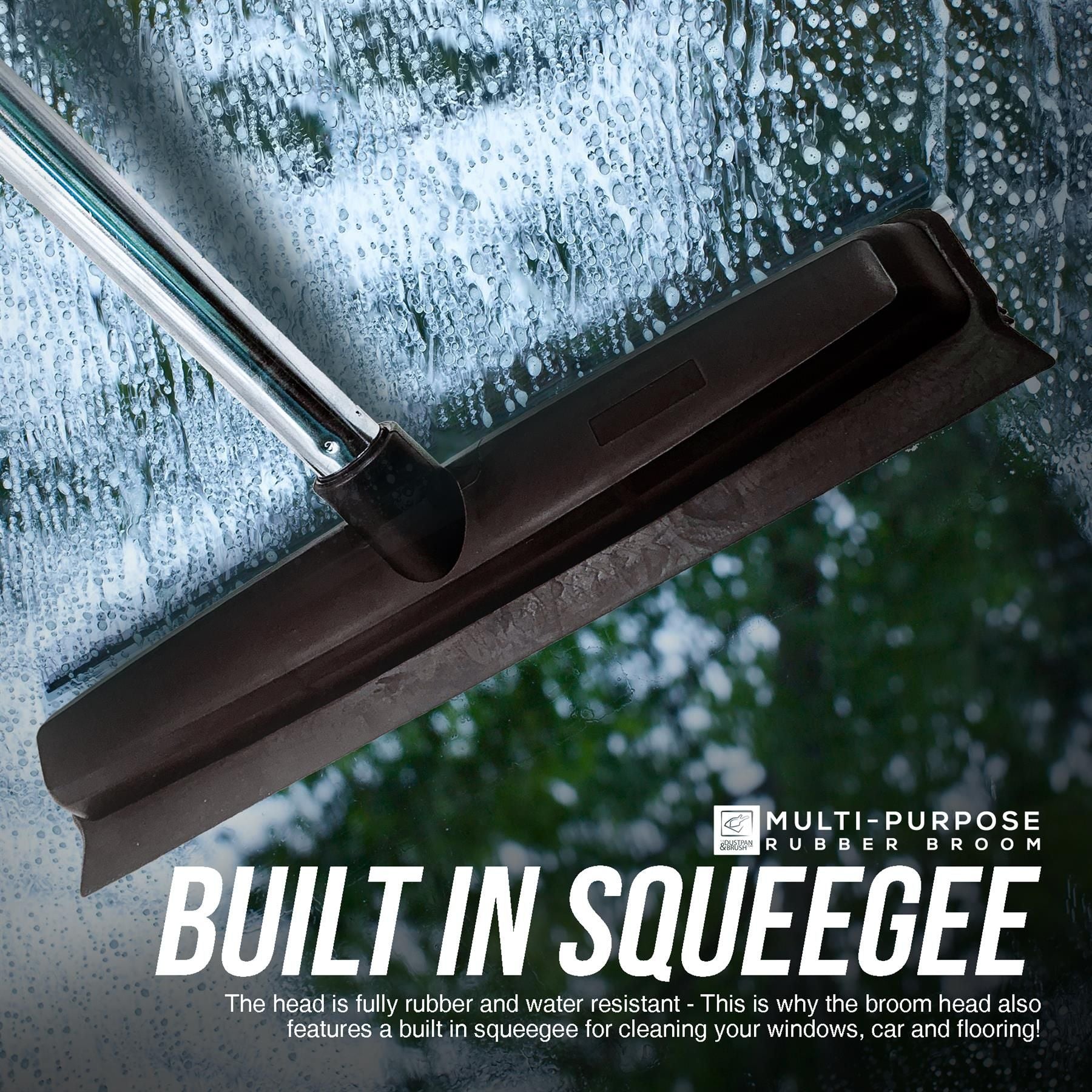 The rubber broom also features an inbuilt squeegee which can be used on floors or for cleaning windows.