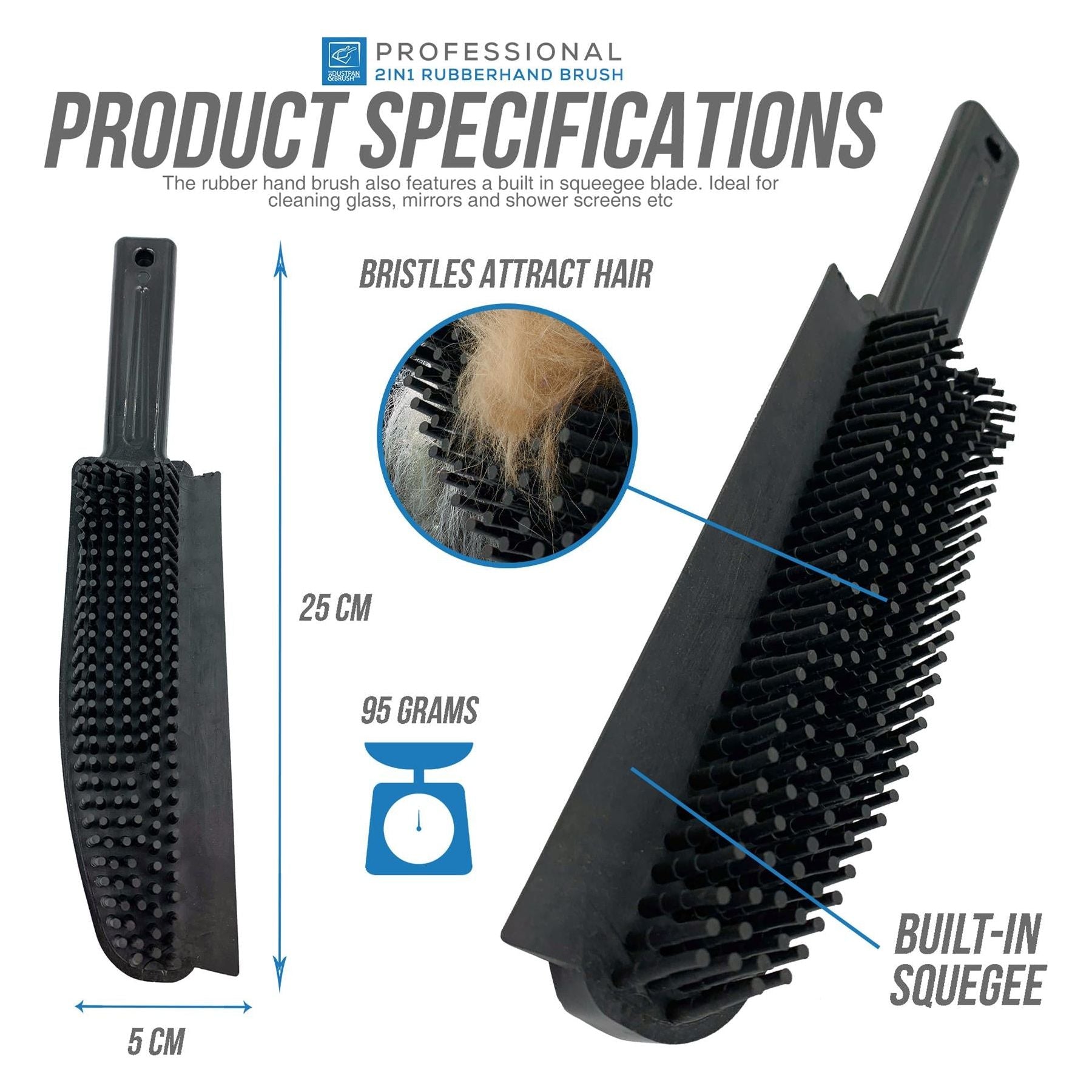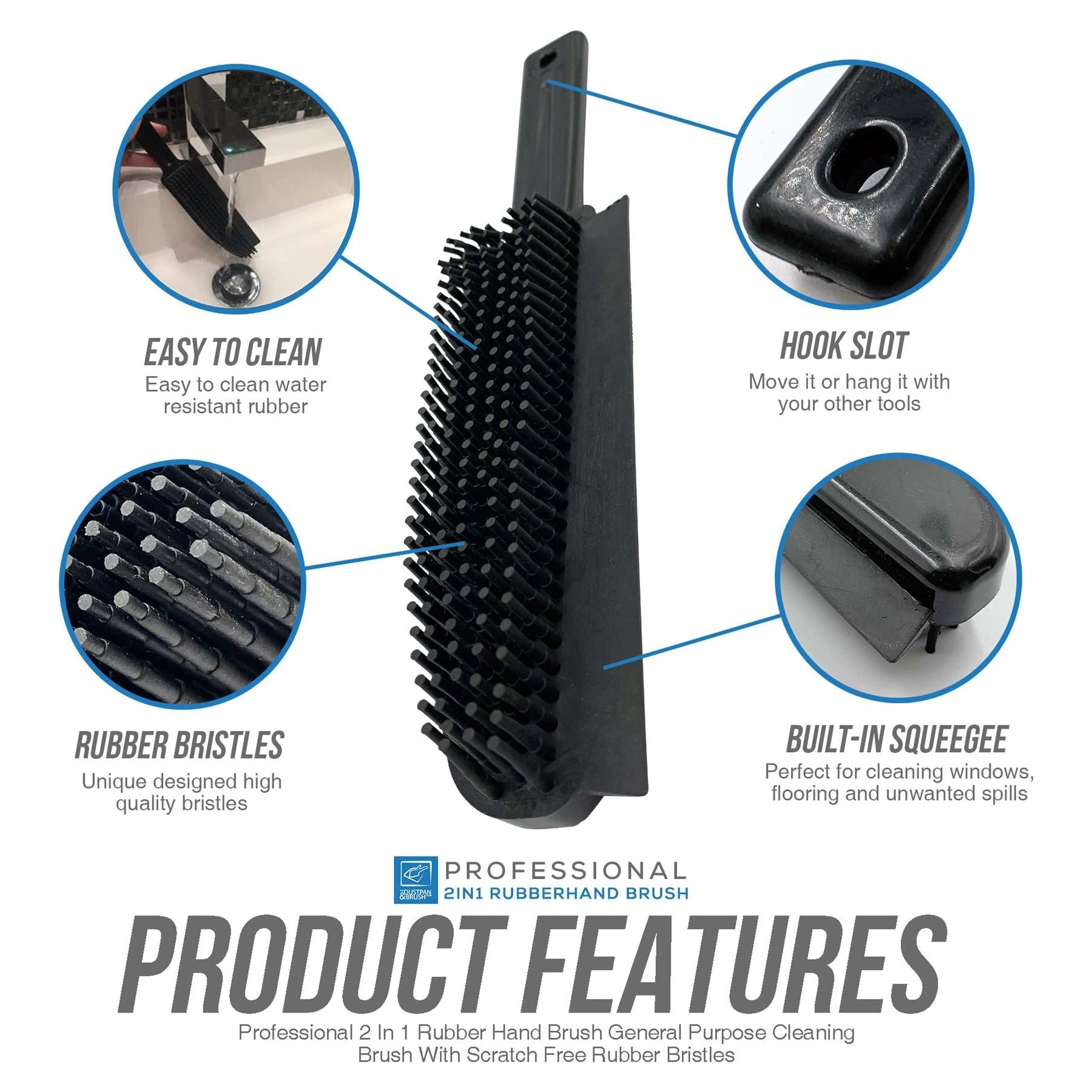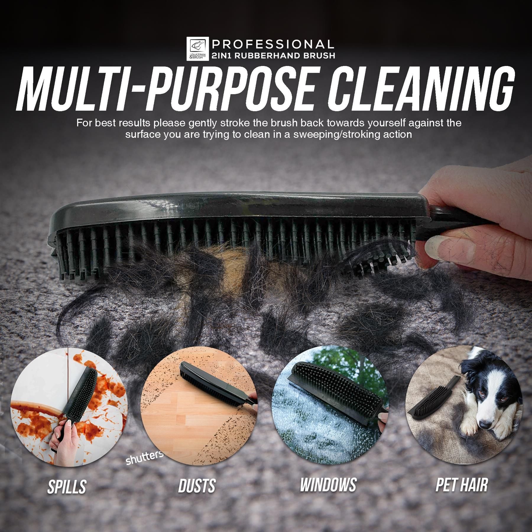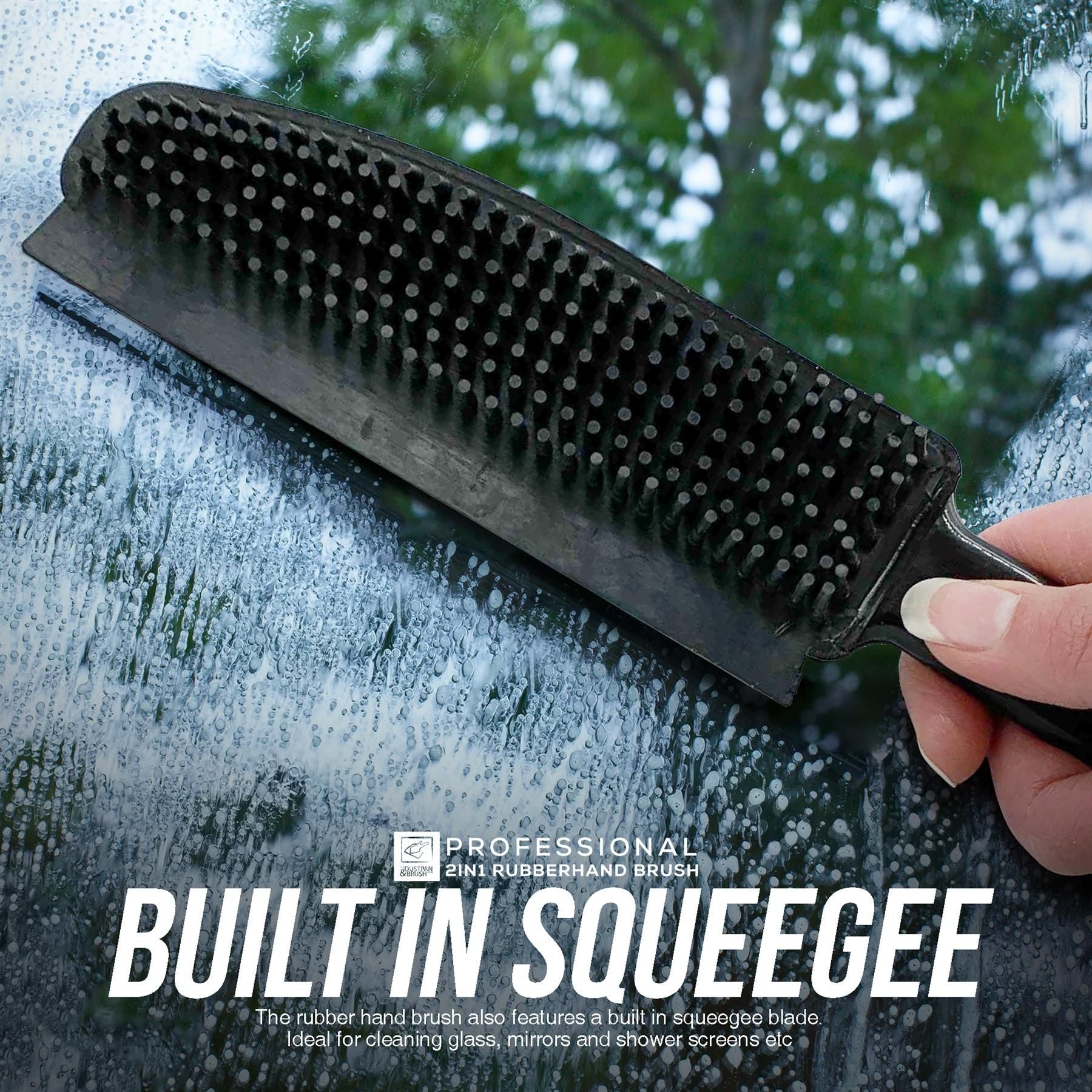 Built into the hand brush is a rubber squeegee which can be used for cleaning windows and mirrors.