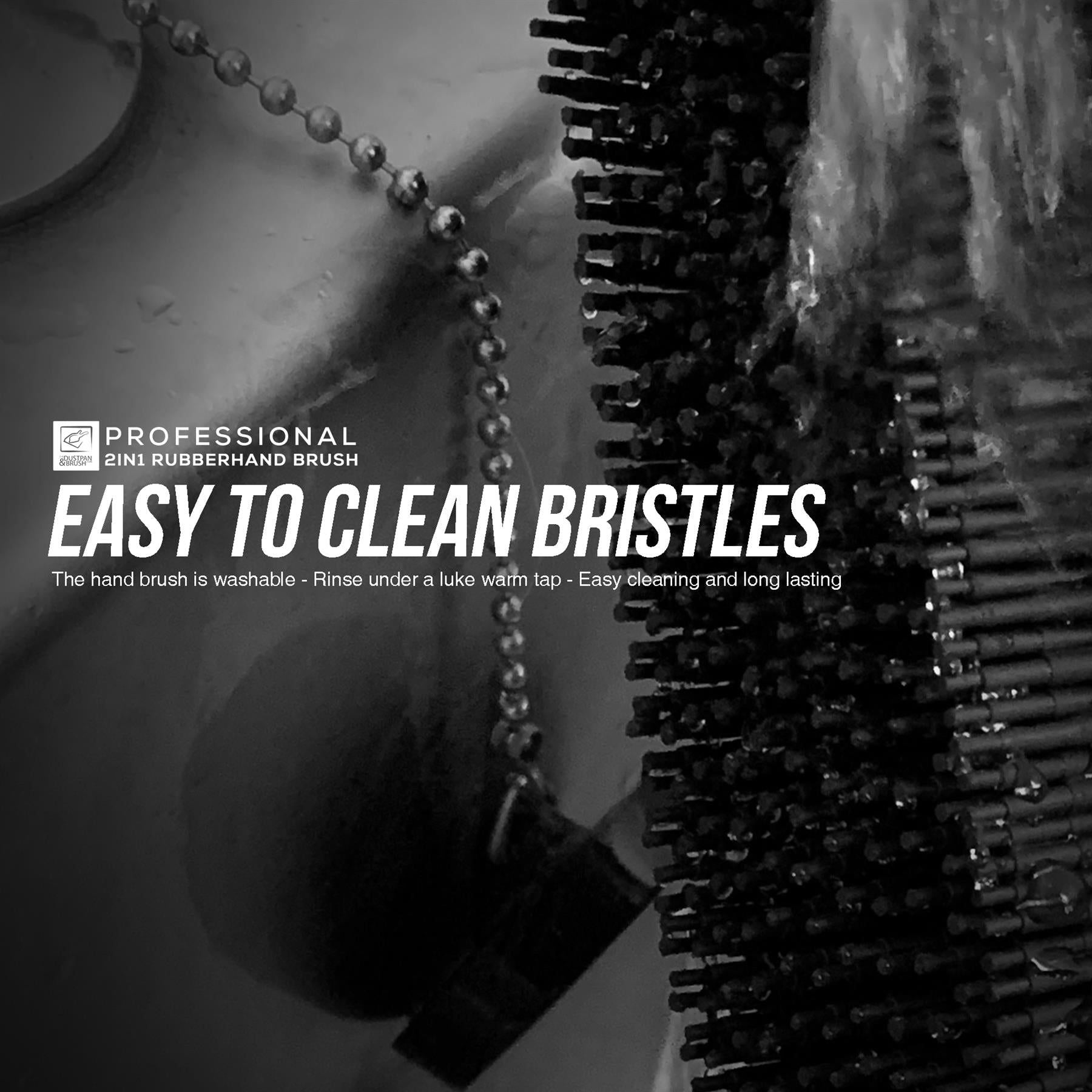 Once used the rubber hand brush can be washed under a tap and used again and again.