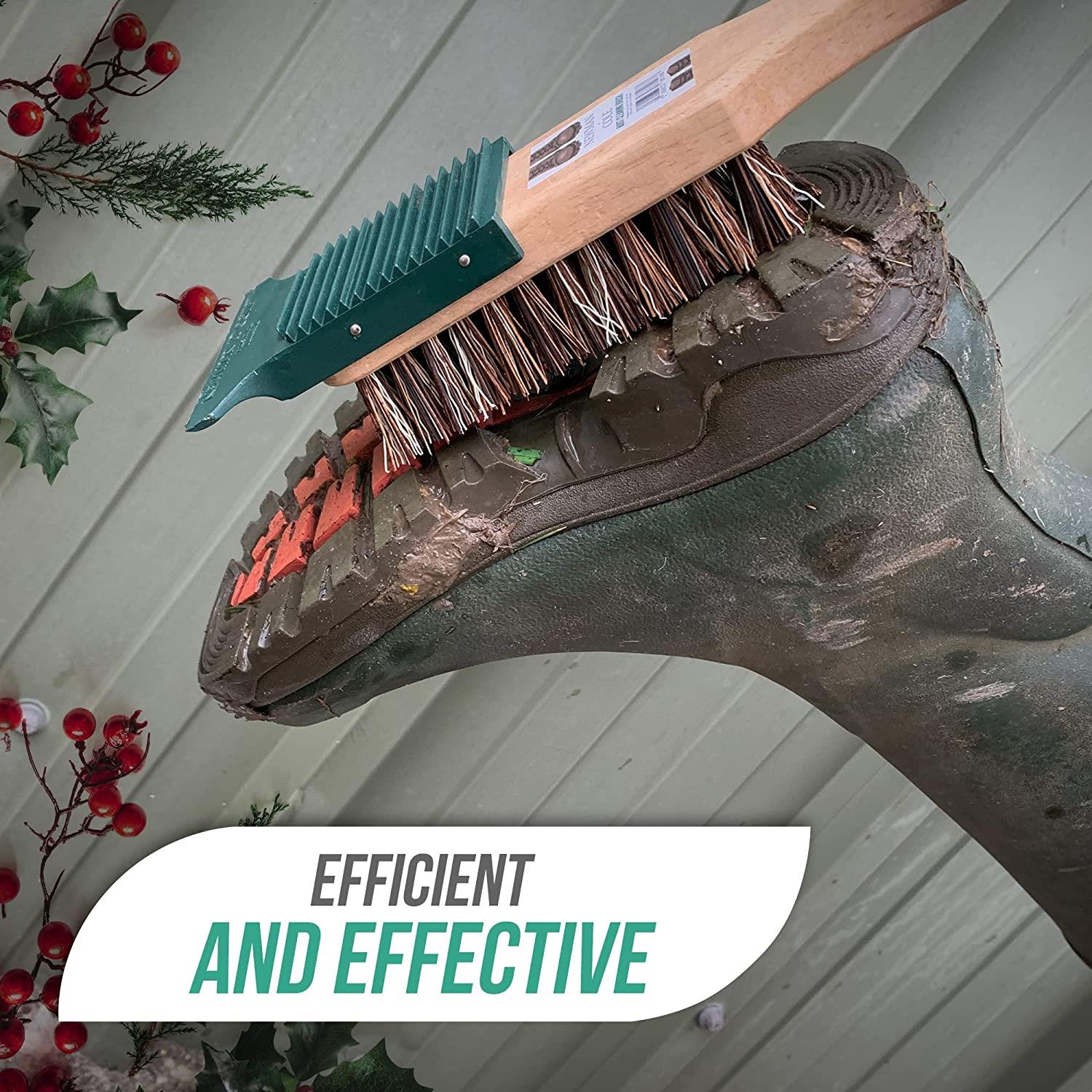 Stiff hard wearing bristles that are firm enought to remove mud.