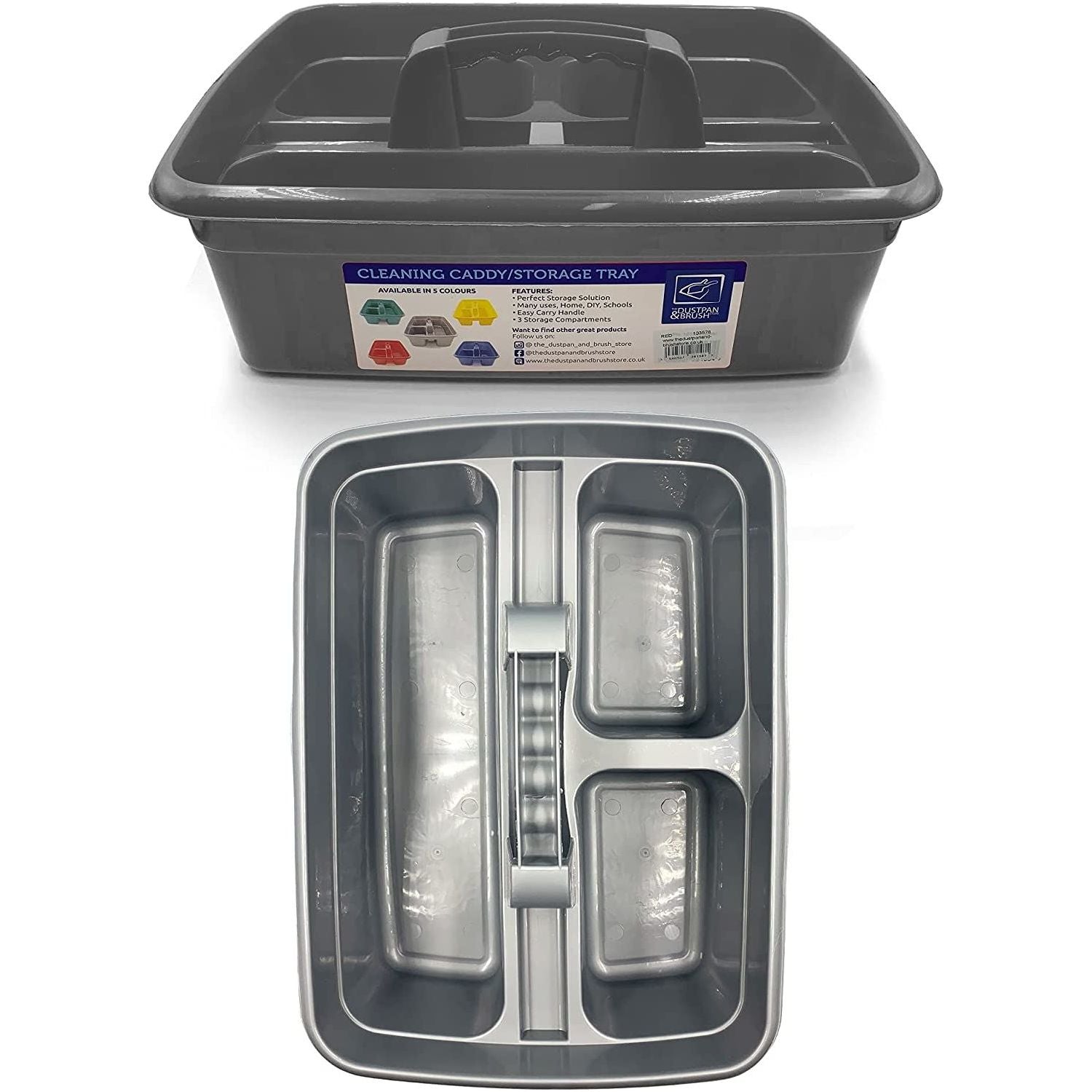 Silver/ Grey Plastic Caddy Cleaners Carry All Storage Tote Tray Basket for Bottles etc - 102218