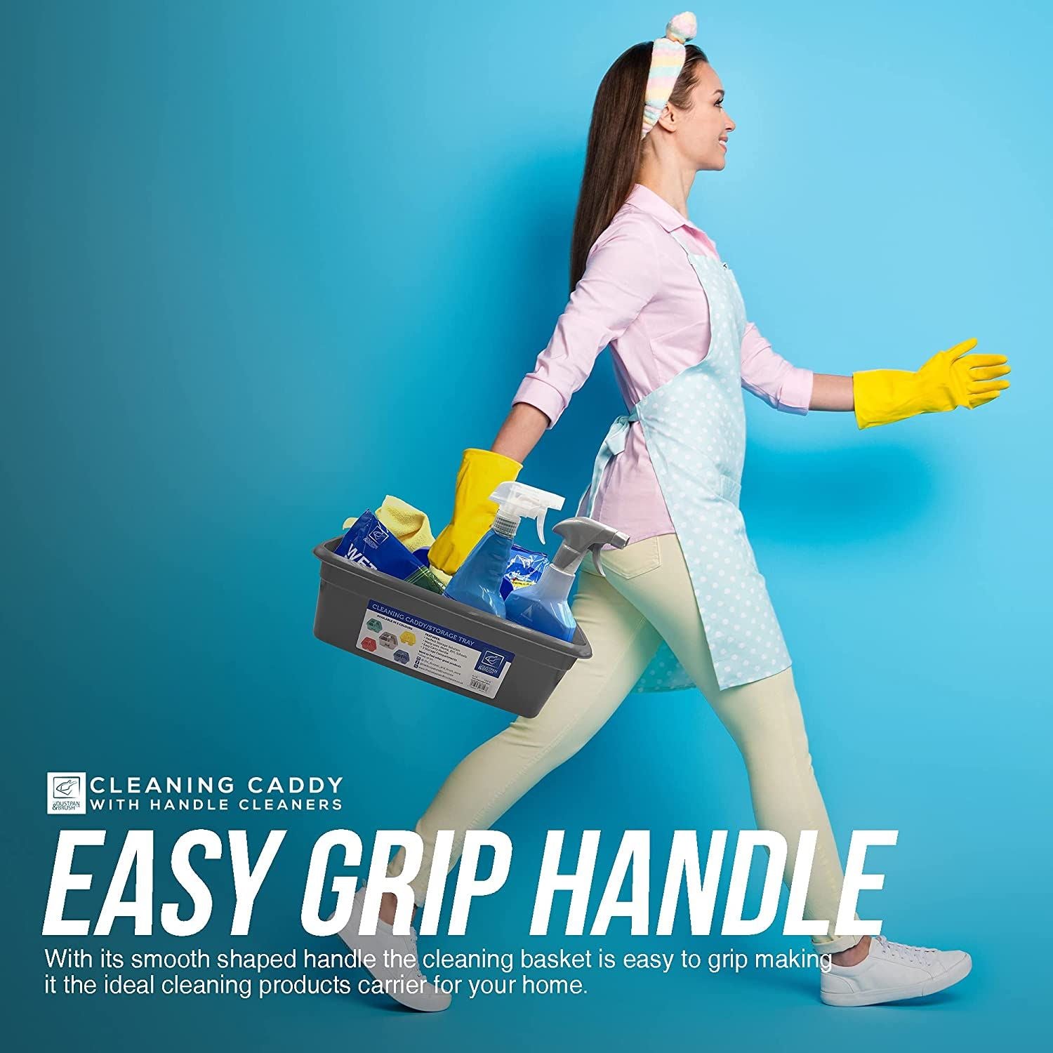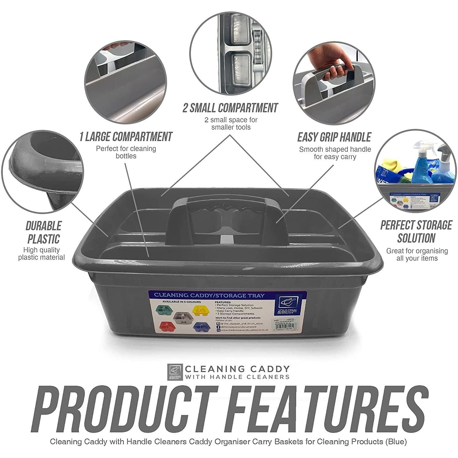Cleaners plastic caddy. Bottle and Cloth storage tray. Blue carry all tote tray with handle