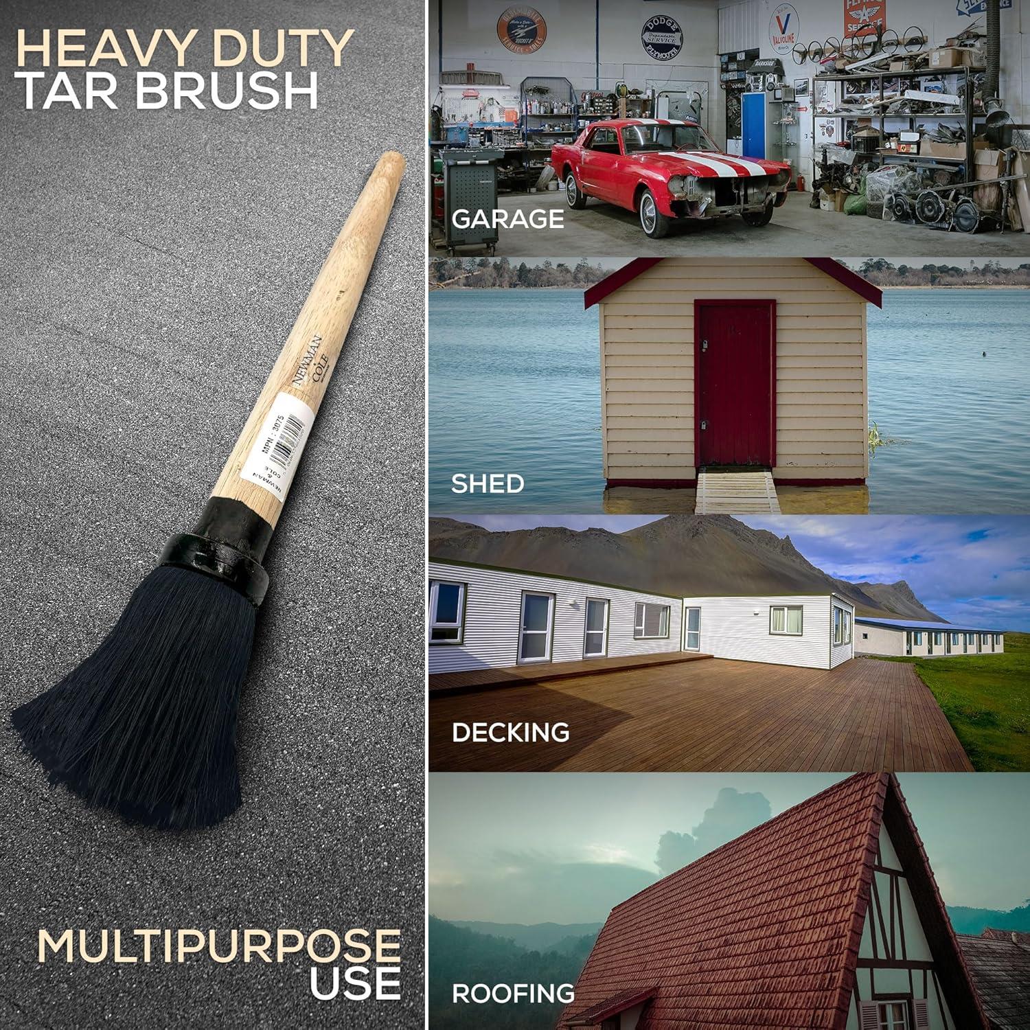 This sturdy tar brush is made for applying tough coatings on different surfaces like garages, sheds, decks, and roofs. It has soft but strong bristles for easy and smooth application. The durable ferrule helps it last longer, and the wooden handle offers a comfortable grip for longer use.