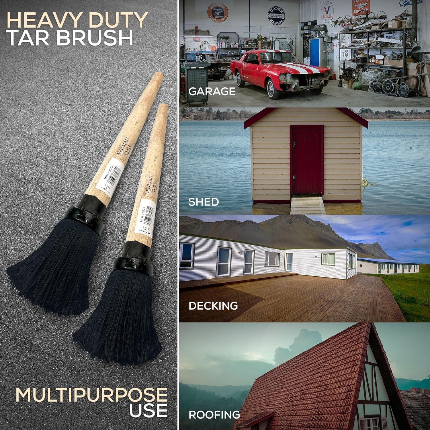Pack of 2 sturdy tar bruses, made for applying tough coatings on different surfaces like garages, sheds, decks, and roofs. It has soft but strong bristles for easy and smooth application. The durable ferrule helps it last longer, and the wooden handle offers a comfortable grip for longer use.