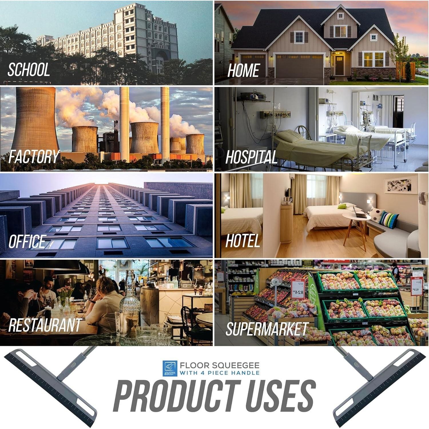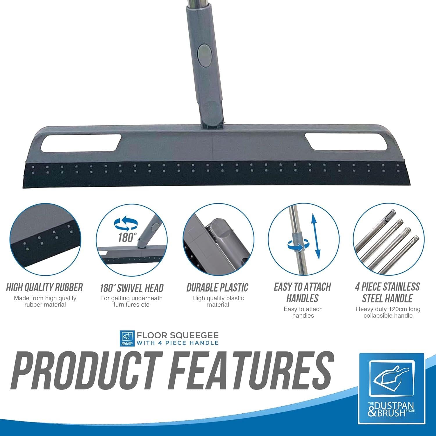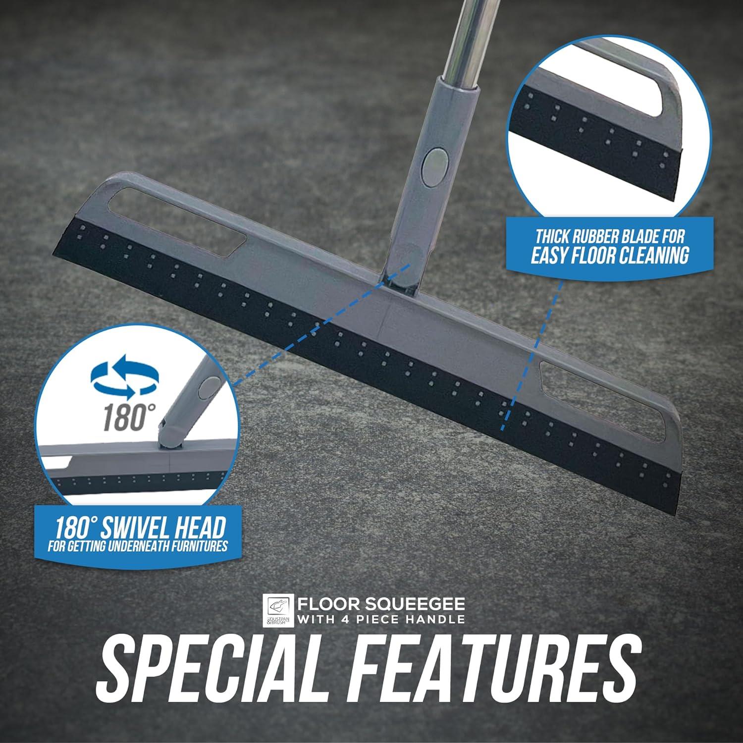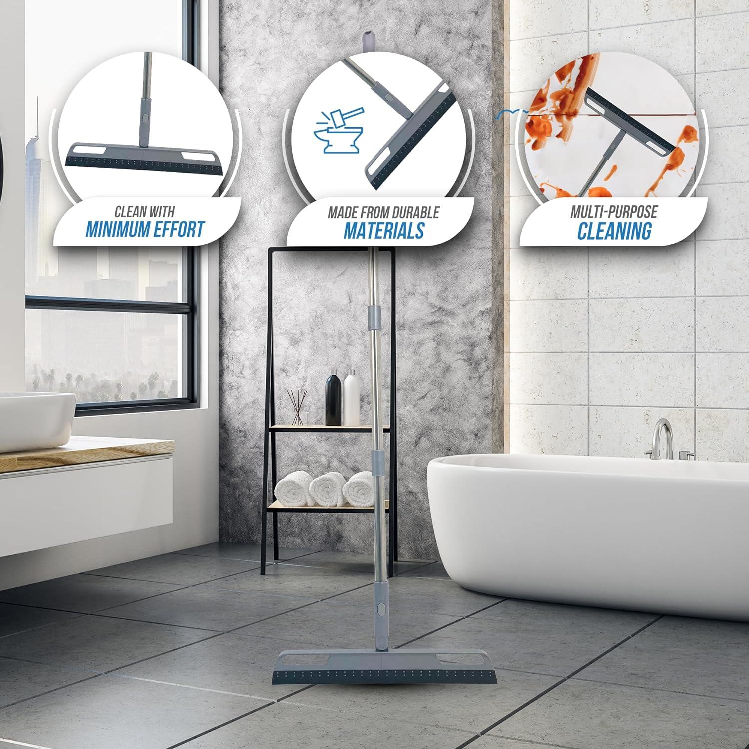 The head of squeegee can be rotated 180°, which makes it easy to clean under sofas and other tight spaces that can otherwise be difficult to reach. It is also made out of durable plastic with a high quality rubber.