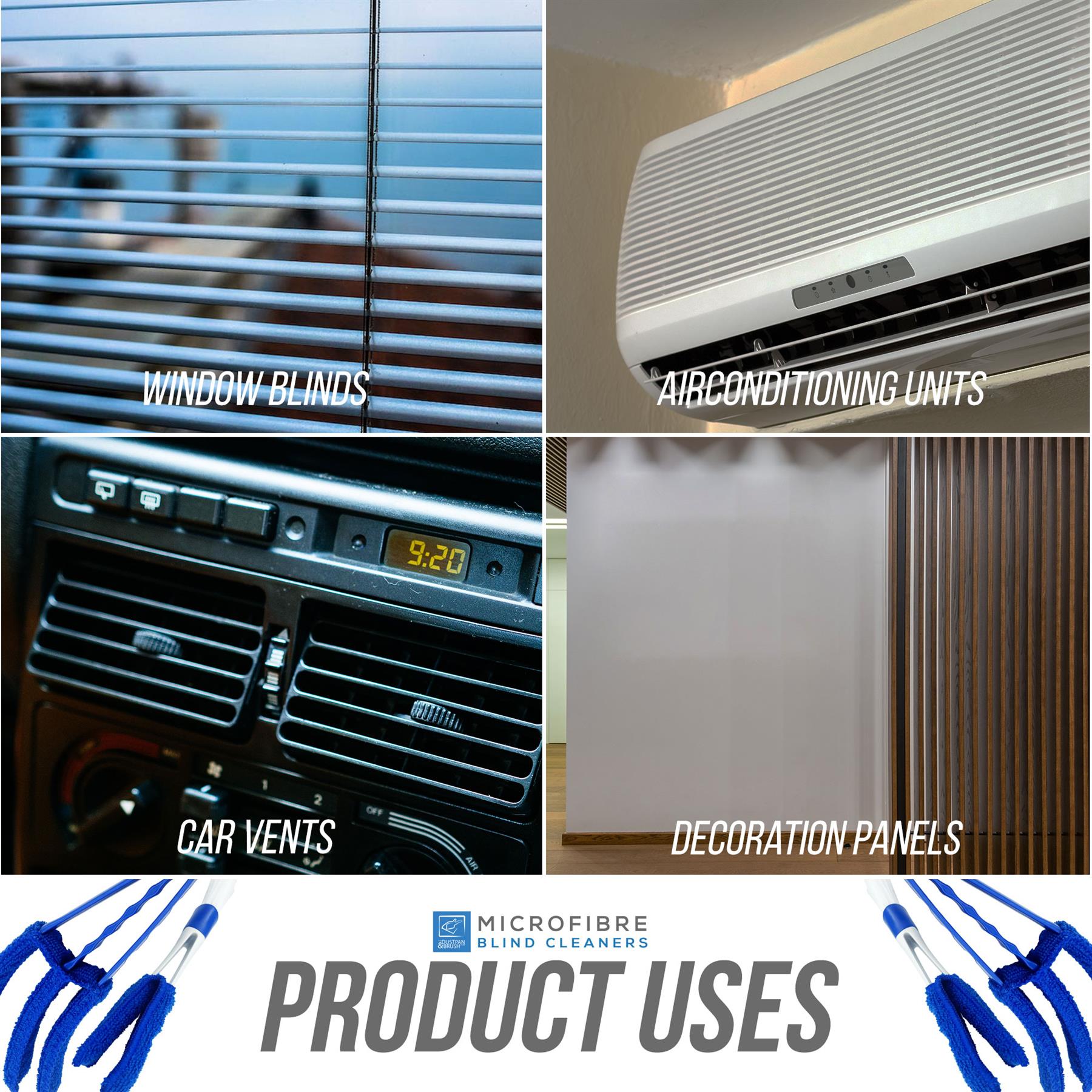 With the larger cleaner lifting dirt from two blind slats at a time and the smaller cleaner getting into those harder to reach cracks and corners, you'll end up with clean dust-free blinds.