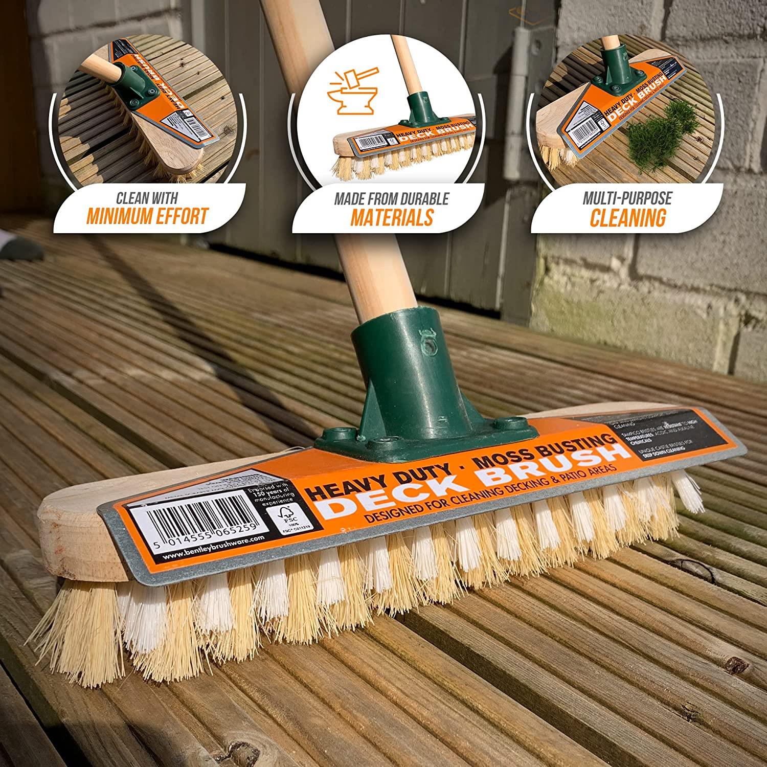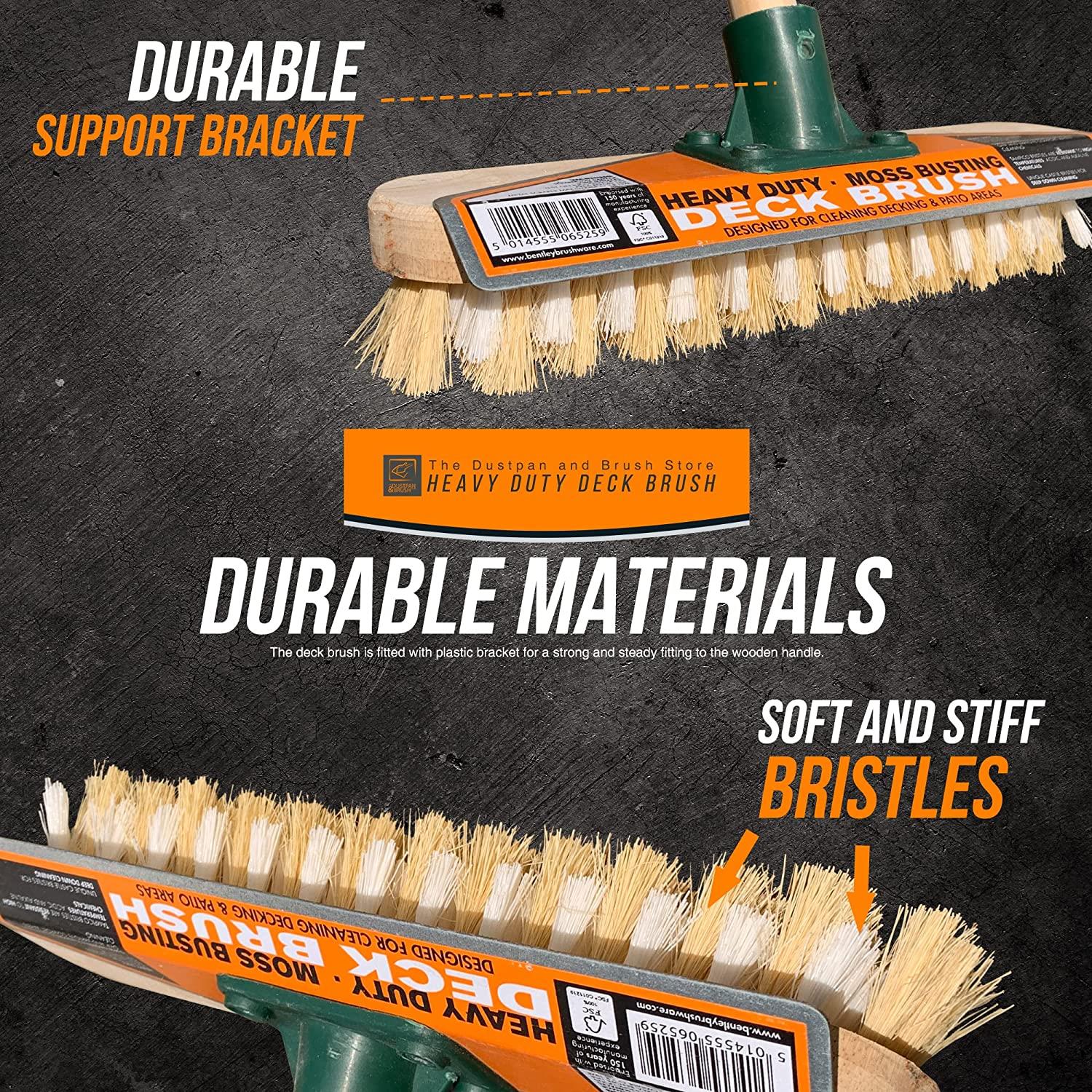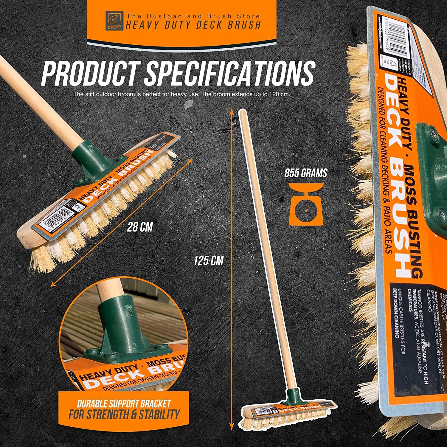- The 120cm (4ft) wooden broom handle is strong enough to support the tough cleaning requirement for a patio cleaner brush.