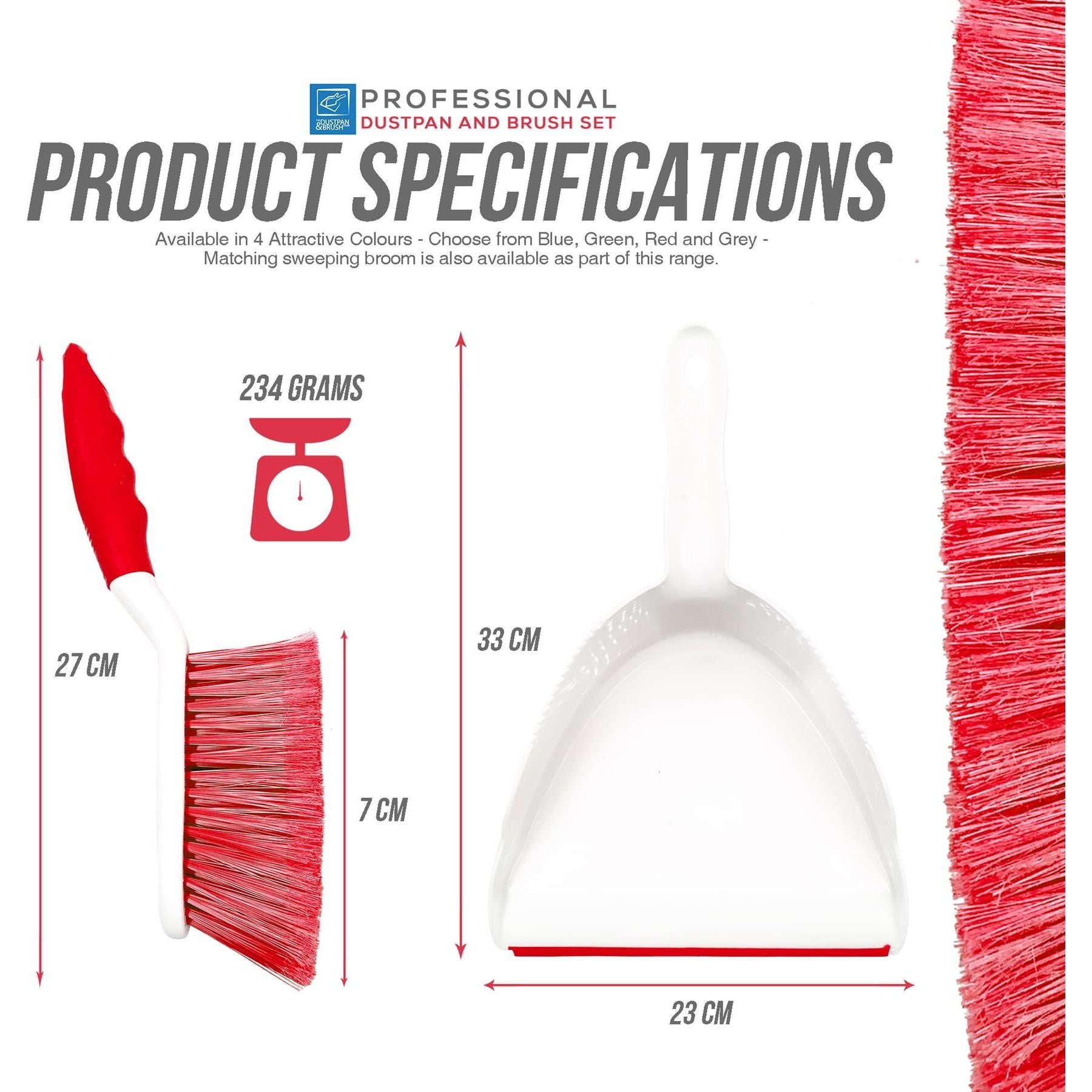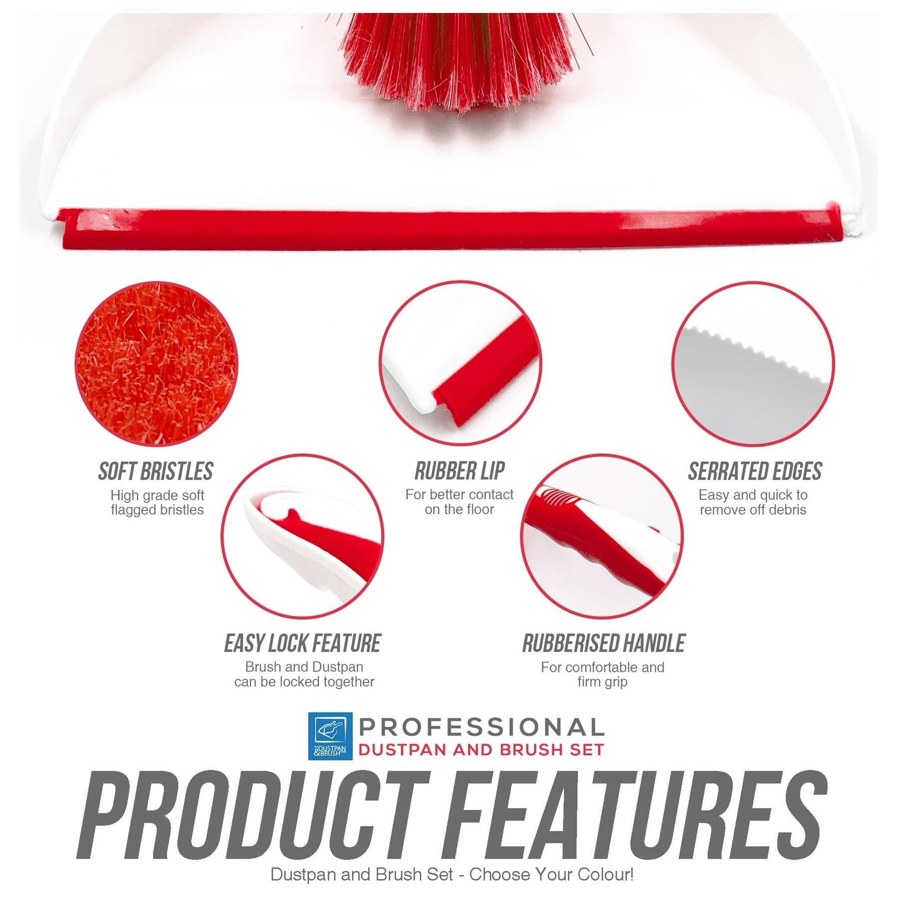 Stylish plastic coloured dustpan & brush set.