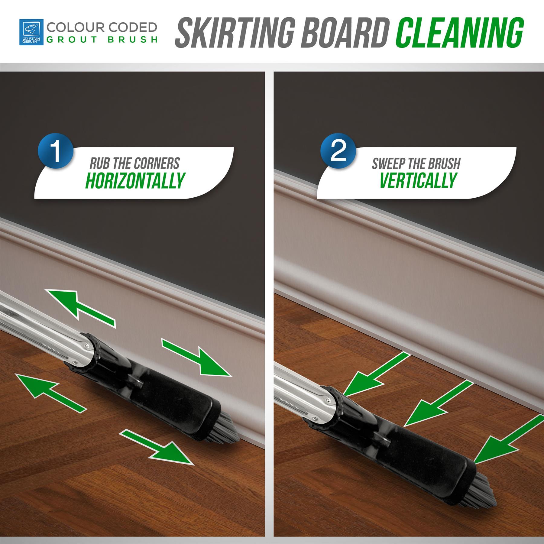 The scrubbing brush is also good for cleaning along skirting board and scrubbing tiles.