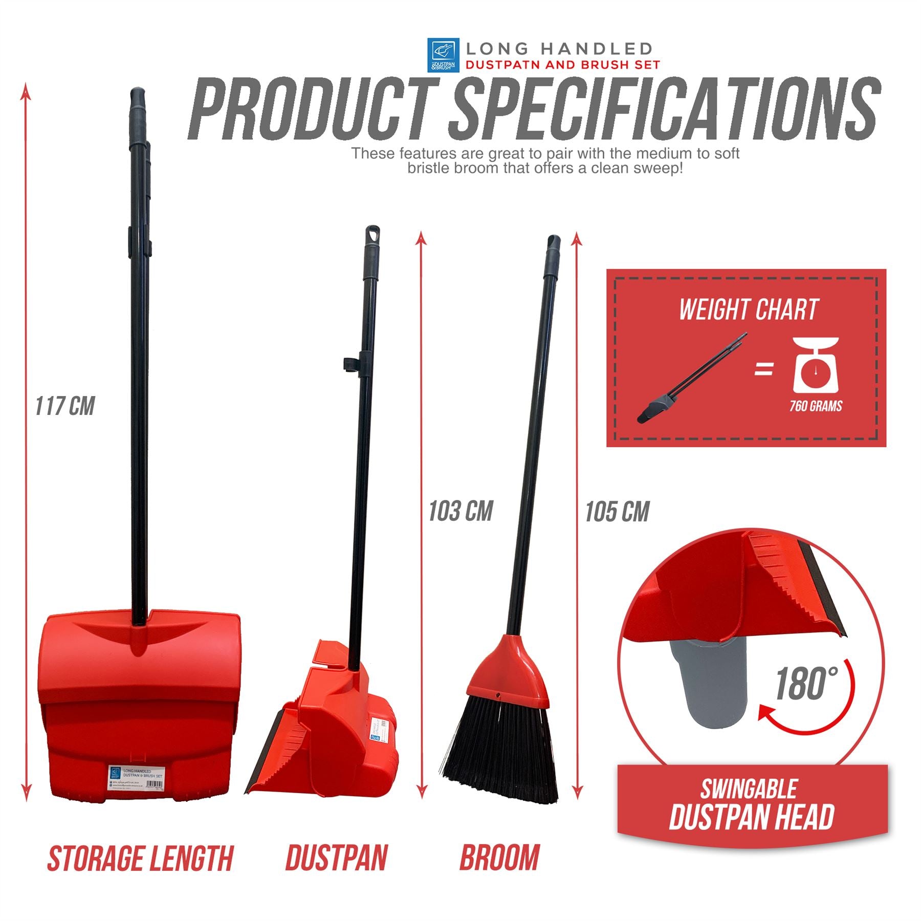 This Long Handled Dustpan and Brush Set is ideal to quickly and easily clean up spills and mess around the home.