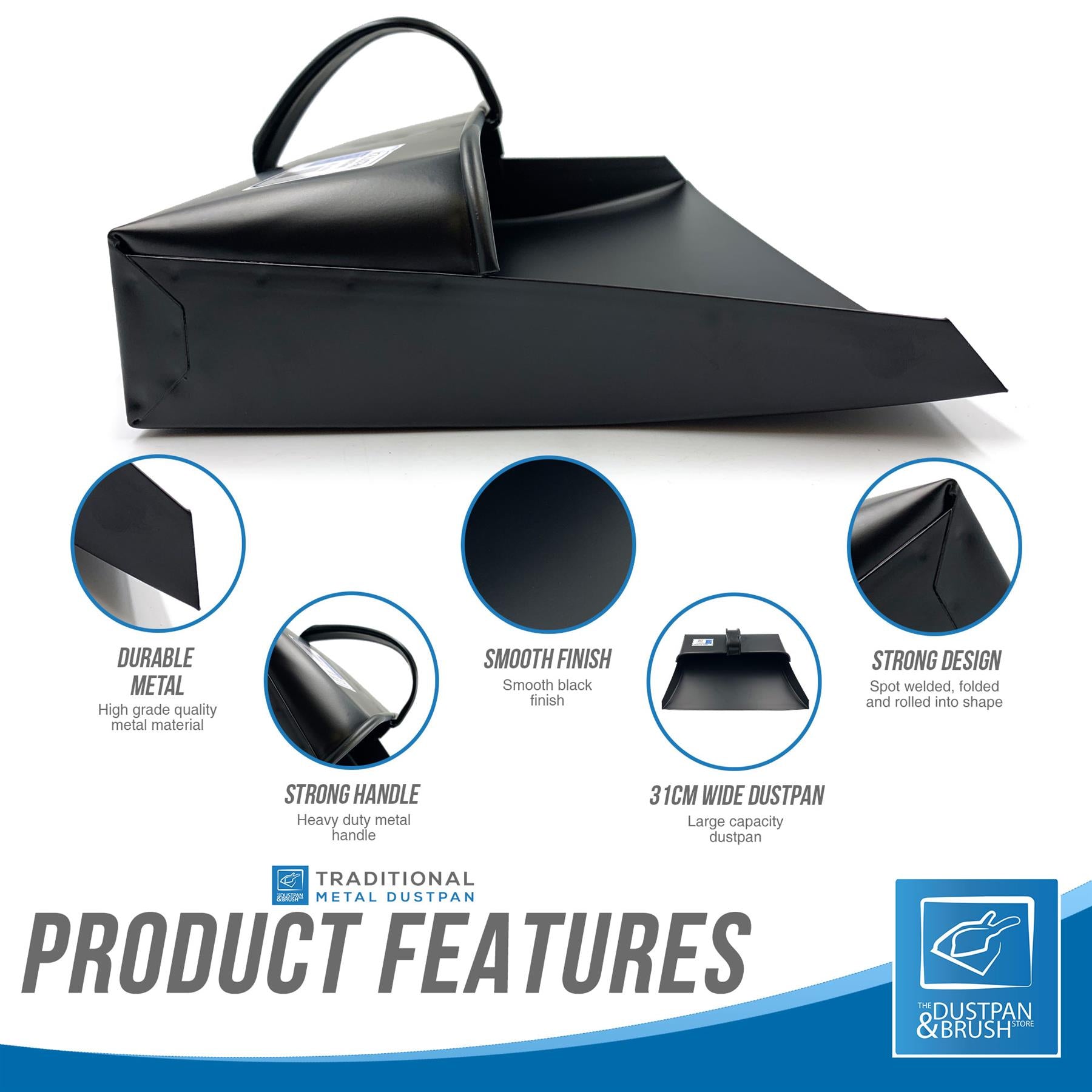 This Traditional Black Metal Dustpan is ideal for cleaning in and around the home.