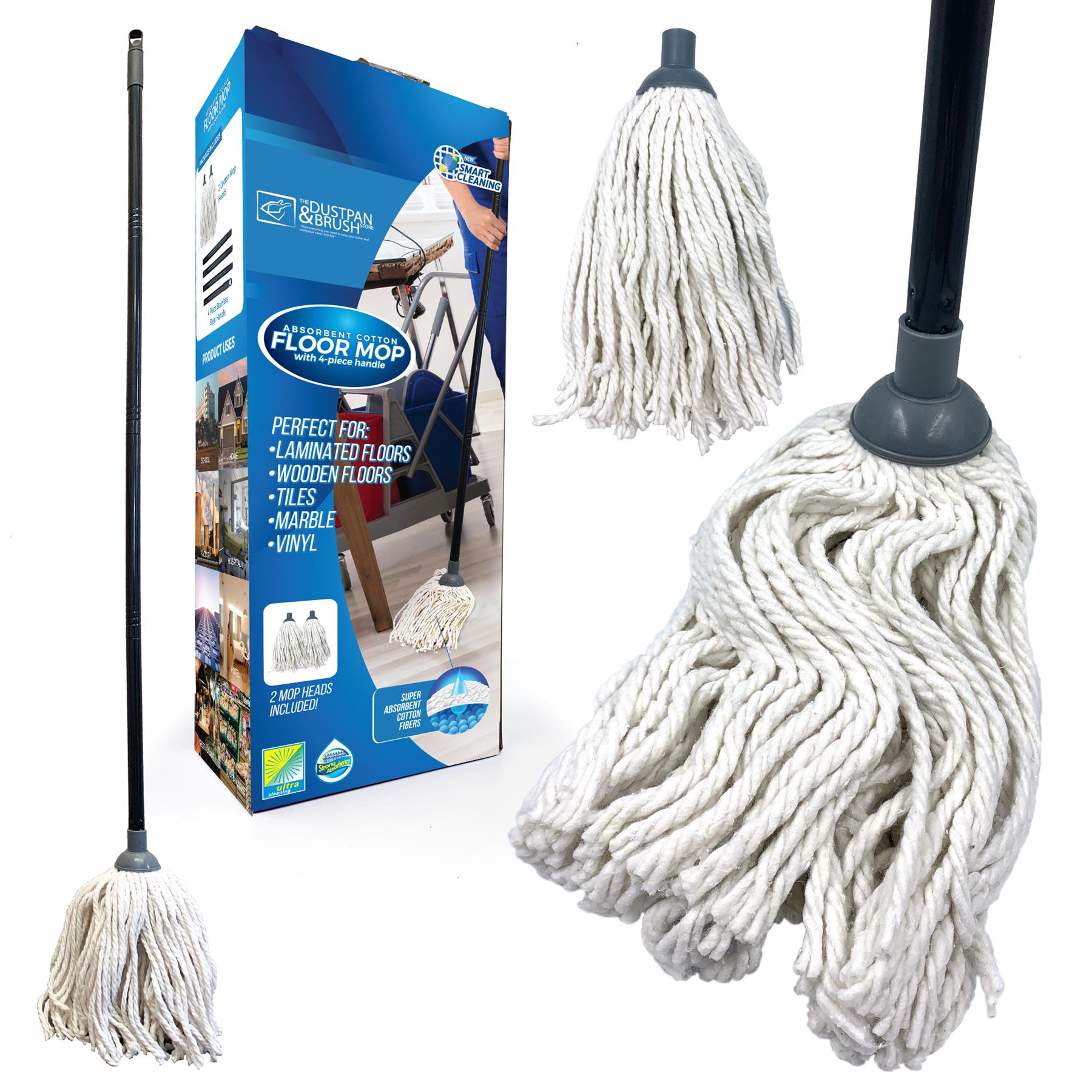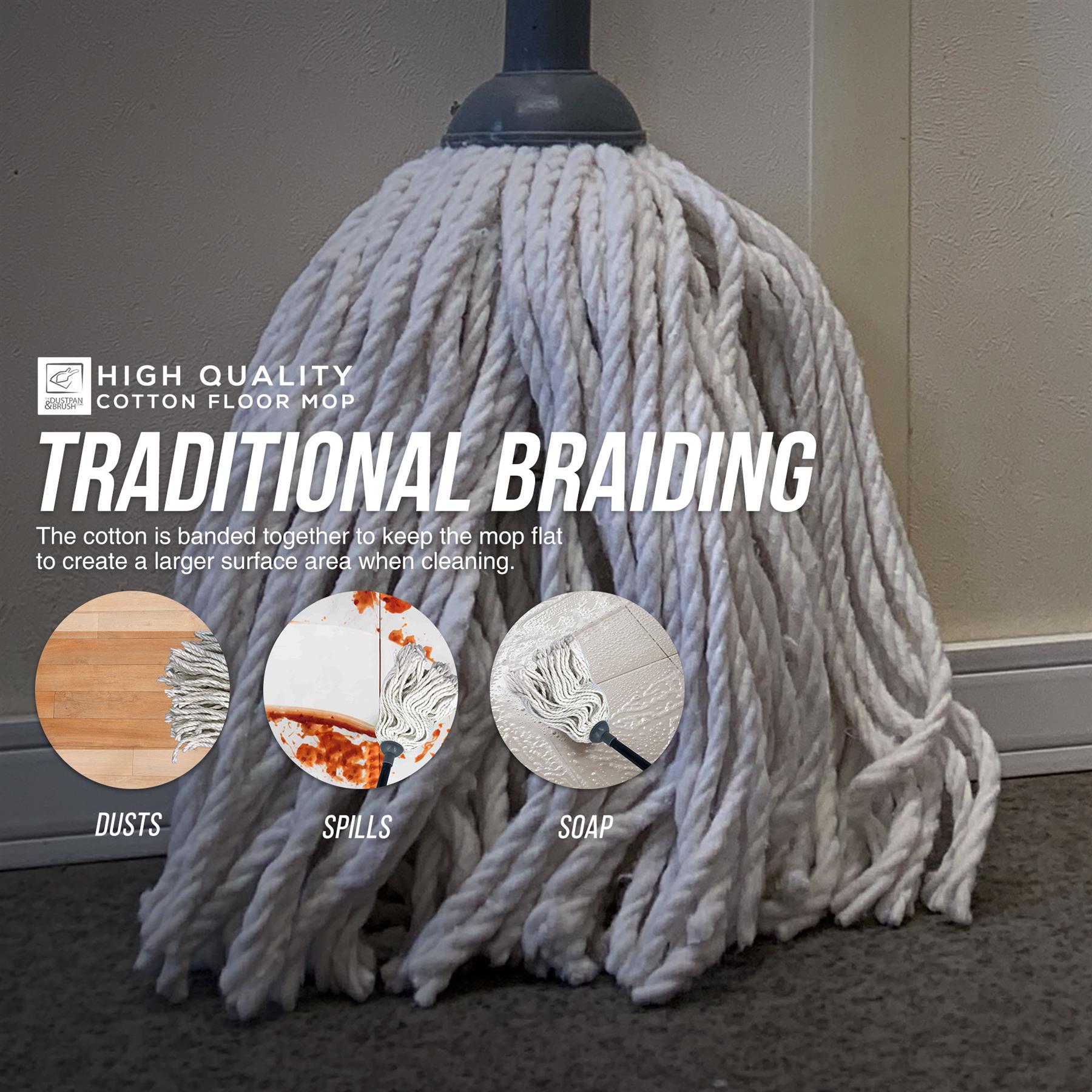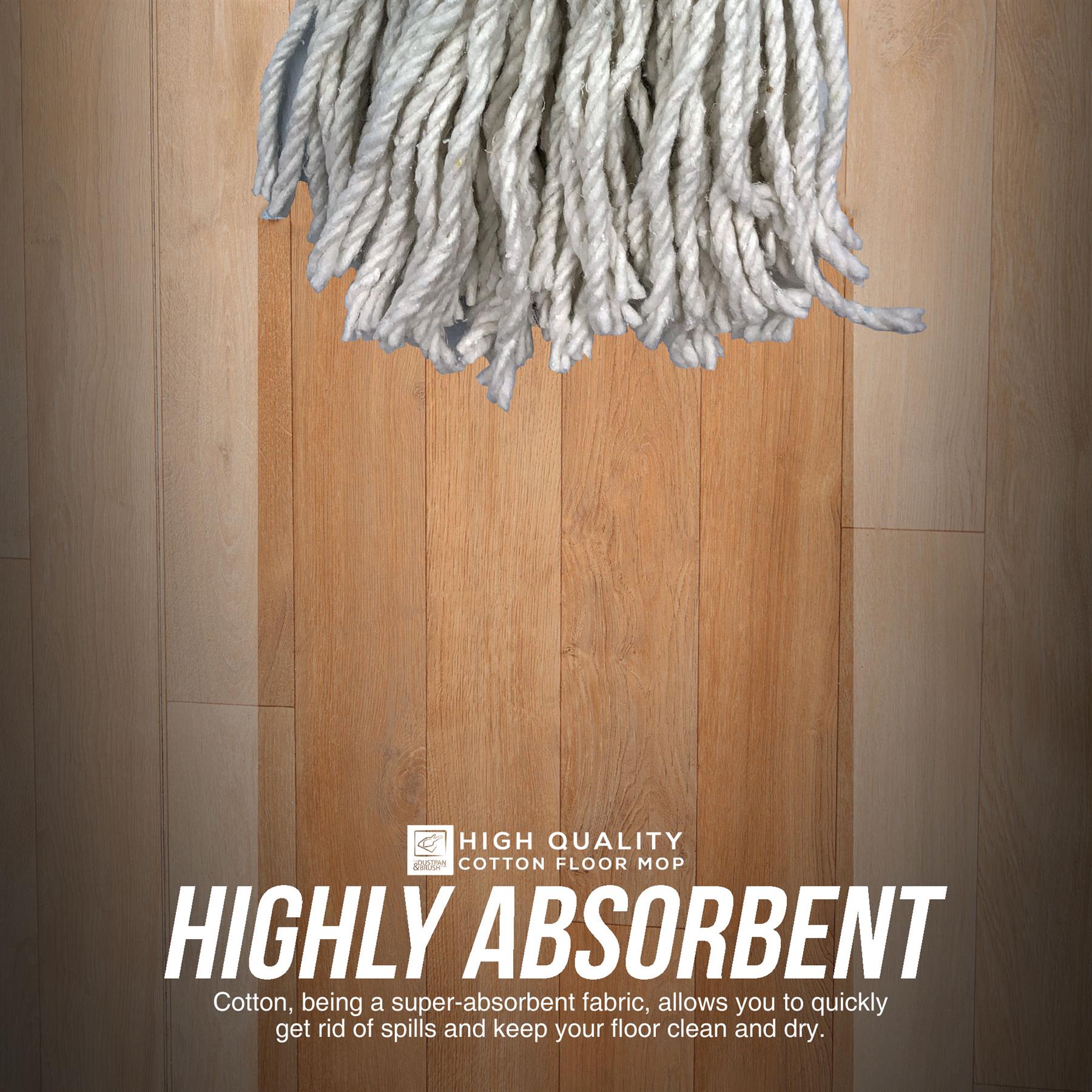 When it comes to cleaning and making your floors shine, our cotton mops do just the job! Cotton mop heads are a great option because of their absorbent properties and excellent scrubbing power, and can do quick work of any spills. Our mop comes with a long, lightweight, metal handle, eliminating the need for you to bend down when cleaning floors. This does not only make it convenient for anyone using it, but more importantly, for those with back problems.