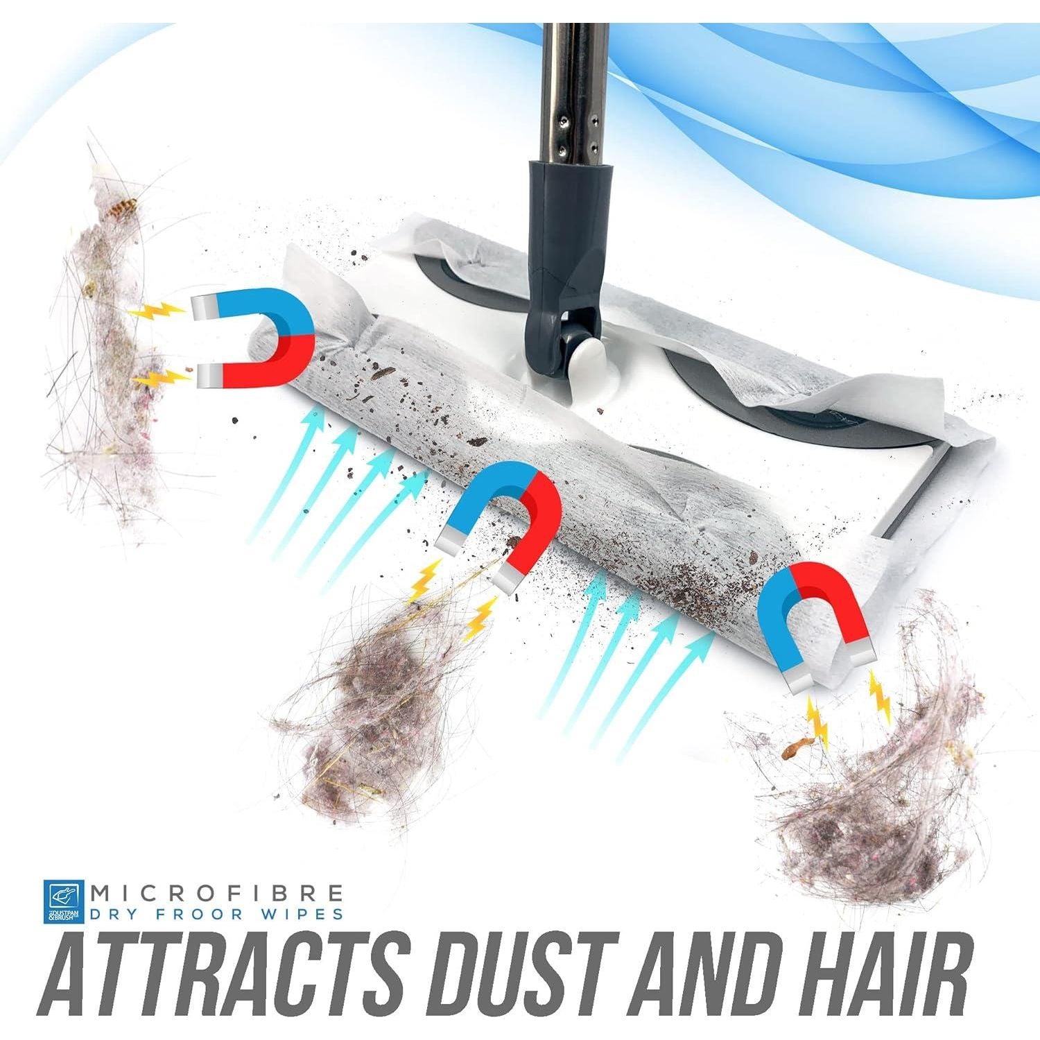Each cloth is 21cm x 30cm and can be used with most mops, such as Swiffer.