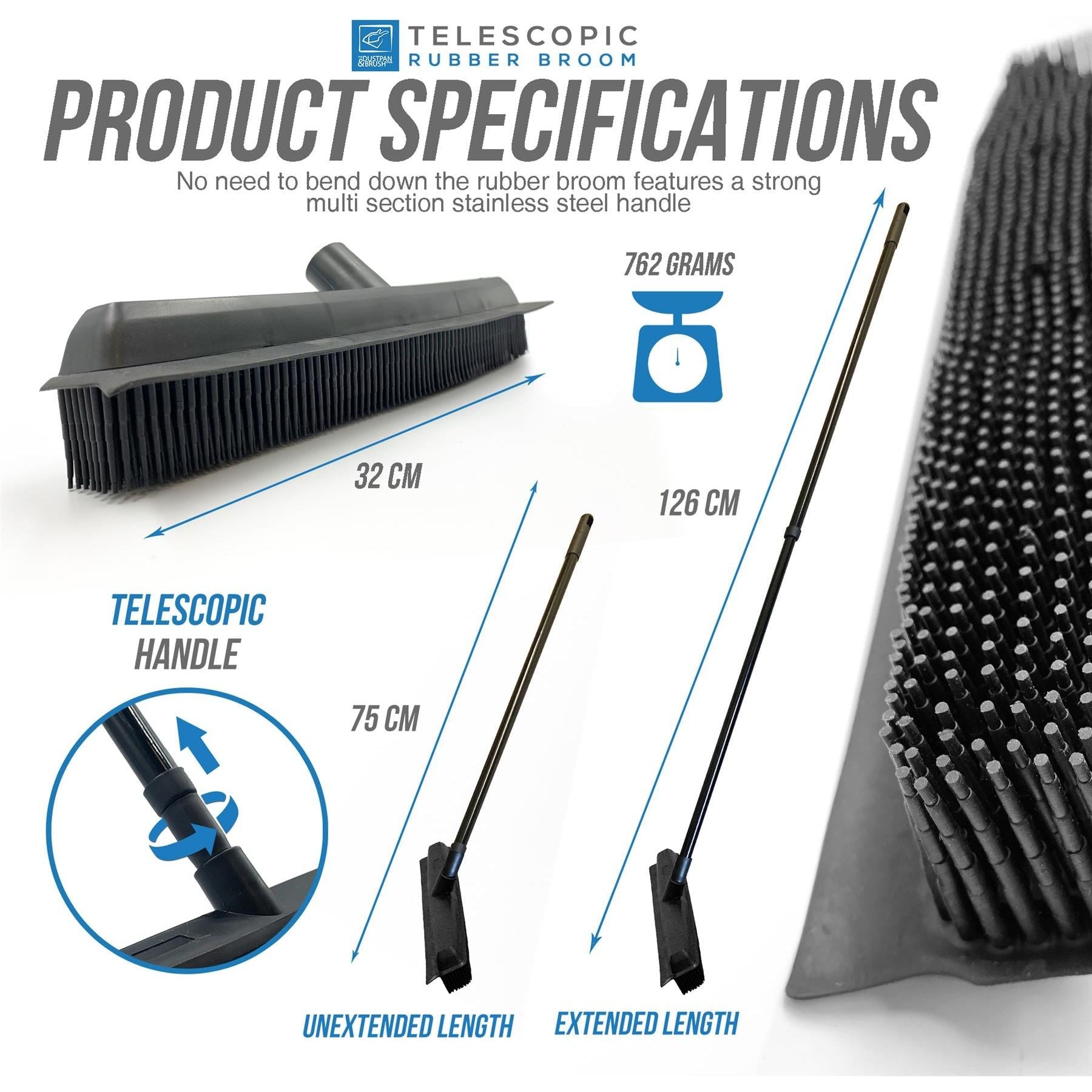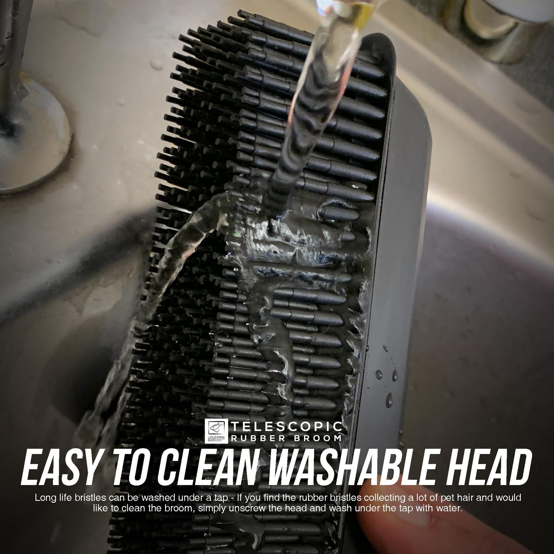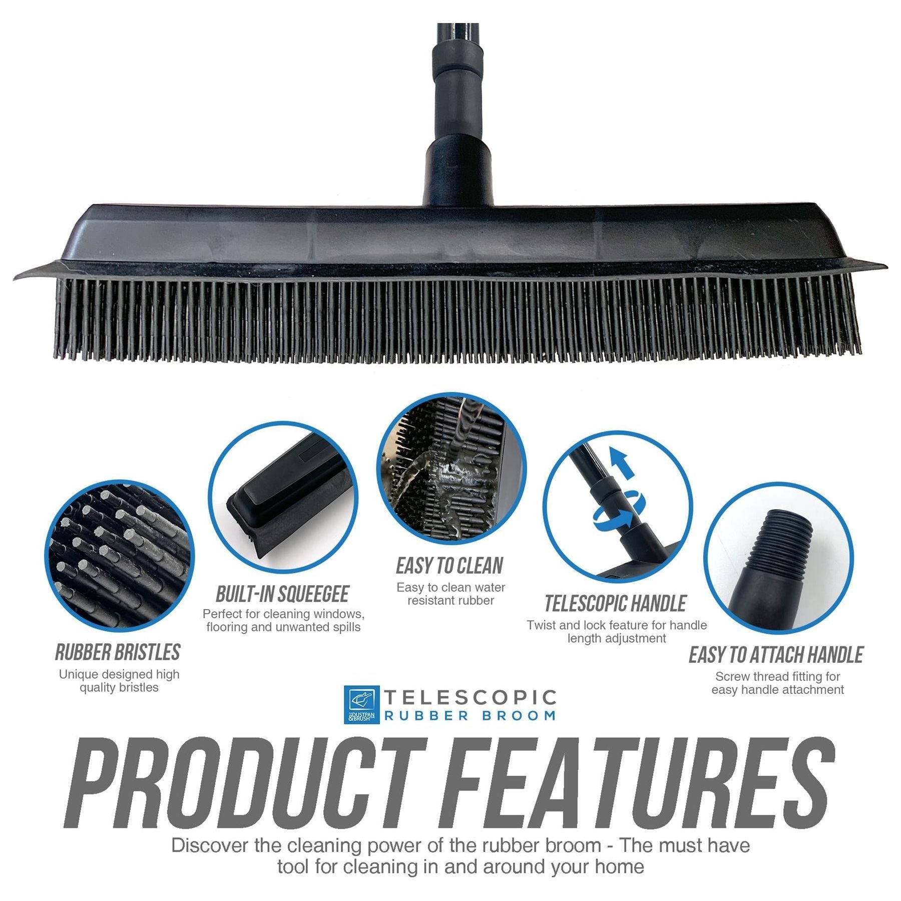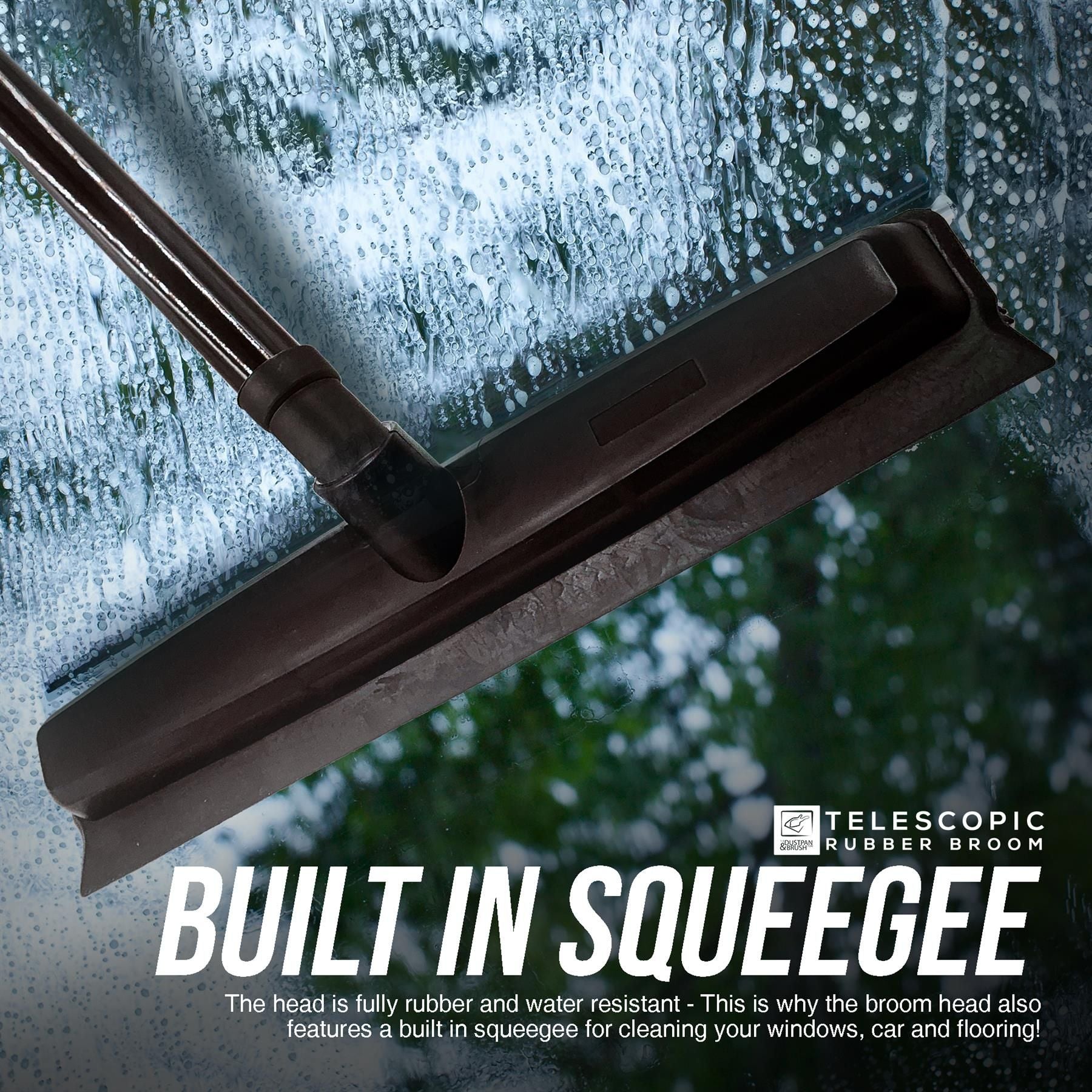 The rubber broom also features an inbuilt squeegee which can be used on floors or for cleaning windows.